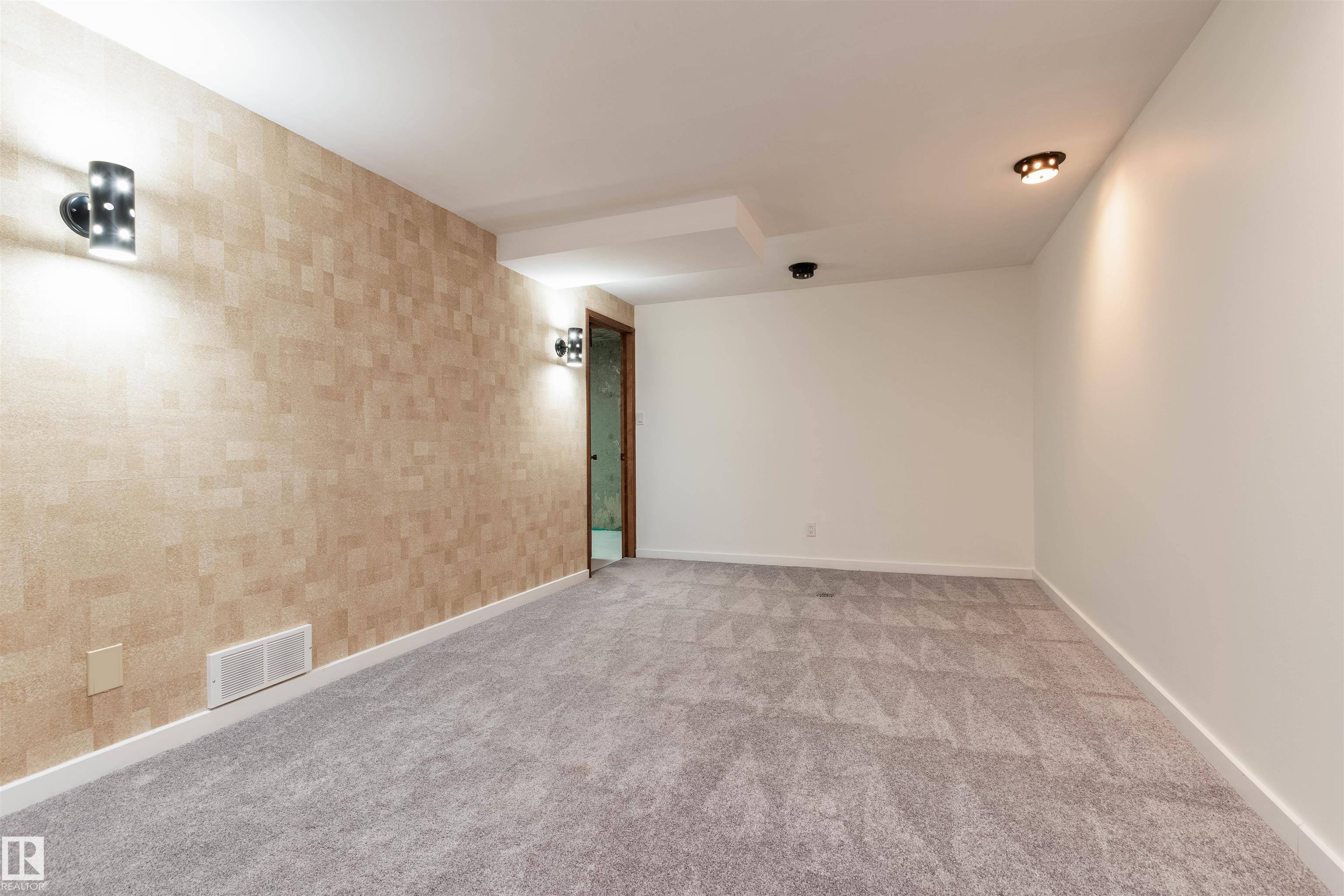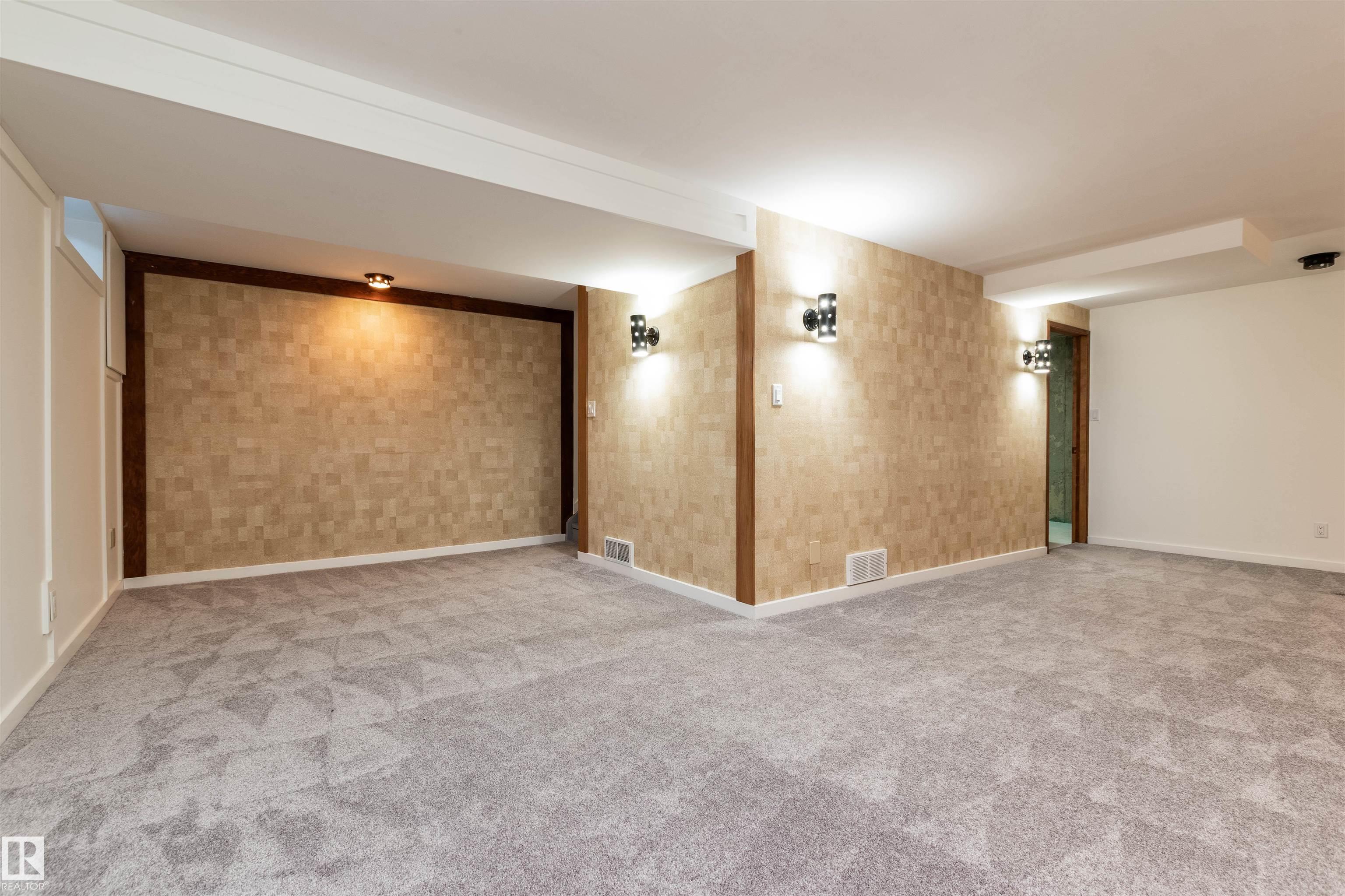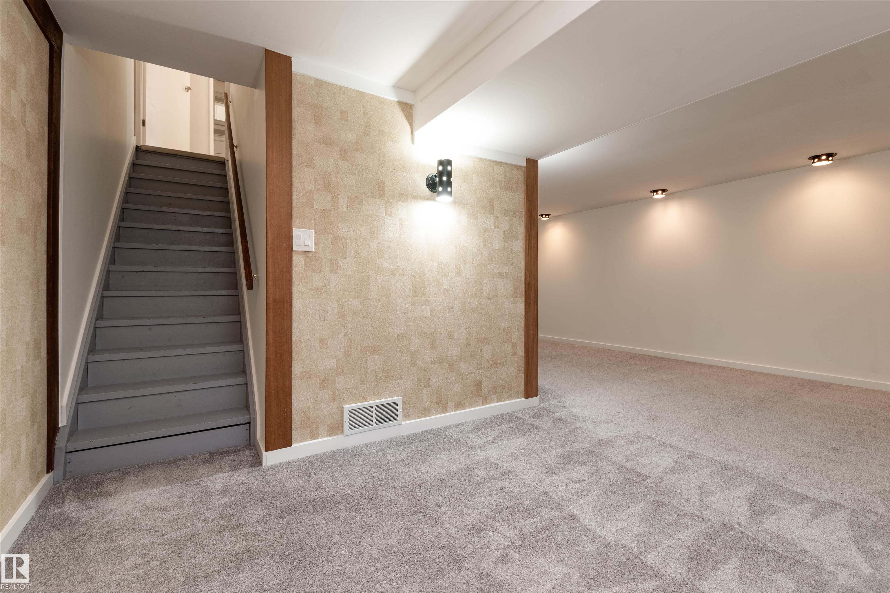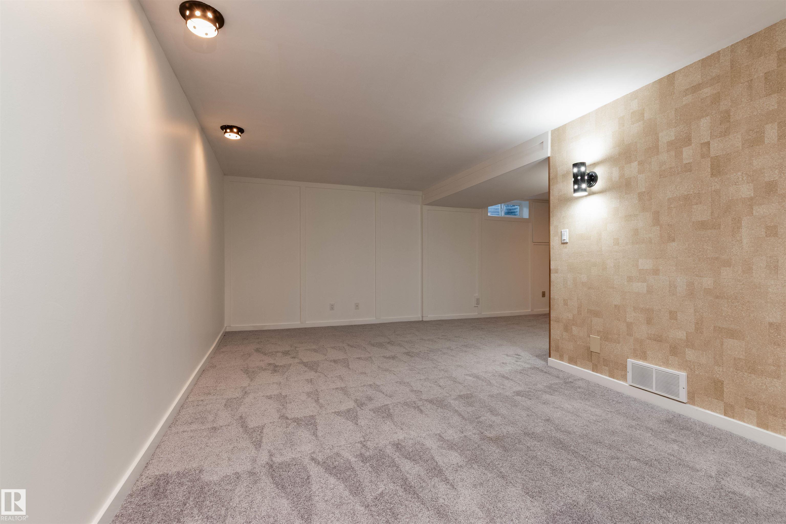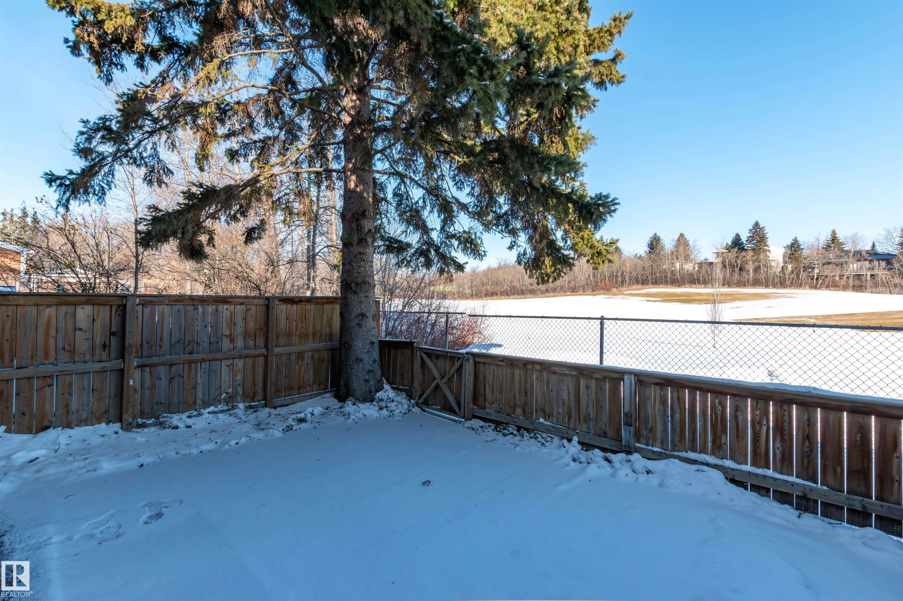 BACKING GOLF COURSE! Welcome to this beautiful 2 storey townhouse in Broadmoor Estates. Being in the heart of Sherwood Park, this home is across the street from Broadmoor Lake, and within walking distance to Festival Place, Sherwood Park Mall, Rec Centre, golf, tennis, the library, and more. This 1995 sq ft home has a lovely kitchen, open dining room to a spacious living area that over looks manicured golf course greens. Newer laminate flooring and freshly painted throughout. 2 piece bath is on the main floor, Upstairs is a large primary bedroom and will fit oversized furniture, 2 other bedrooms and renovated four piece bath. The basement is fully finished with large family room area, laundry with new washer, and ample storage. New 40 gallon hot water tank 2024.