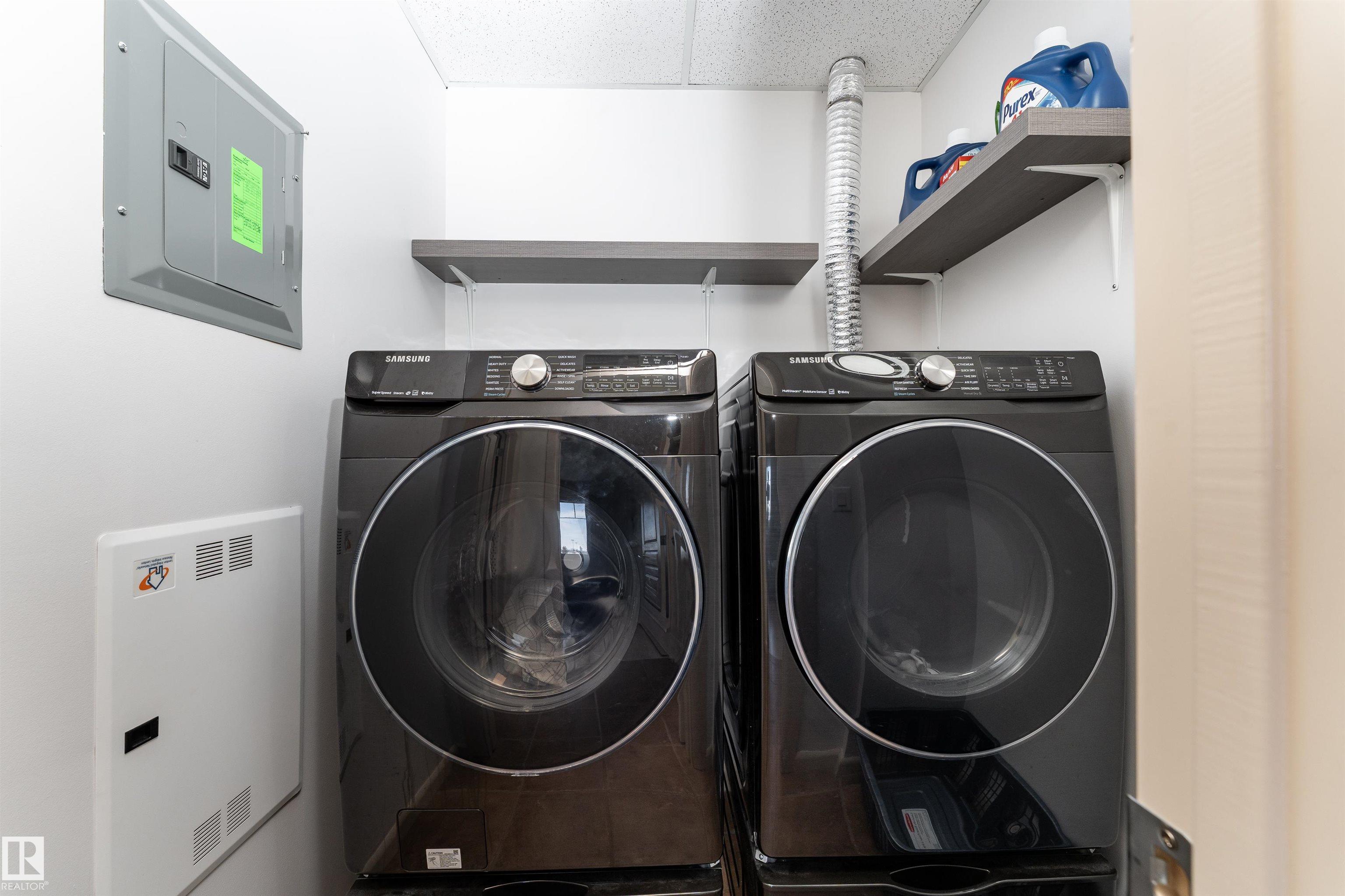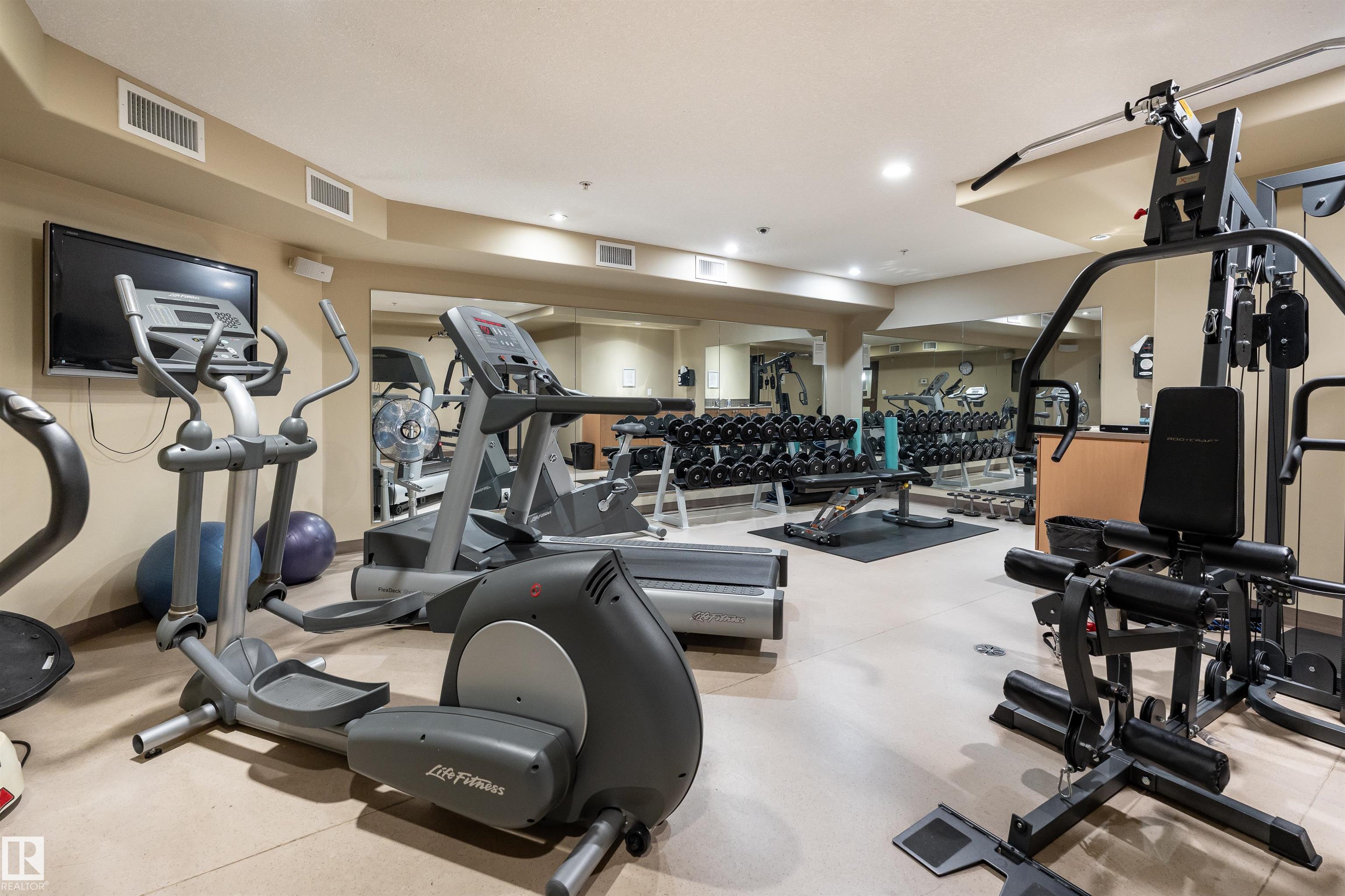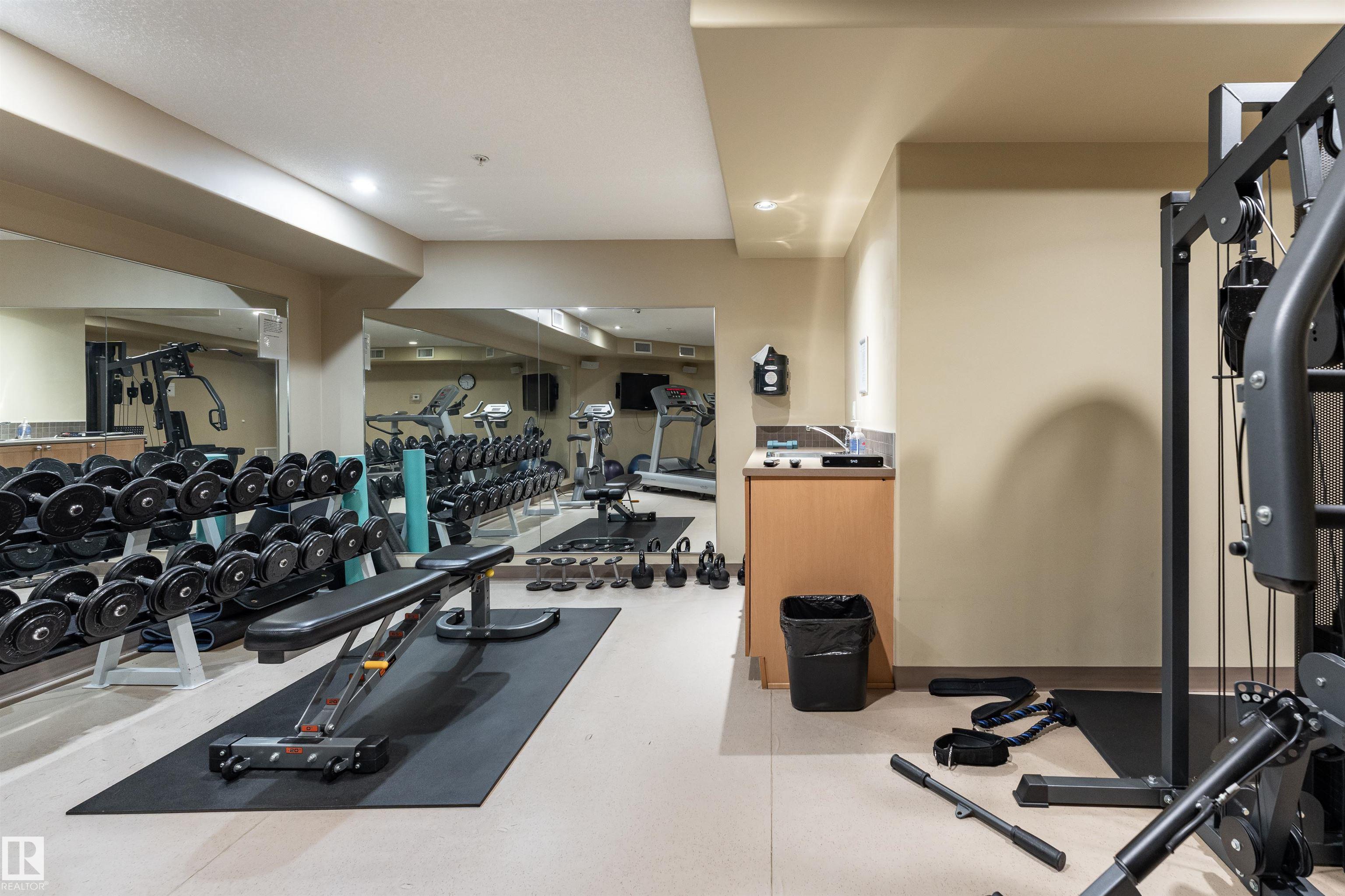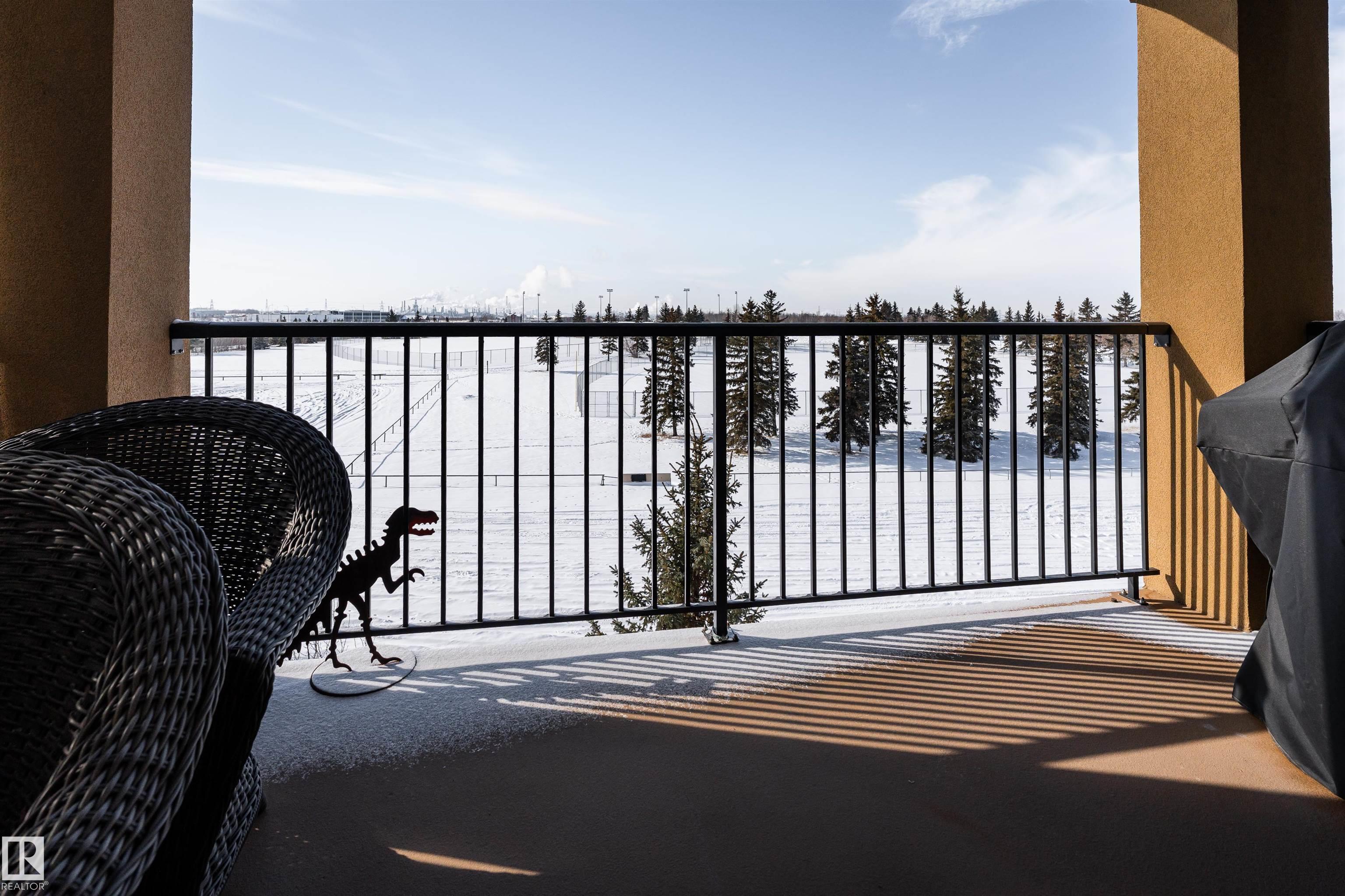 TOP FLOOR UNIT OVERLOOKING THE BALL FIELDS & CENTENNIAL PARK! This beautiful 2-bedroom + den condo offers the perfect blend of comfort, style, and location. The open-concept kitchen features granite countertops, newer stainless steel appliances, and ample cabinetry--ideal for both everyday living and entertaining. The bright living room is anchored by a cozy corner gas fireplace and large patio doors that lead to your covered balcony, where you can relax and enjoy unbeatable park views. The spacious primary bedroom includes a walk-through closet and a private 3-piece ensuite. A generous second bedroom, full 4-piece bathroom, and in-suite laundry room complete this well-designed layout. Located in a desirable concrete building, residents enjoy premium amenities including a fully equipped gym, theatre room, car wash, guest suites, and a social lounge featuring a pool table, dart board, tea area, and sauna. This unit also includes one underground titled parking stall and a storage locker. Exceptional value!