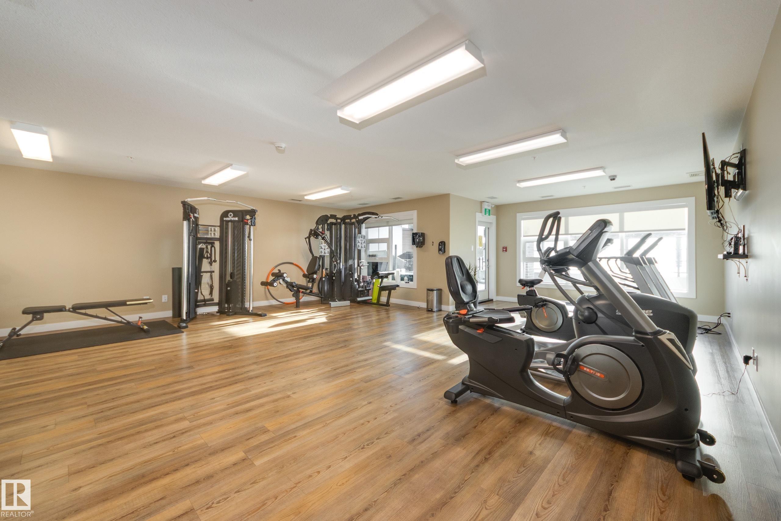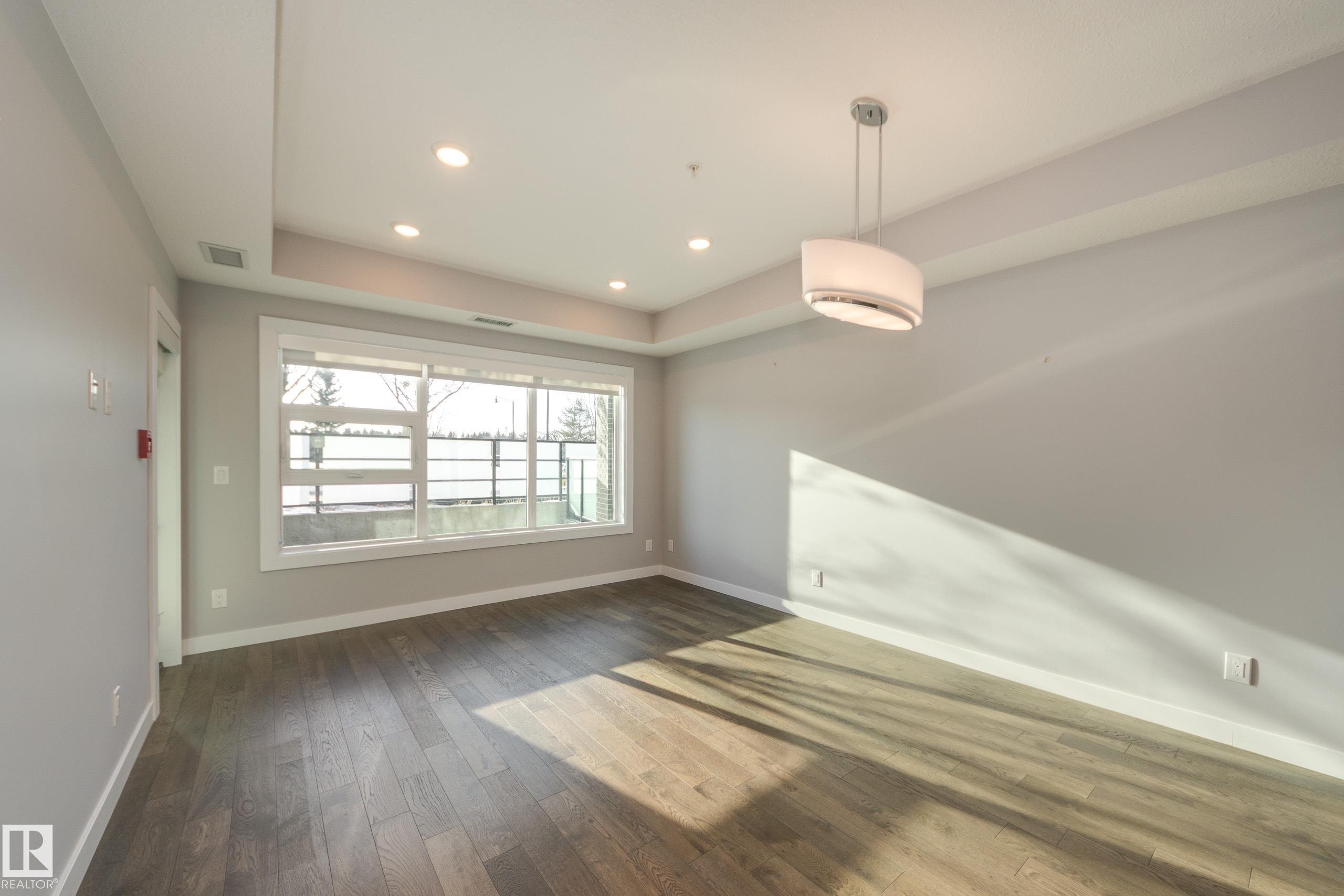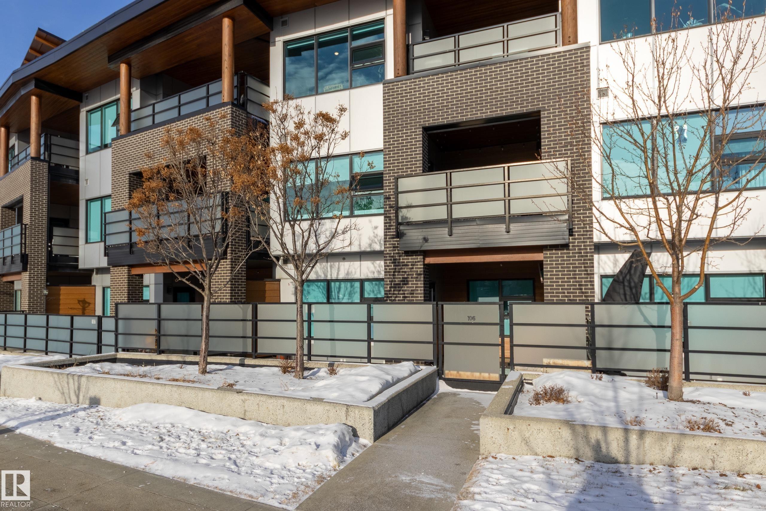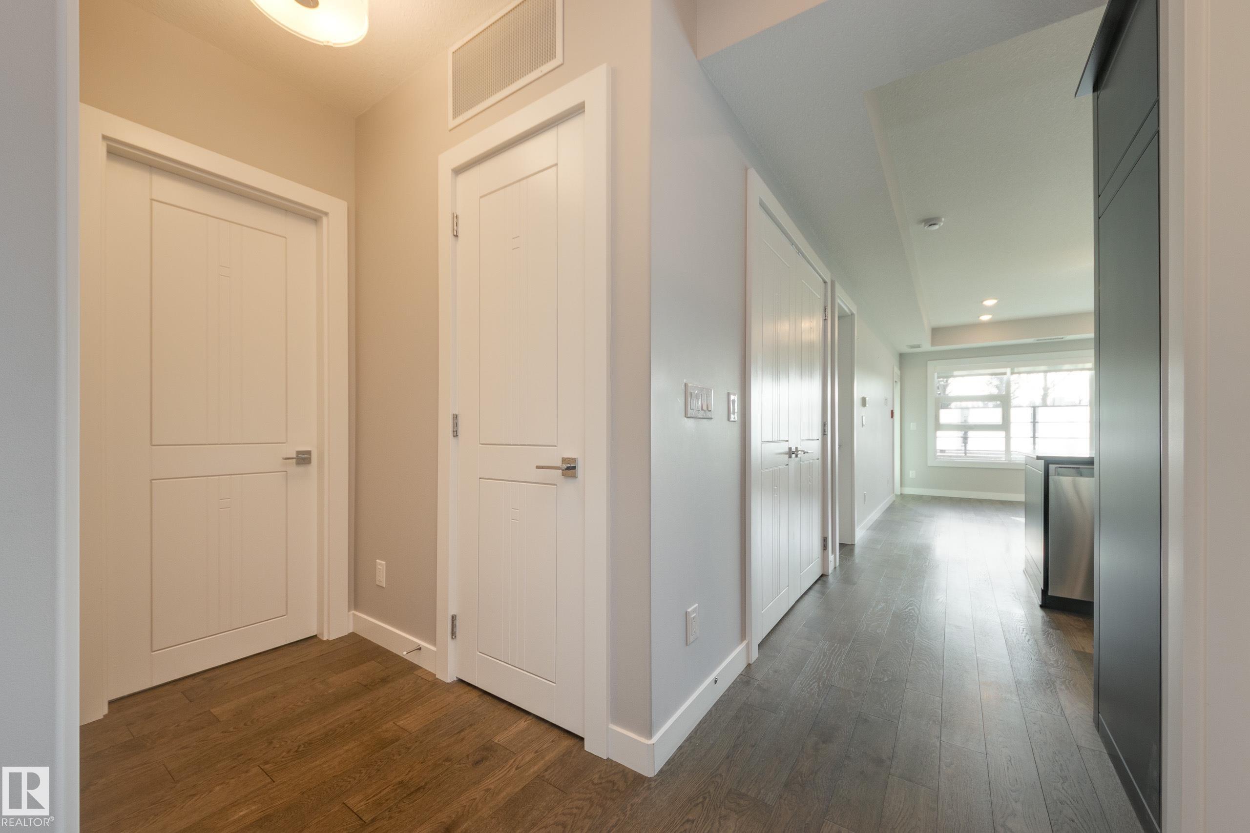 Savona sets a new standard for refined urban living in Sherwood Park. This 1 bed. + den, 1 bath. blends upscale finishes with thoughtful design, offering bright open concept living under soaring 9 ft ceilings and engineered hardwood. Expansive windows invite natural light throughout, while the gourmet kitchen showcases quartz surfaces, modern cabinetry, and premium stainless appliances. The spacious living area extends to a private patio with natural gas hook up & privacy glass, perfect for morning coffee or evening dining. The primary features a walk through closet to a spacious 4 piece bath with soaker tub, storage and dark cabinetry adorned with quartz. The den is convenient for those who work from home and offers more space for storage. Additional comforts include in suite laundry, heated undgrd. parking with car wash and secure storage. Steps from Festival Place, Broadmoor Lake, boutique shops, restaurants, grocery, theatres and walking paths. Amenities include social room, gym and roof top patio.