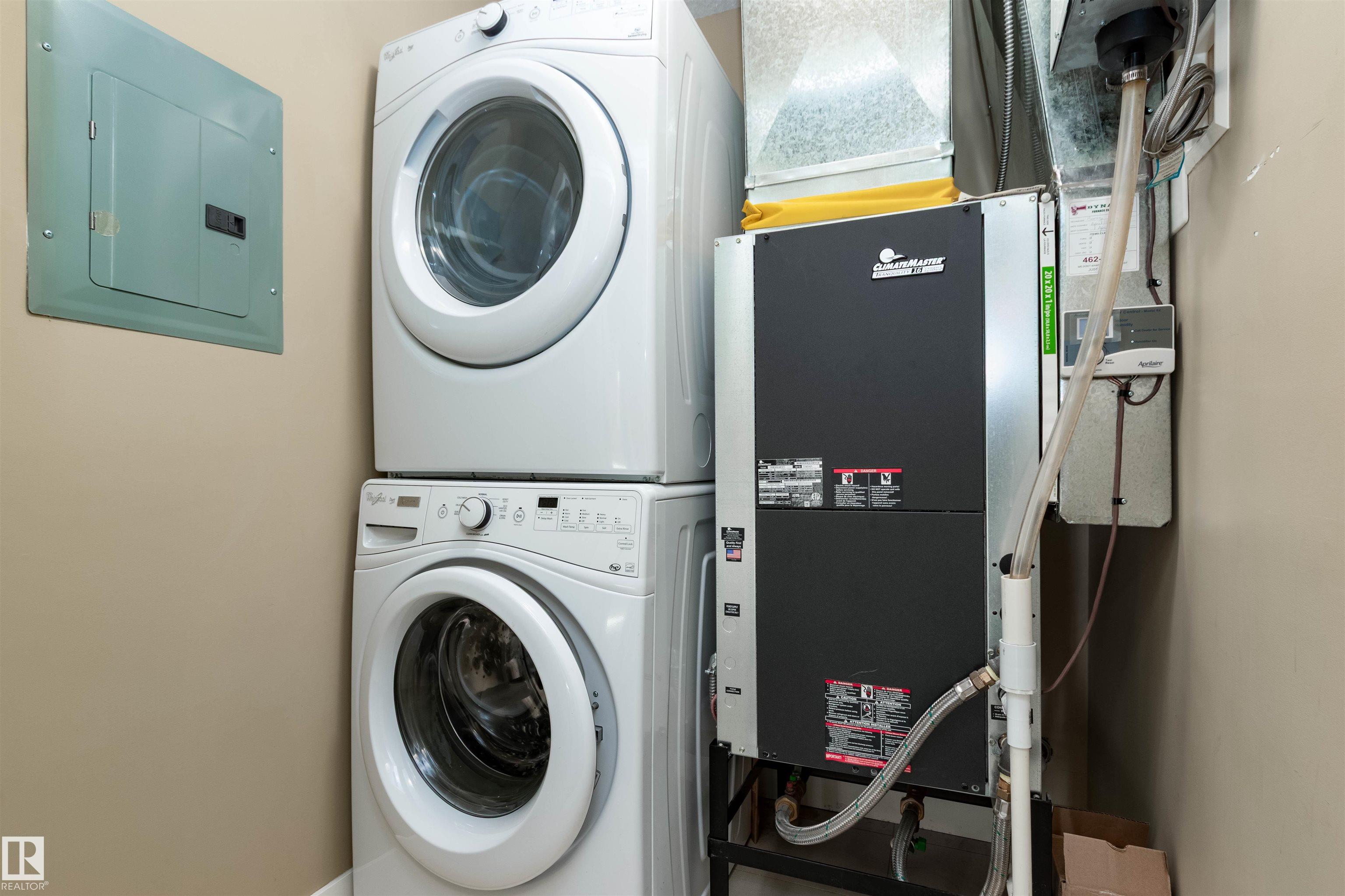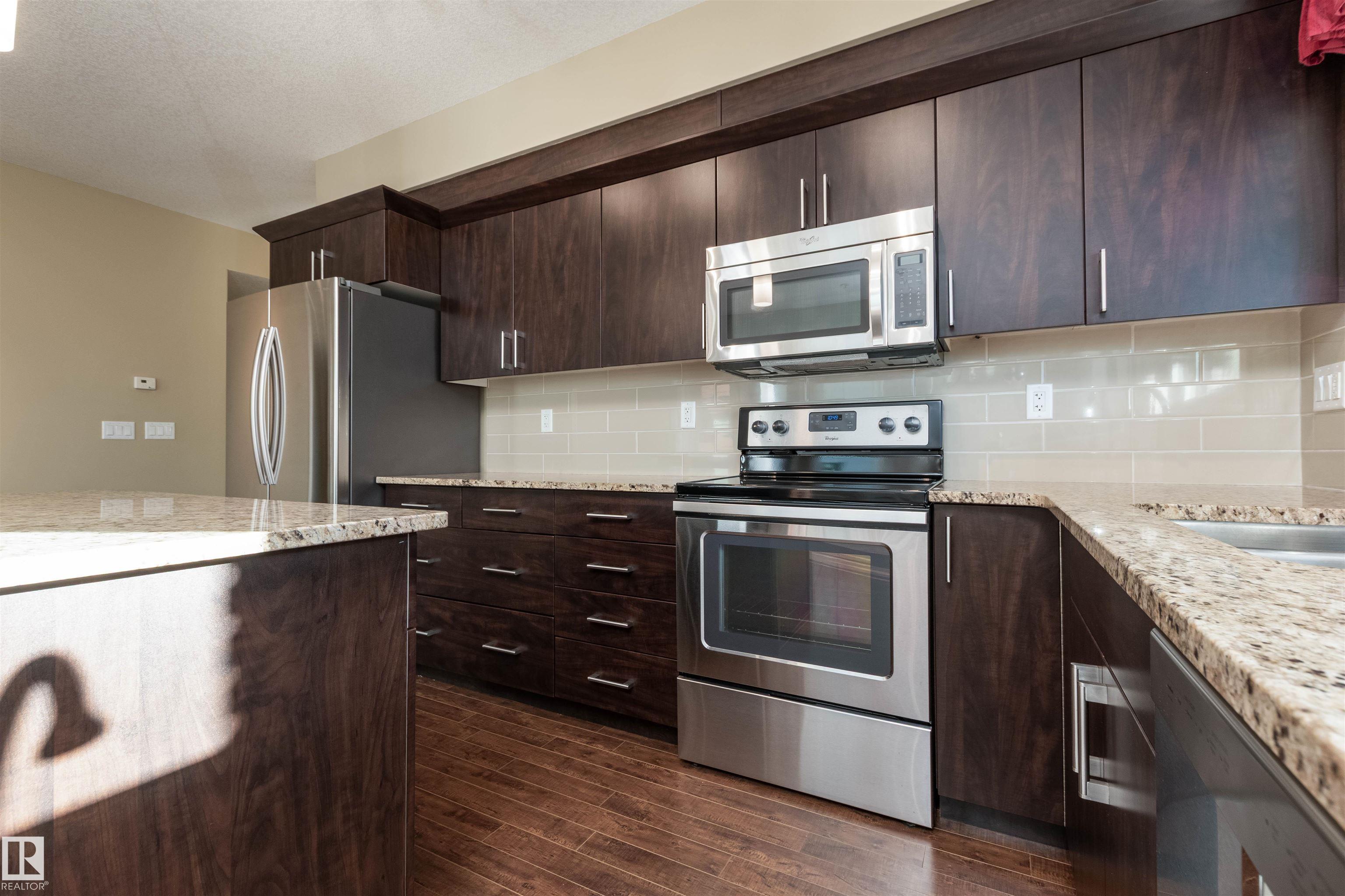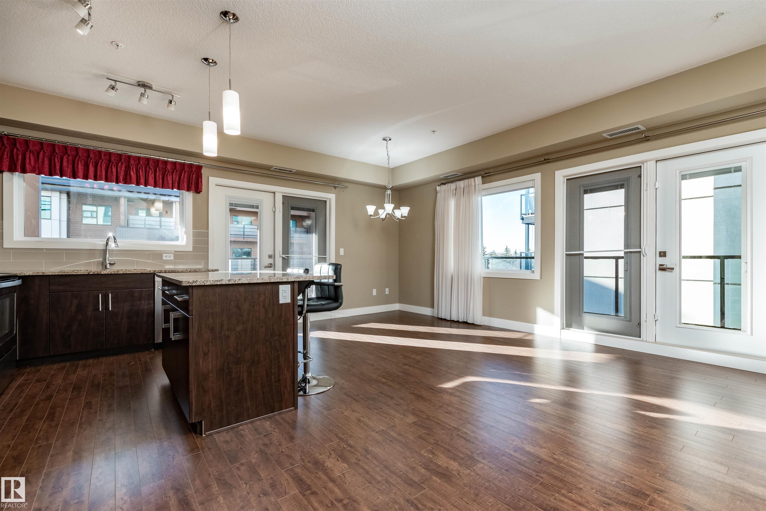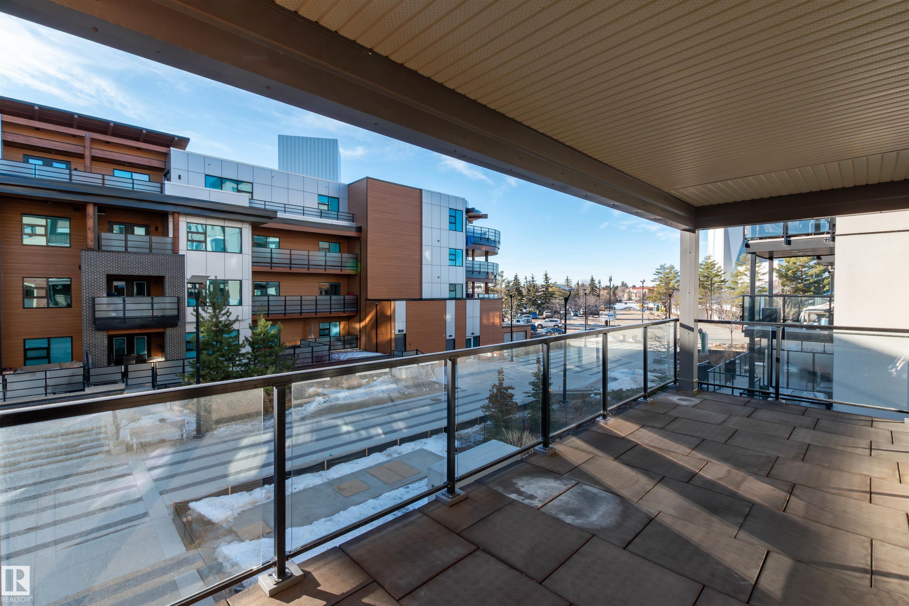 CORNER UNIT WITH SOUTHWEST EXPOSURE! Welcome to Reflections in Sherwood Park! This spacious and bright condo features an open floor plan with 1025 square feet. 2 Bedrooms and 2 bathrooms. Beautiful and modern kitchen with gorgeous granite counter tops, island, all appliances plus a large dining area. Living room with laminate flooring, and 2 BALCONIES to enjoy the sunny views! Lovely 3 piece ensuite and walk-in closet in the Primary Bedroom. Full 4 piece bathroom. Convenient in-suite laundry with stacked washer & dryer. AIR-CONDITIONING via heat pump. One UNDERGROUND TITLED PARKING STALL and assigned storage cage plus a car wash. Condo fees include professional management, heat and water. Exercise room is on the main level. Prime location just steps to Festival Place, Broadmoor Lake, The Library, restaurants and various amenities including the Sherwood Park Mall. Immediate possession is available! Visit REALTOR© website for information.
