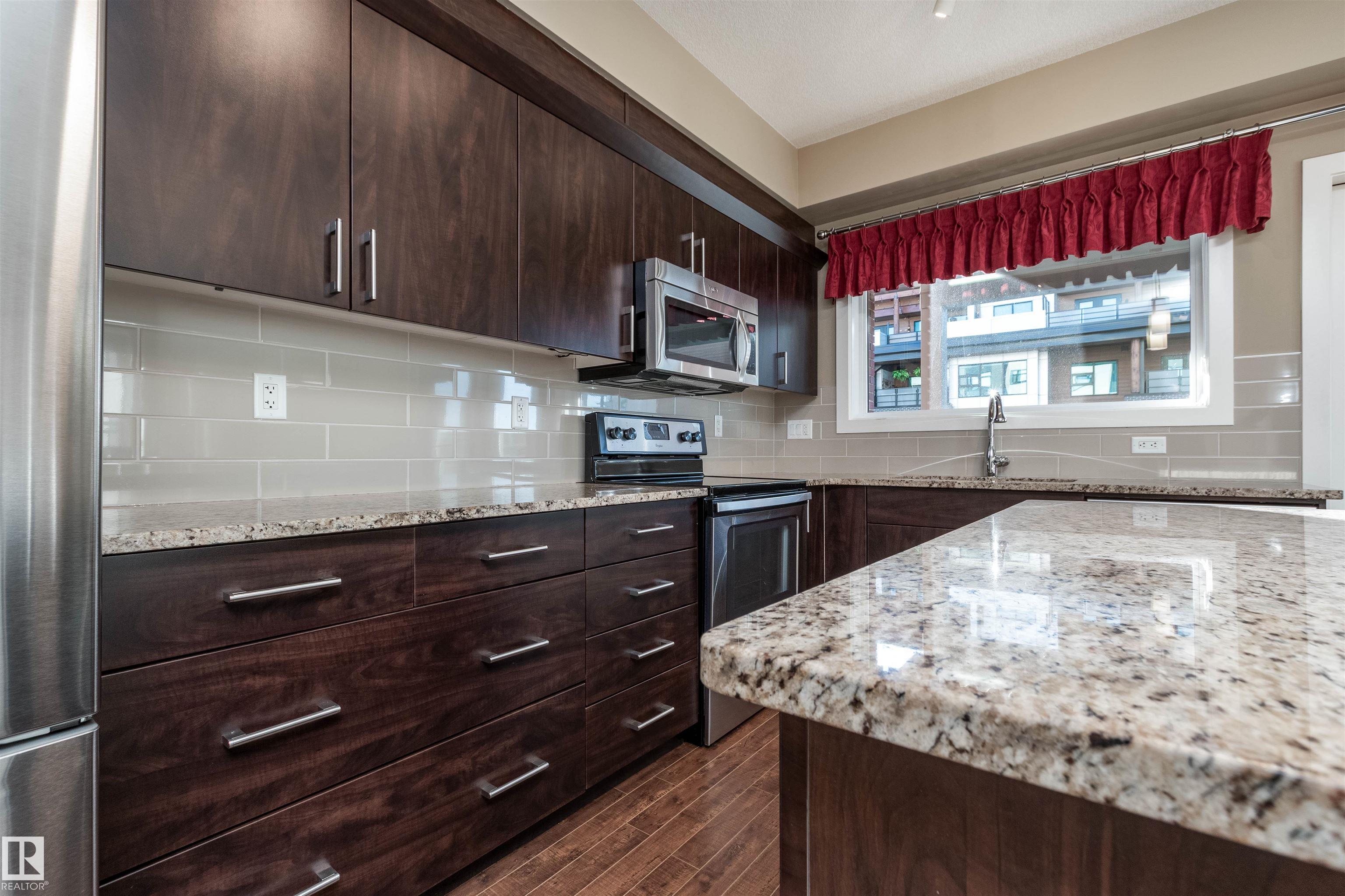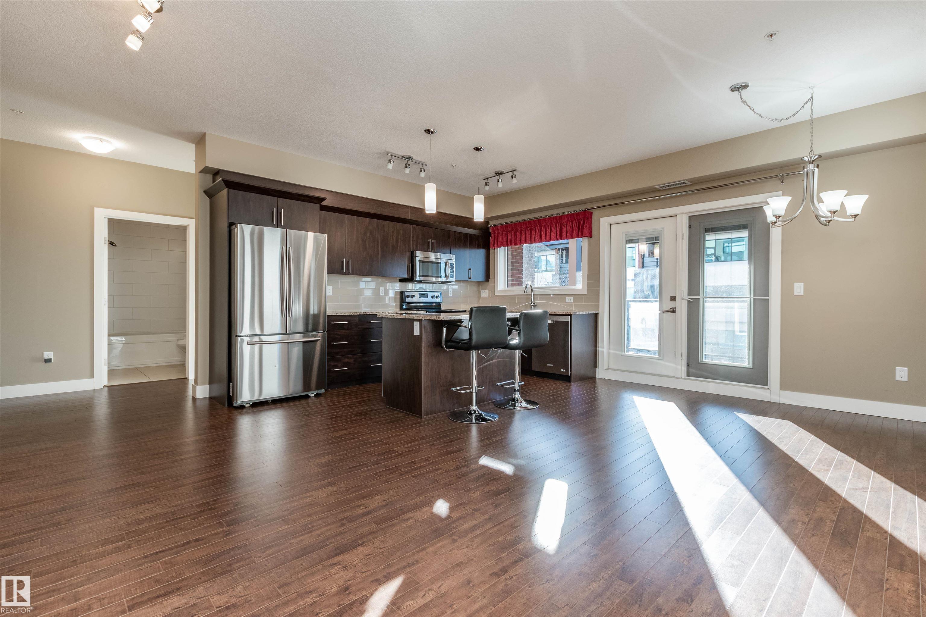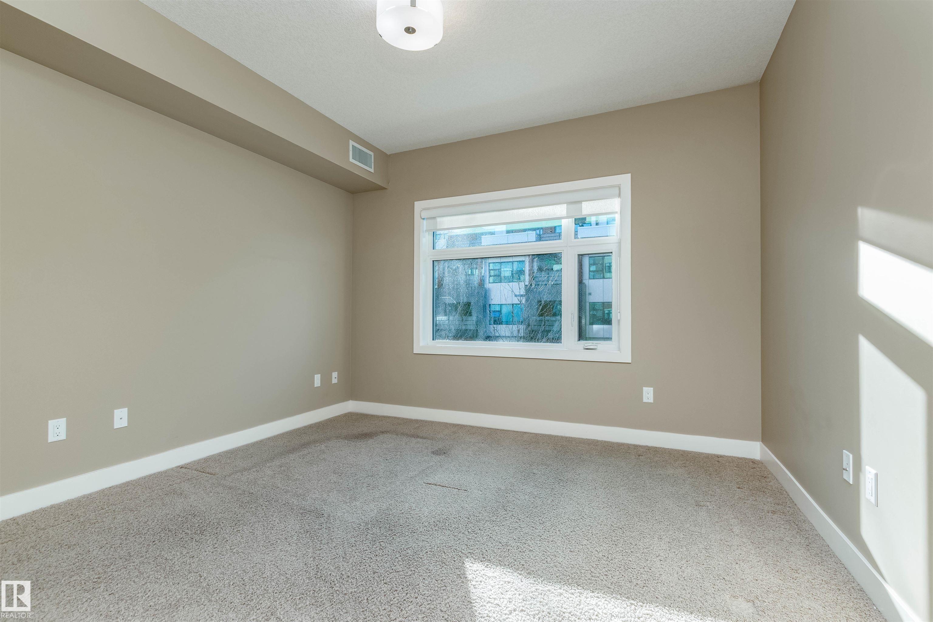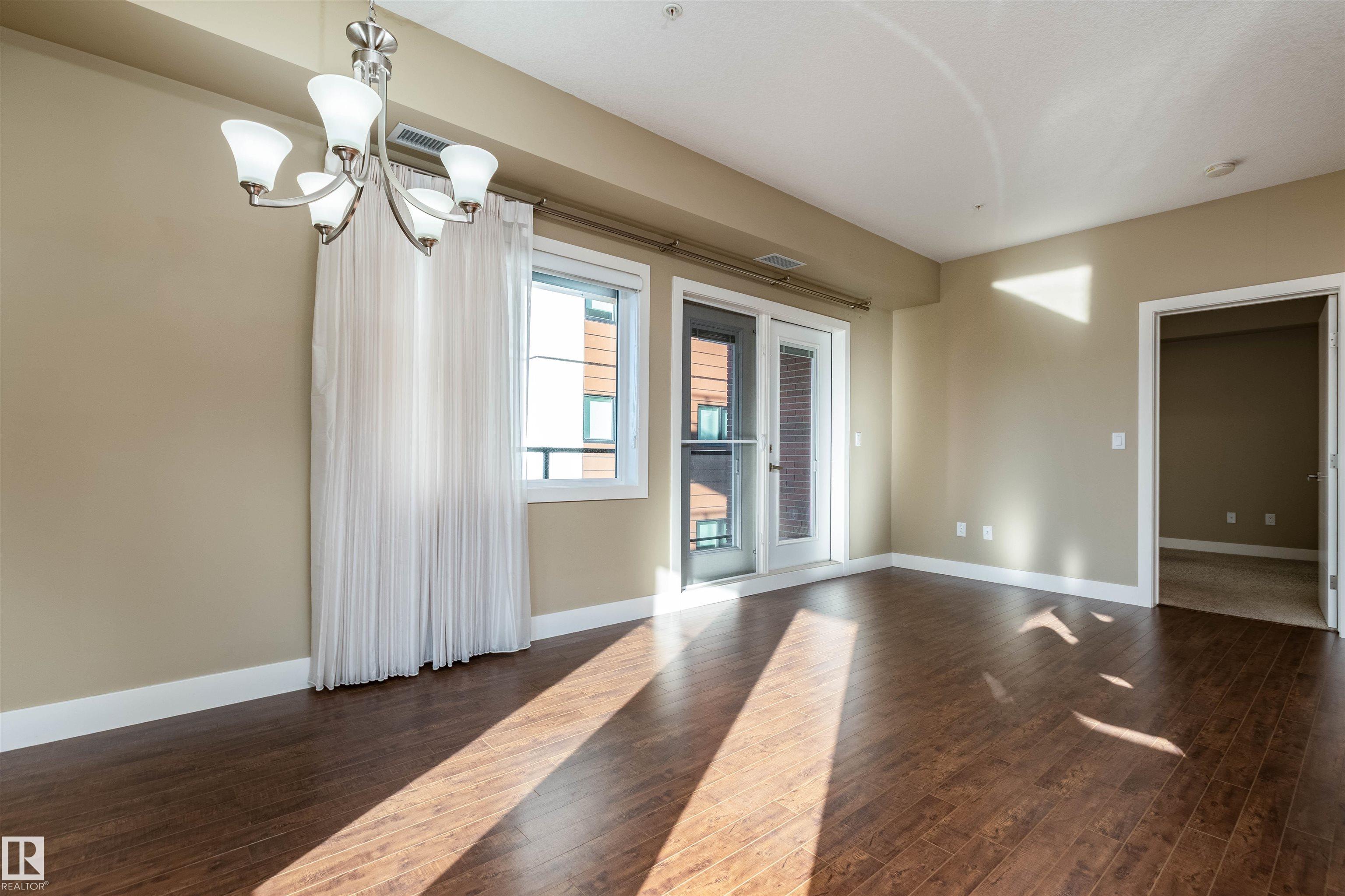 CORNER UNIT WITH SOUTHWEST EXPOSURE! Welcome to Reflections in Sherwood Park! This spacious and bright condo features an open floor plan with 1025 square feet. 2 Bedrooms and 2 bathrooms. Beautiful and modern kitchen with gorgeous granite counter tops, island, all appliances plus a large dining area. Living room with laminate flooring, and 2 BALCONIES to enjoy the sunny views! Lovely 3 piece ensuite and walk-in closet in the Primary Bedroom. Full 4 piece bathroom. Convenient in-suite laundry with stacked washer & dryer. AIR-CONDITIONING via heat pump. One UNDERGROUND TITLED PARKING STALL and assigned storage cage plus a car wash. Condo fees include professional management, heat and water. Exercise room is on the main level. Prime location just steps to Festival Place, Broadmoor Lake, The Library, restaurants and various amenities including the Sherwood Park Mall. Immediate possession is available! Visit REALTOR© website for information.