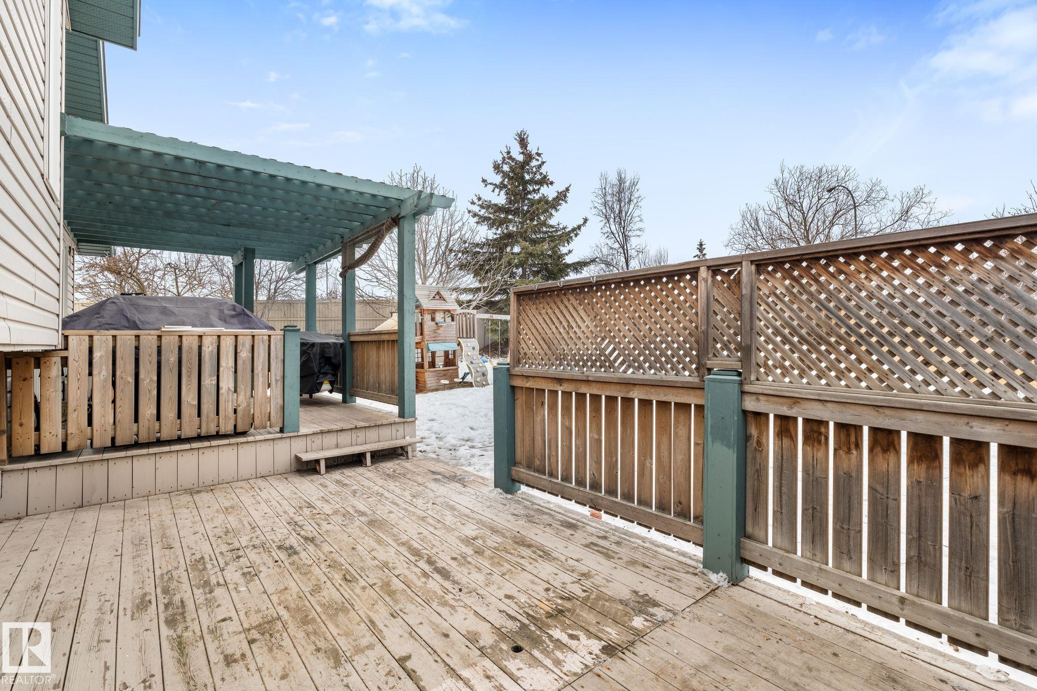 Welcome to one of the largest lots in Davidson Creek, tucked into a cul-de-sac and packed with updates! This spacious and functional 4-level split offers nearly 2,400 sq ft of finished living space and a layout perfect for growing families. The massive, fully landscaped yard, heated double attached garage is a true standout -- featuring mature trees, a 2-tier deck, pergola, shed, and loads of room to play or entertain. Inside, you'll love the bright vaulted living room and the beautifully renovated kitchen with a huge island, tons of cabinetry, and brand-new appliances. New vinyl plank flooring on the upper and lower levels adds a modern touch, while new windows and a new furnace with a heat pump(air conditioning ) and a newer roof provide peace of mind. With multiple living areas, generous bedrooms, and great flow throughout, this home offers incredible flexibility for family life, work, and play. A rare lot size, major upgrades, and an unbeatable location close to schools -- this one is a must-see!