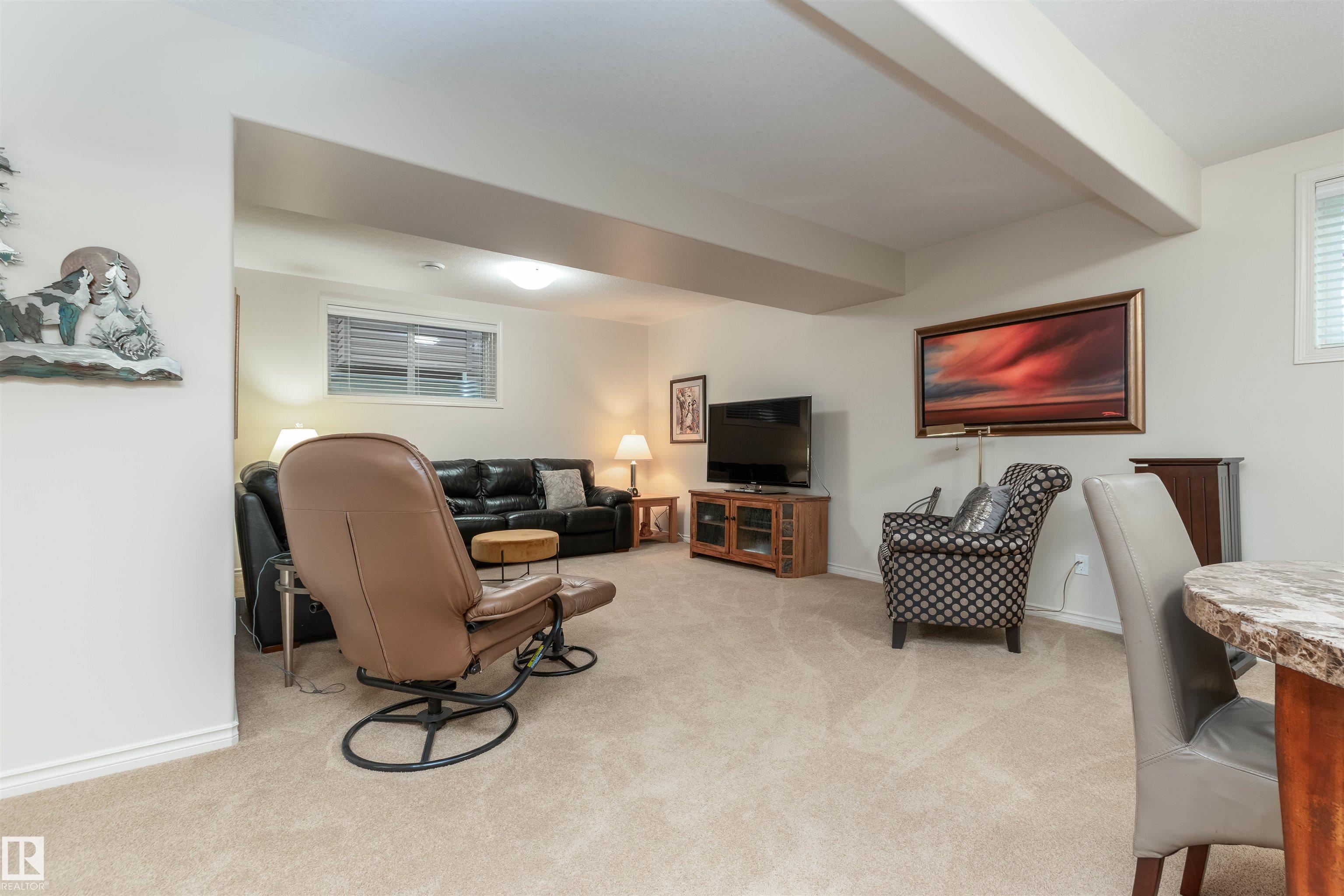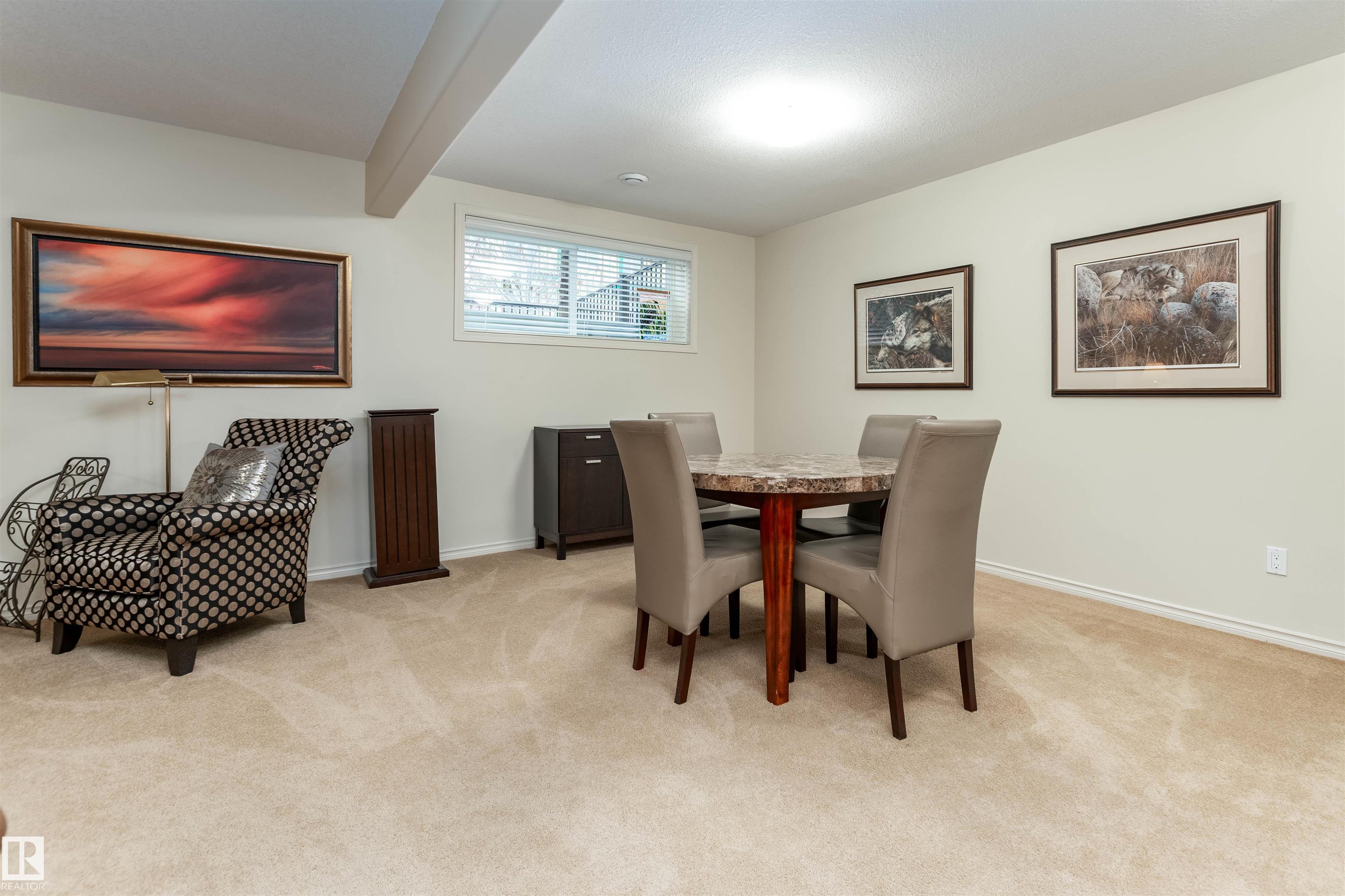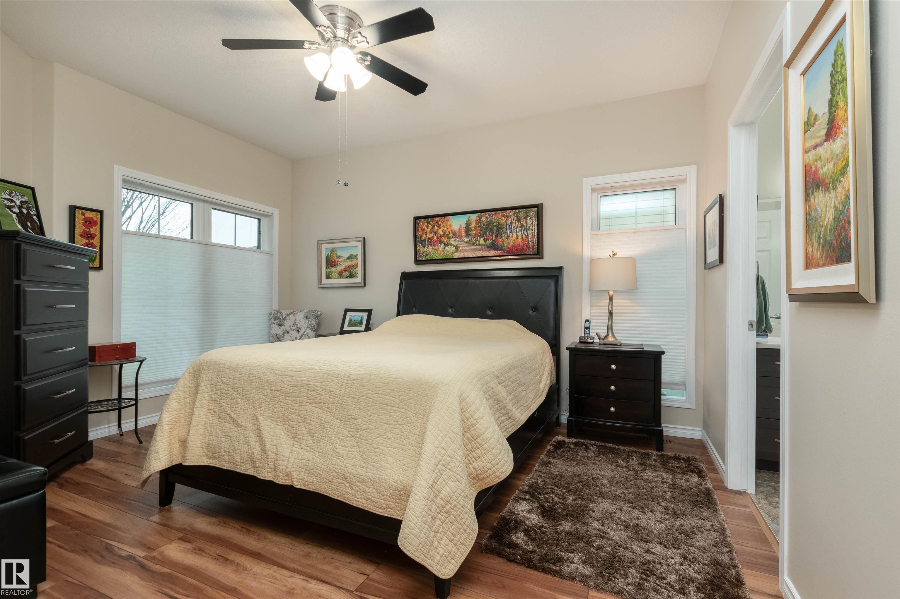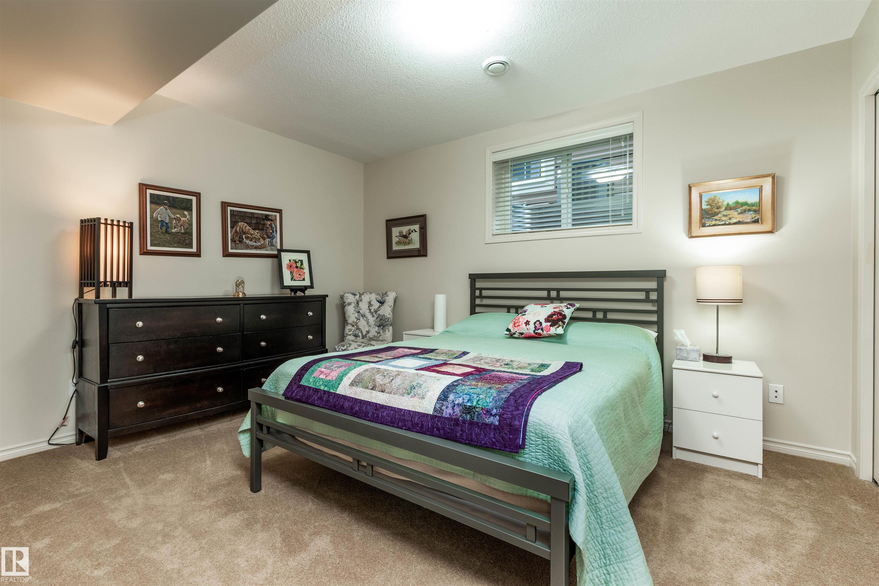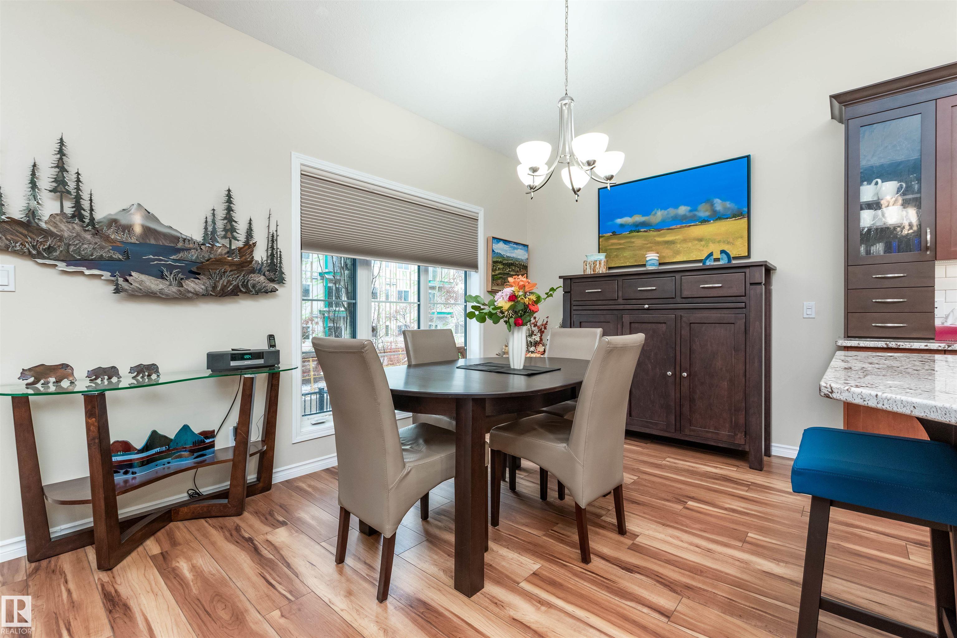 45+ Retirement Community in the heart of Emerald Hills! A/C, triple pane windows and fenced yard! Main floor features vaulted ceilings; spacious open-concept living/dining area w/gas fireplace. Kitchen includes a breakfast bar, espresso shaker-style cabinets, full pantry, & eat-in area leading out to deck. Primary suite features dble closets with custom built-ins; and a 4-pce ensuite including a soaker tub and separate stand-up shower. Also on main floor:separate laundry room with storage and hanging rack;an office/den space; double garage-drywalled and painted. Exterior lighting on house. Basement has open living area; 4-pc bath; and a guest bedroom with double closets with shelving,plumbed for wet bar area. A south facing front porch and north facing deck overlook mature trees and perennial landscaping. Condo fees cover snow removal, yard maintenance and window cleaning. Conveniently located within a 10 min walk of playgrounds, Italian Centre Shop, Hospital, restaurants, pharmacy, grocery, & shopping.