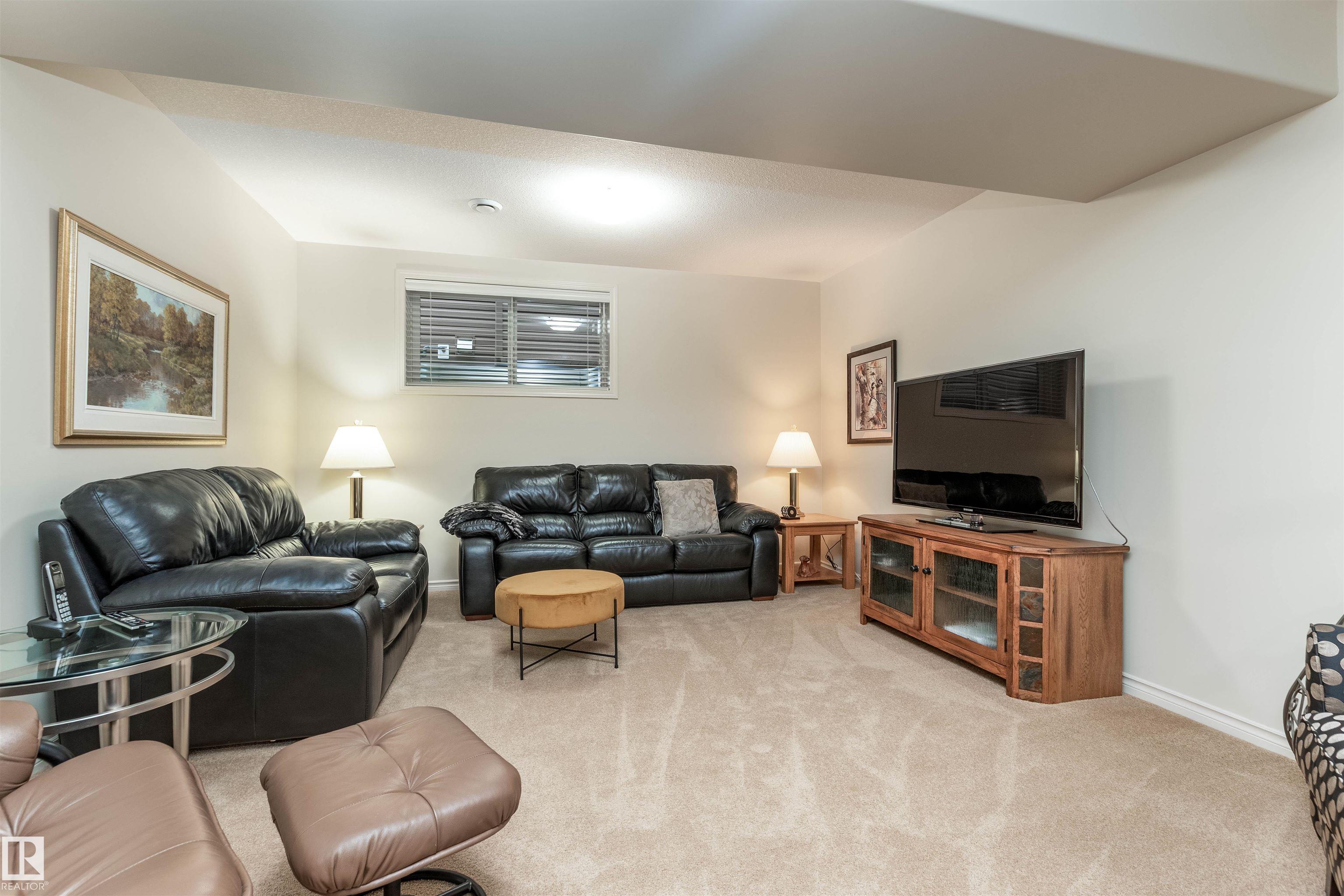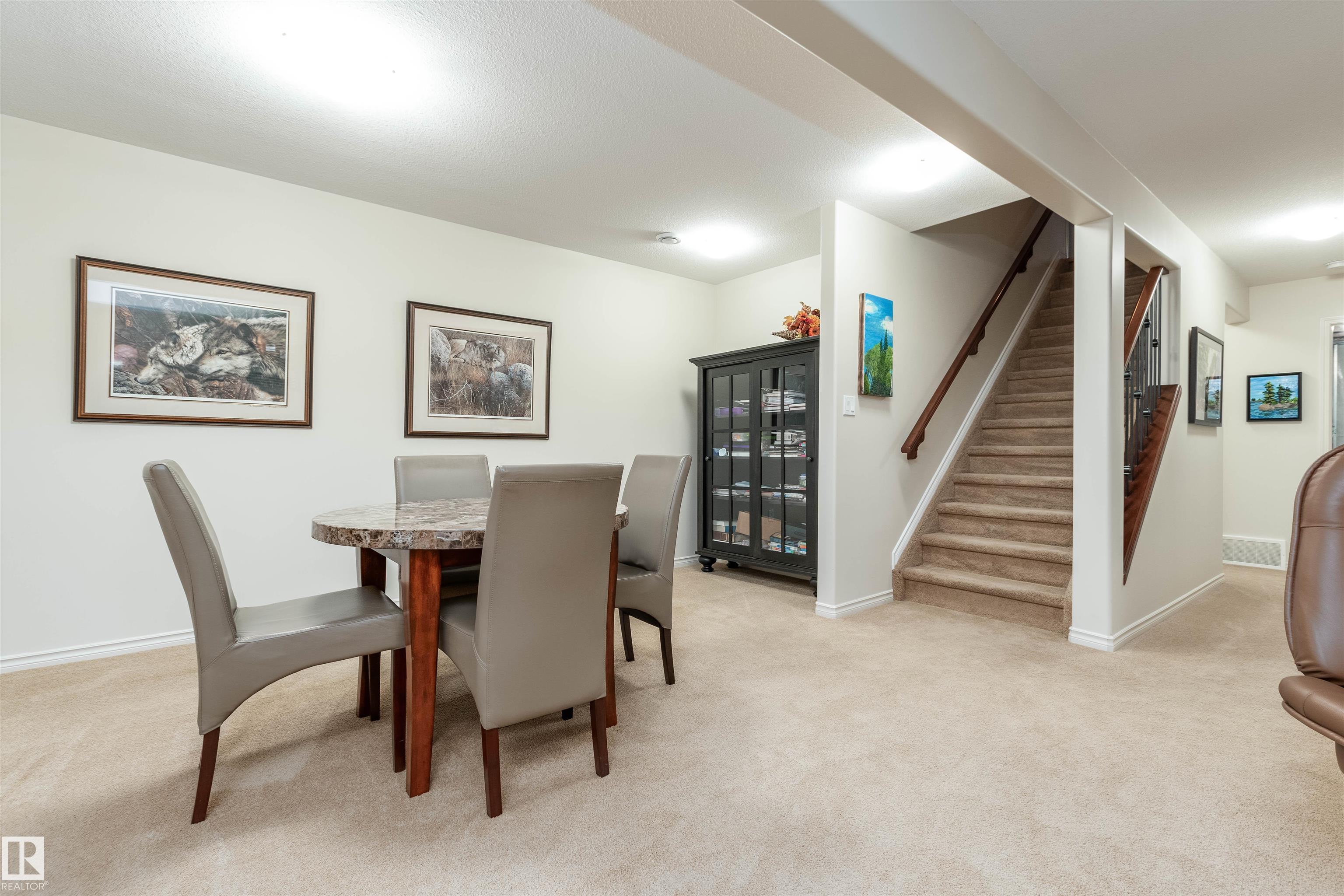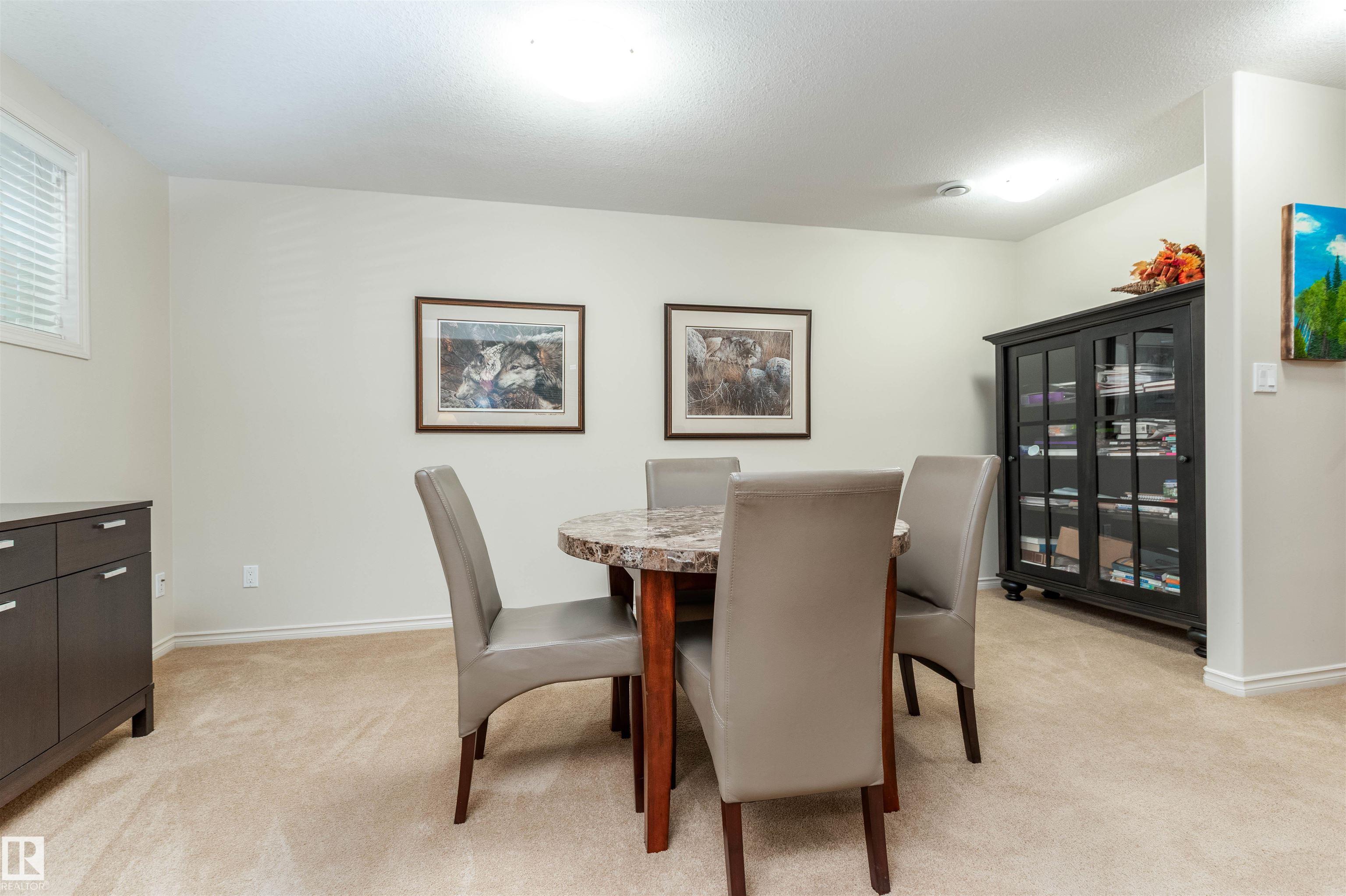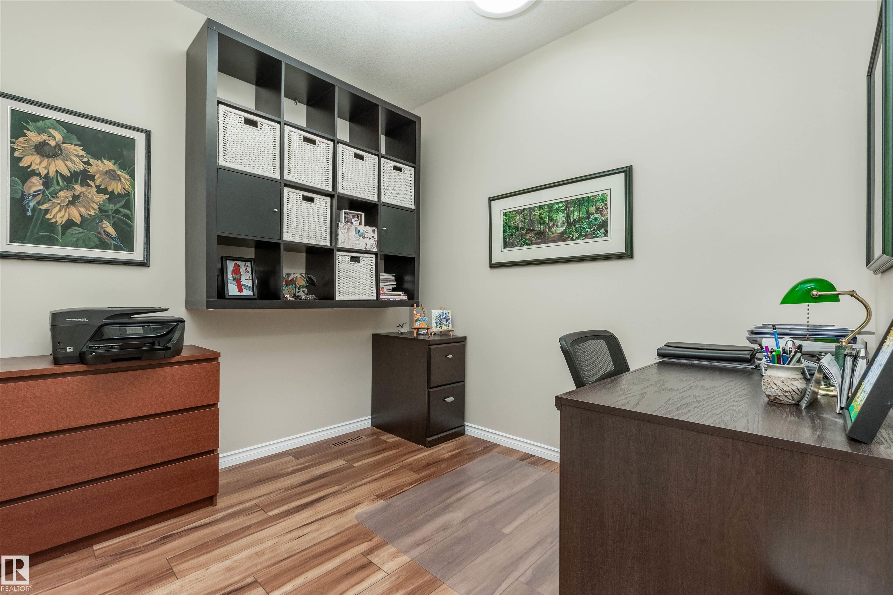 45+ Retirement Community in the heart of Emerald Hills! A/C, triple pane windows and fenced yard! Main floor features vaulted ceilings; spacious open-concept living/dining area w/gas fireplace. Kitchen includes a breakfast bar, espresso shaker-style cabinets, full pantry, & eat-in area leading out to deck. Primary suite features dble closets with custom built-ins; and a 4-pce ensuite including a soaker tub and separate stand-up shower. Also on main floor:separate laundry room with storage and hanging rack;an office/den space; double garage-drywalled and painted. Exterior lighting on house. Basement has open living area; 4-pc bath; and a guest bedroom with double closets with shelving,plumbed for wet bar area. A south facing front porch and north facing deck overlook mature trees and perennial landscaping. Condo fees cover snow removal, yard maintenance and window cleaning. Conveniently located within a 10 min walk of playgrounds, Italian Centre Shop, Hospital, restaurants, pharmacy, grocery, & shopping.