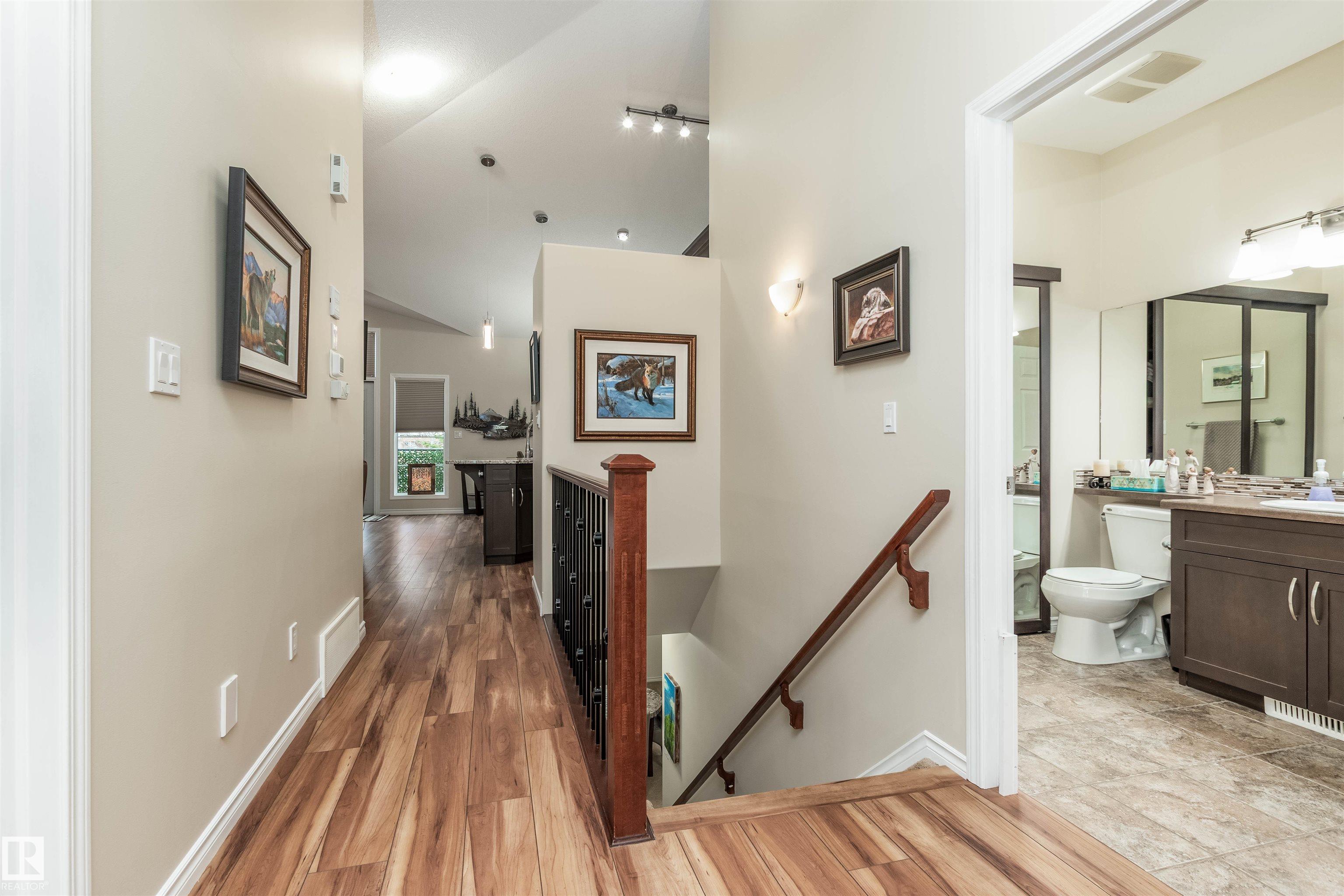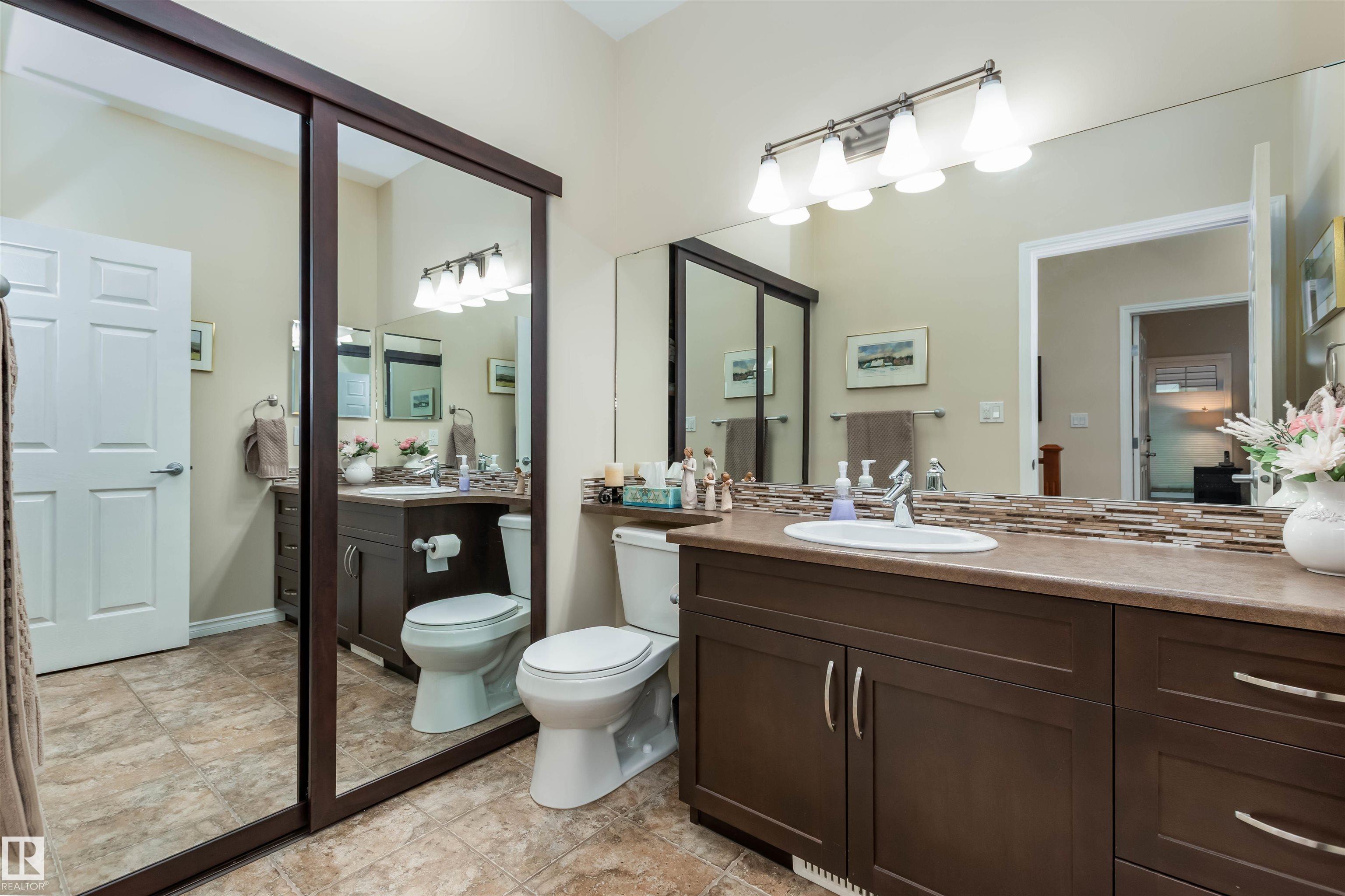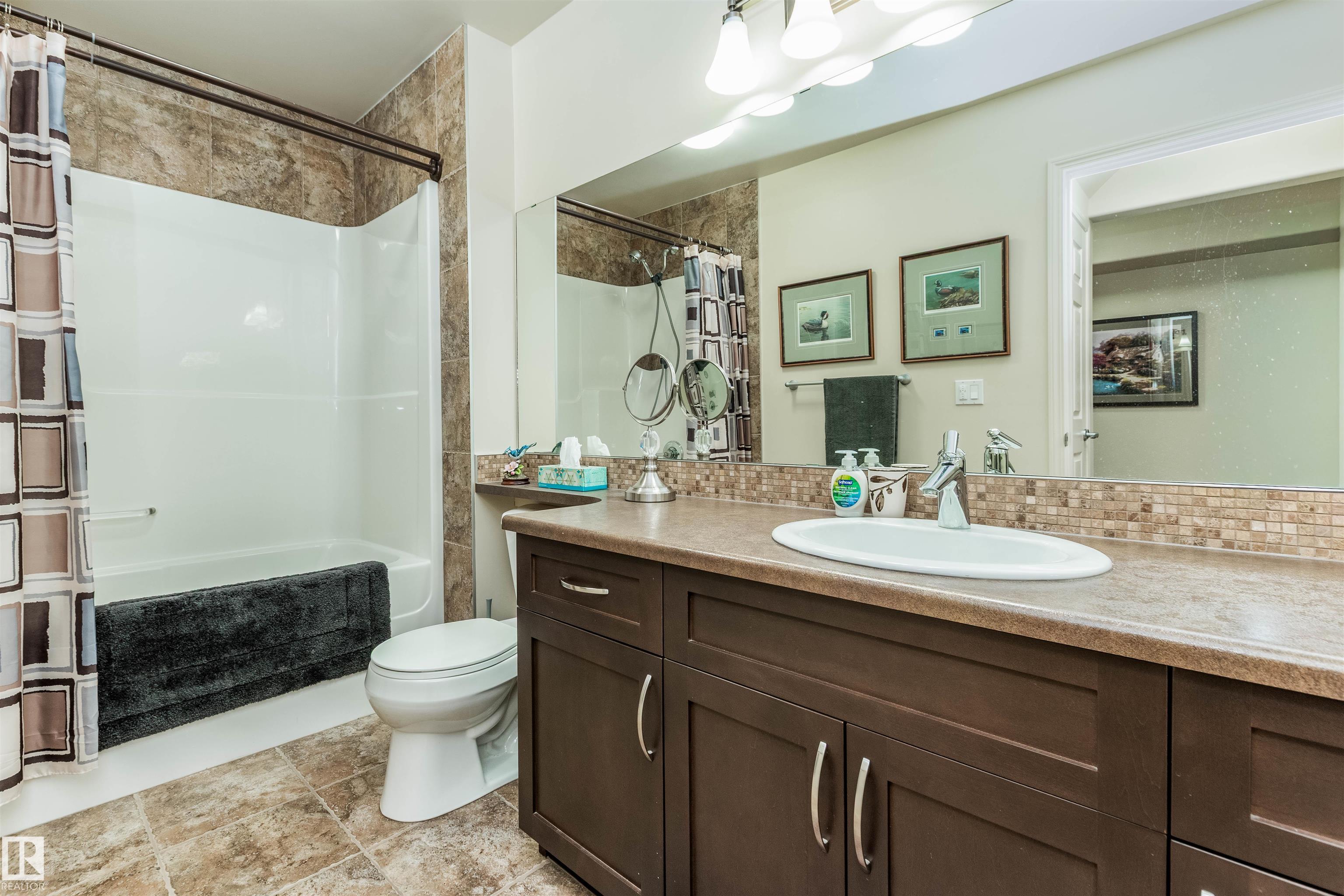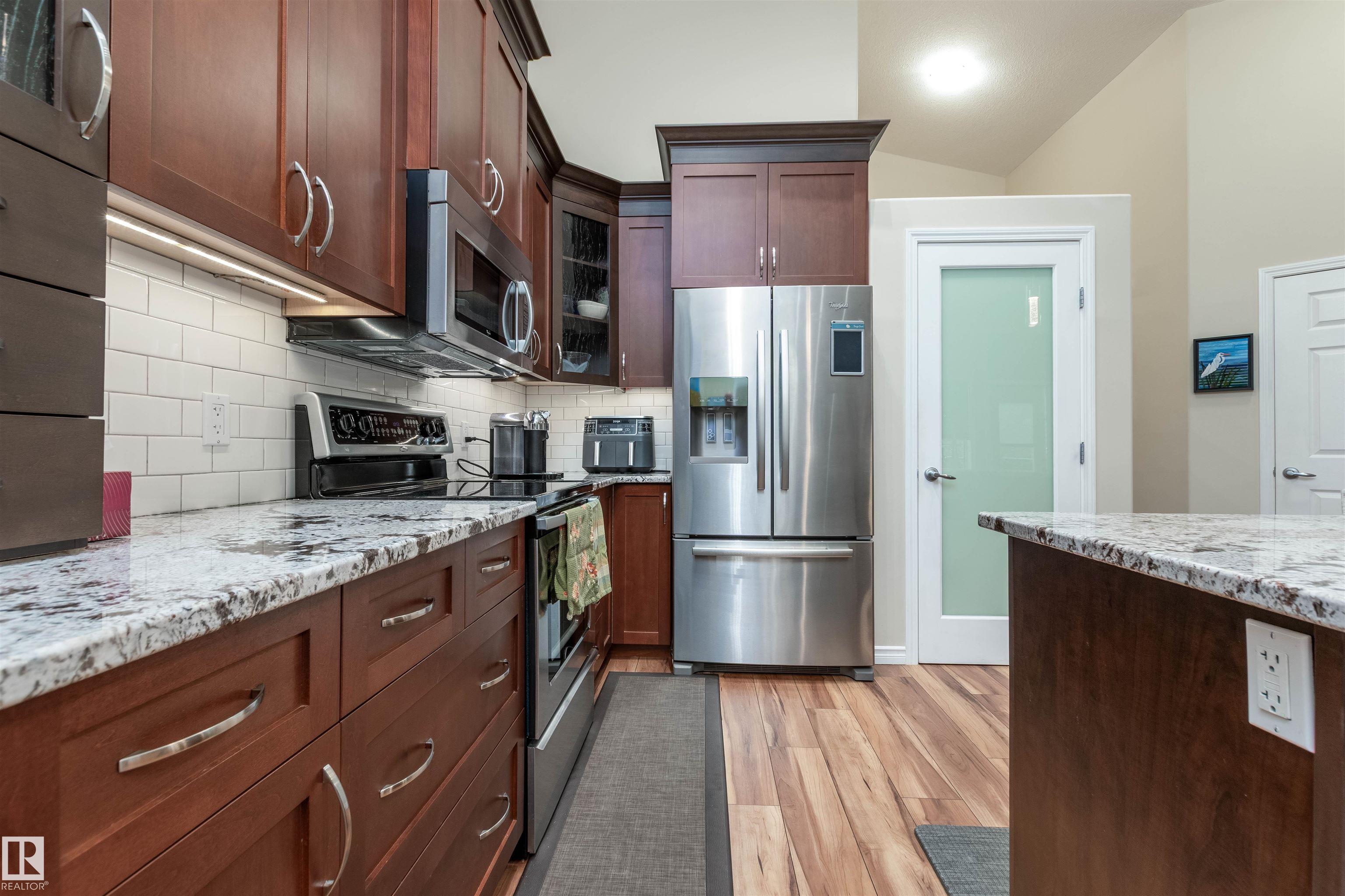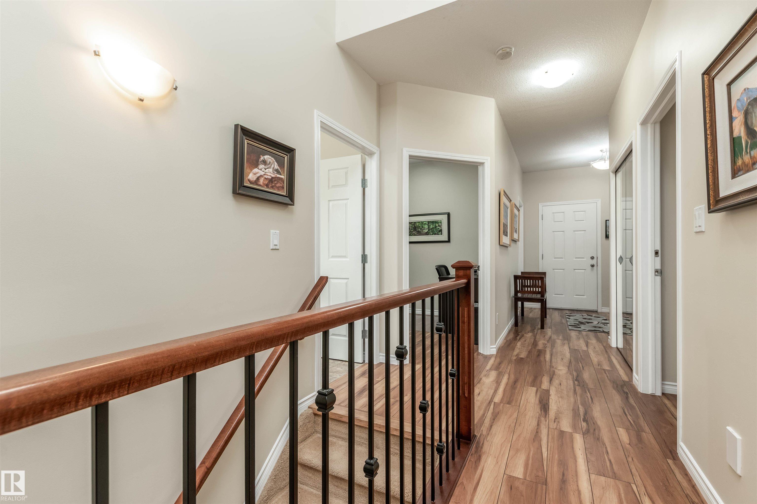 45+ Retirement Community in the heart of Emerald Hills! A/C, triple pane windows and fenced yard! Main floor features vaulted ceilings; spacious open-concept living/dining area w/gas fireplace. Kitchen includes a breakfast bar, espresso shaker-style cabinets, full pantry, & eat-in area leading out to deck. Primary suite features dble closets with custom built-ins; and a 4-pce ensuite including a soaker tub and separate stand-up shower. Also on main floor:separate laundry room with storage and hanging rack;an office/den space; double garage-drywalled and painted. Exterior lighting on house. Basement has open living area; 4-pc bath; and a guest bedroom with double closets with shelving,plumbed for wet bar area. A south facing front porch and north facing deck overlook mature trees and perennial landscaping. Condo fees cover snow removal, yard maintenance and window cleaning. Conveniently located within a 10 min walk of playgrounds, Italian Centre Shop, Hospital, restaurants, pharmacy, grocery, & shopping.