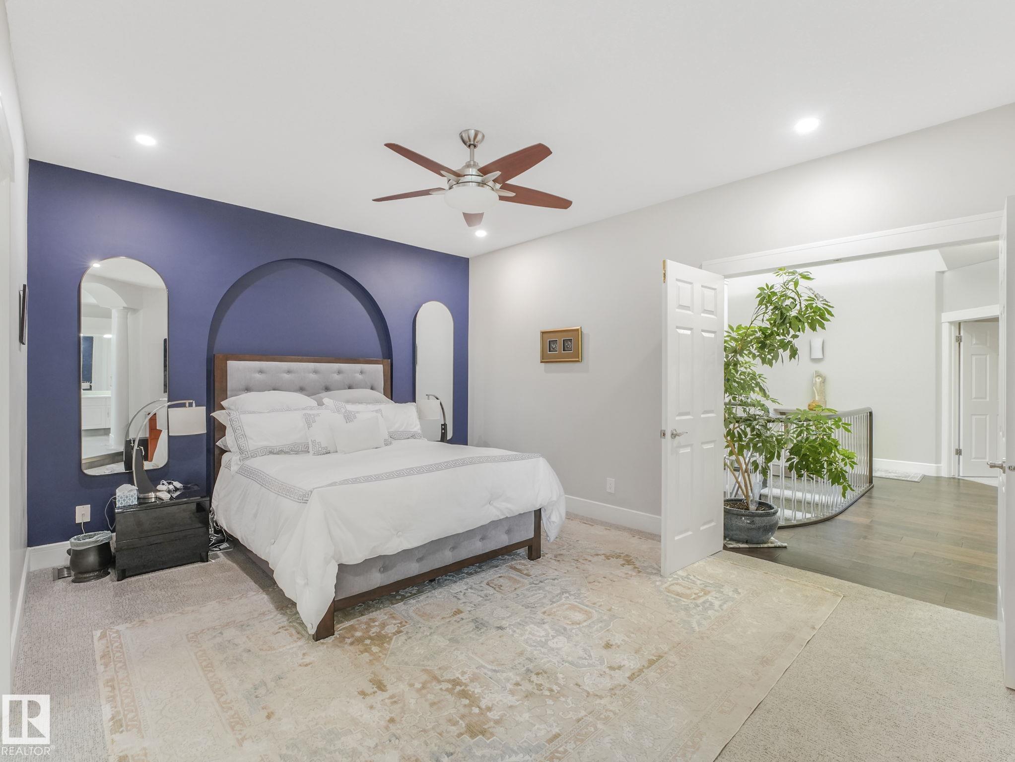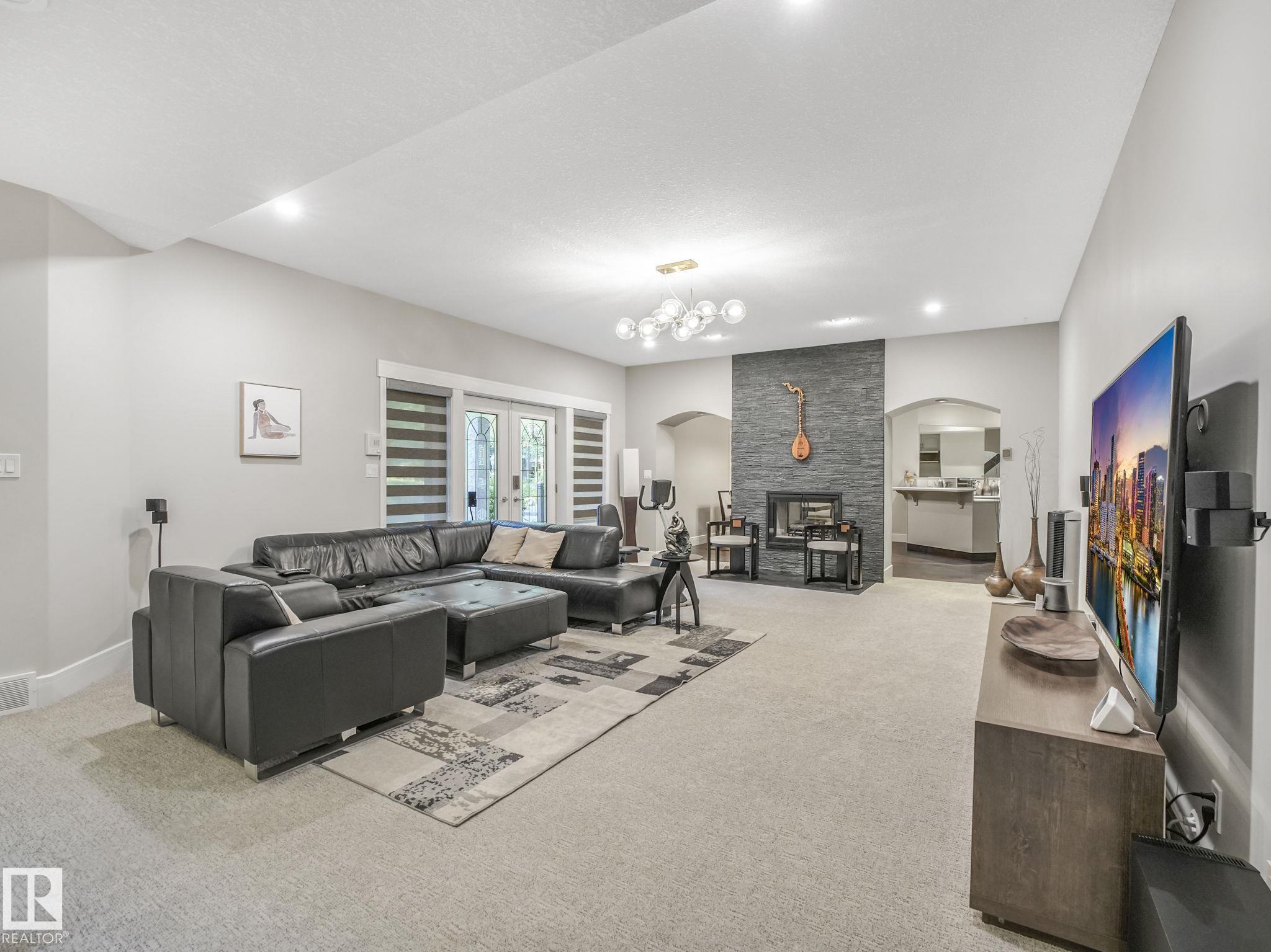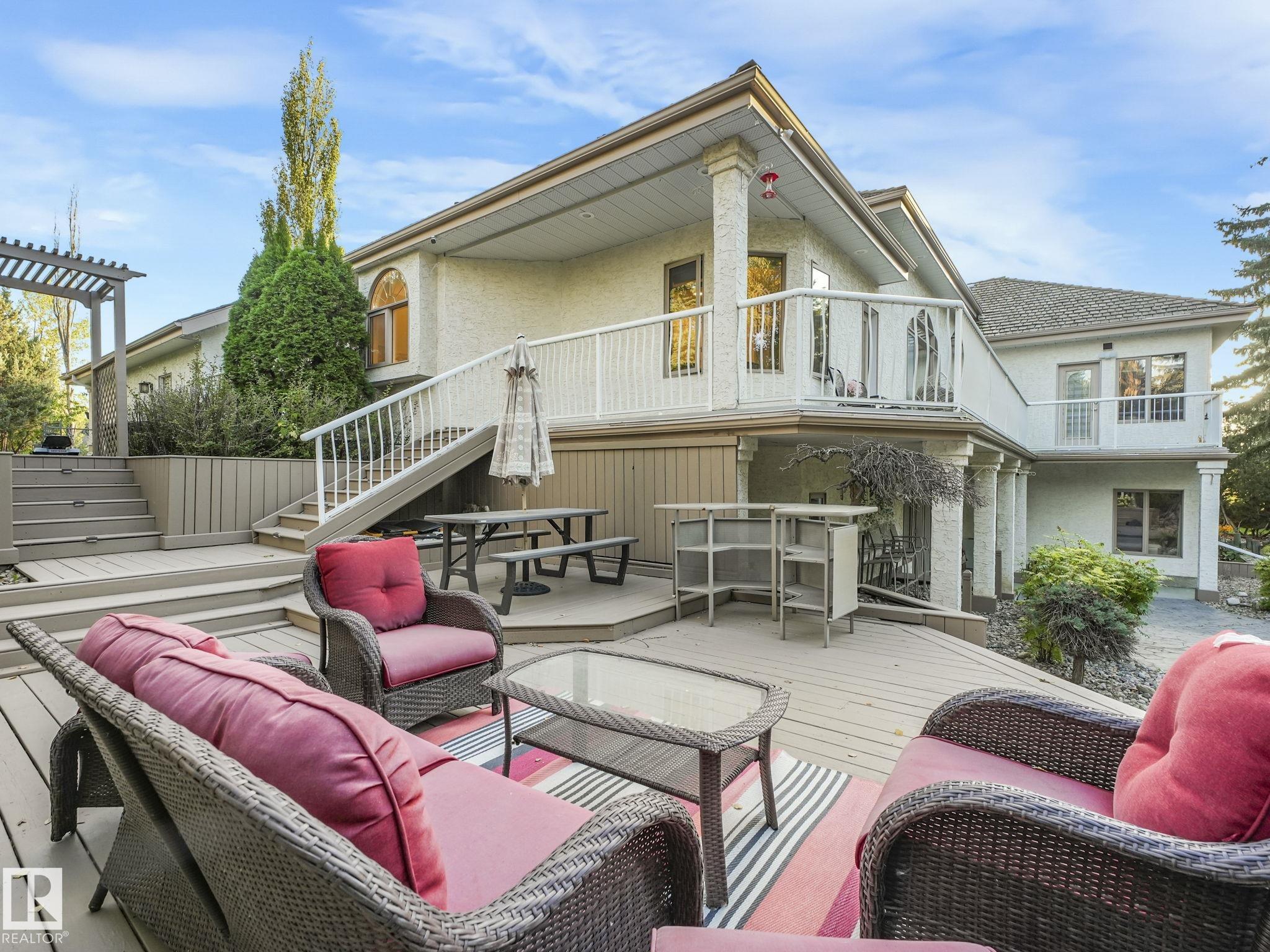 Incredible Oasis in the Park! Fully developed walk-out Estate Bungalow, built by Heredity Homes, offers nearly 6,000 SF of luxury living on a huge .75-acre cul-de-sac lot. Meticulously maintained & substantially renovated with modern elegance, this home blends timeless craftsmanship with contemporary comfort. The professionally landscaped yard is an unmatched PRIVATE RETREAT, featuring stone pathways, waterfall pond & bridge, hot tub, playground, firepit, & multiple areas designed for relaxation and entertaining. Inside, soaring ceilings, custom millwork, and expansive windows create a bright, inviting atmosphere. The living room is grand, while the kitchen impresses with quartz counters, premium cabinetry, SS appliances, & sunlit breakfast nook. The main floor offers 2 bedrooms + den, including a luxurious primary suite with walk-in closet and spa-inspired ensuite. The basement features a flex room, theatre room, 3 bedrooms, & 2nd kitchen. This unique home will impress even the most discerning buyer!