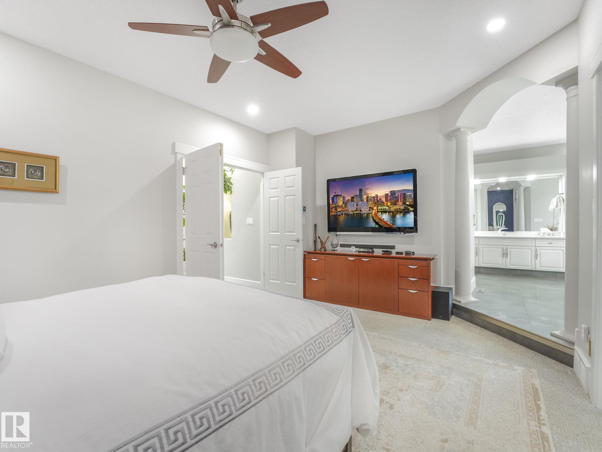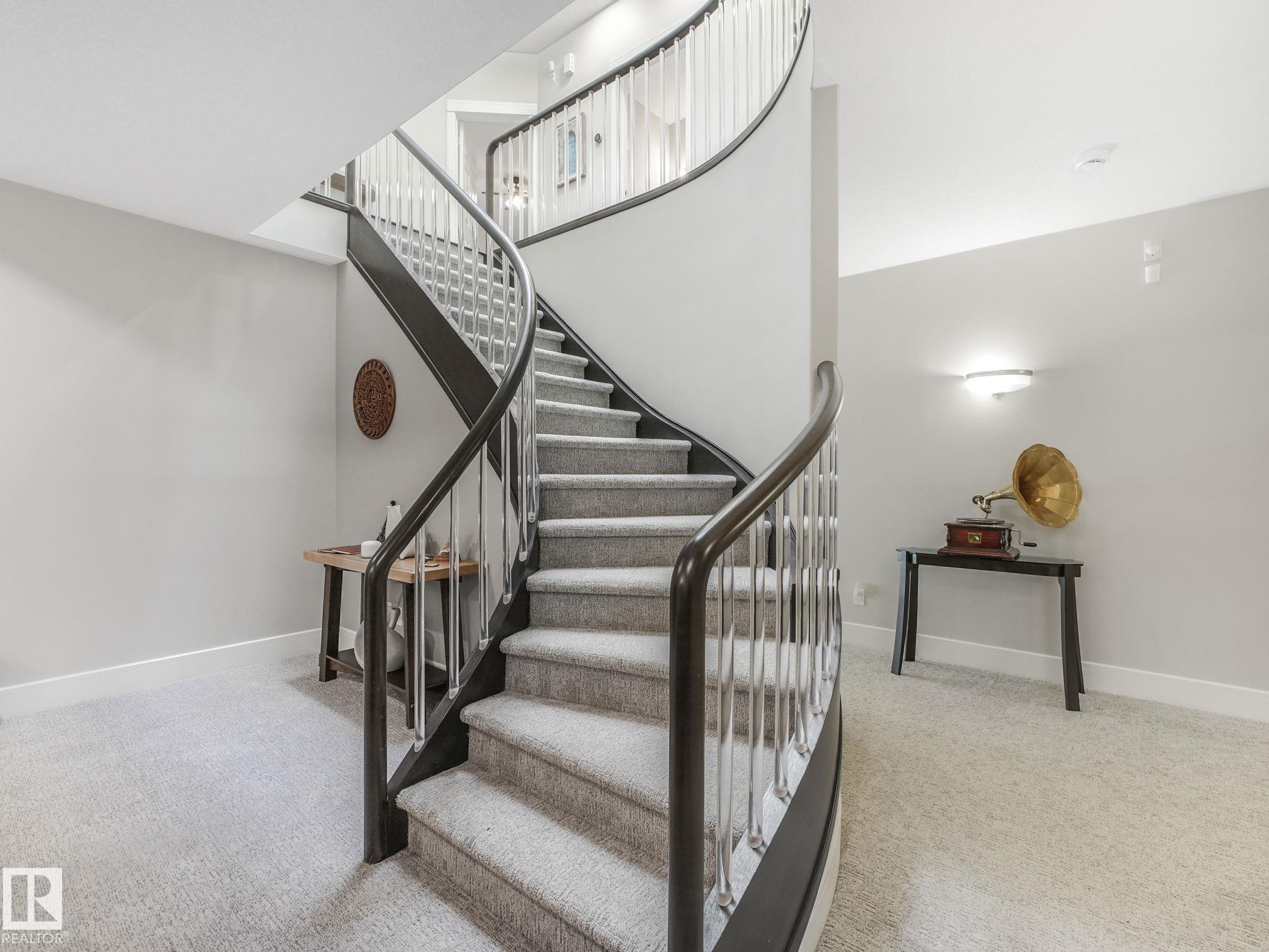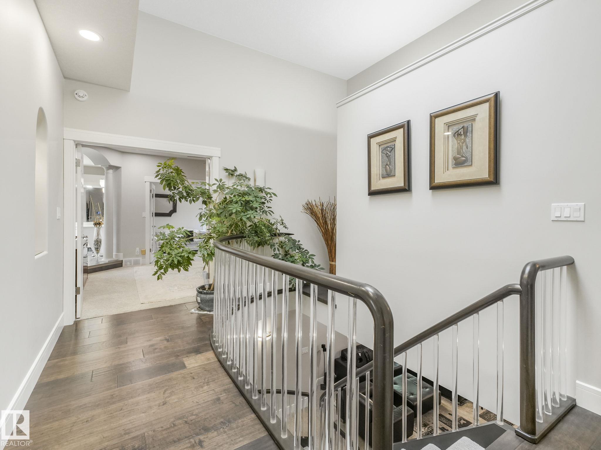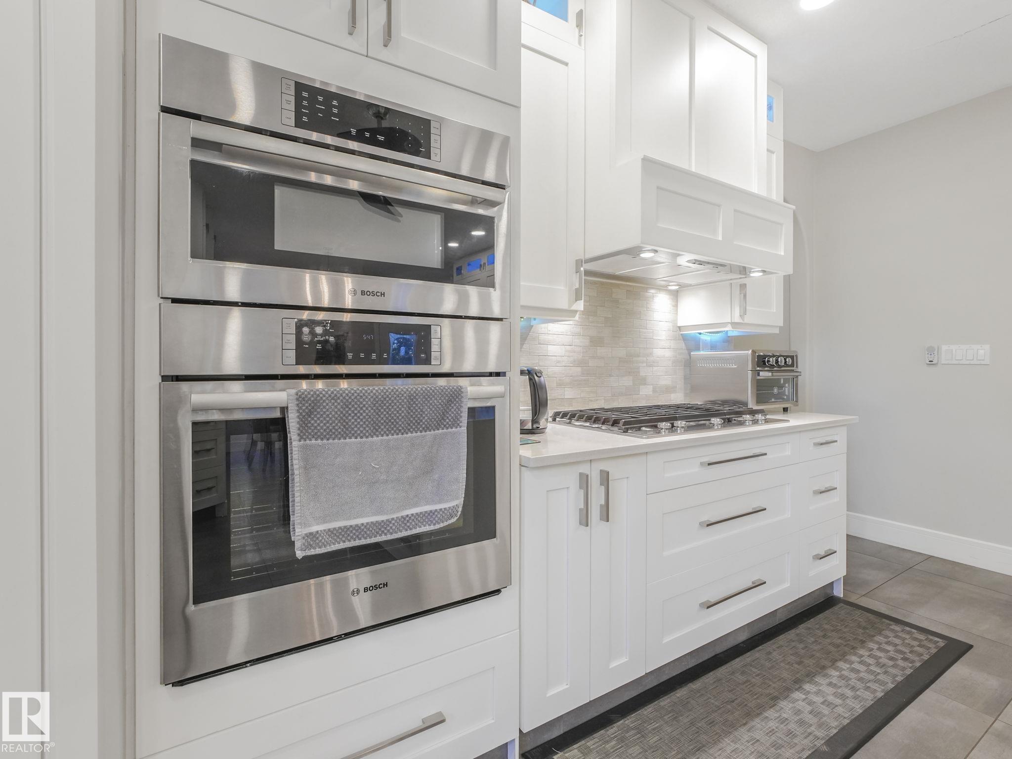 Incredible Oasis in the Park! Fully developed walk-out Estate Bungalow, built by Heredity Homes, offers nearly 6,000 SF of luxury living on a huge .75-acre cul-de-sac lot. Meticulously maintained & substantially renovated with modern elegance, this home blends timeless craftsmanship with contemporary comfort. The professionally landscaped yard is an unmatched PRIVATE RETREAT, featuring stone pathways, waterfall pond & bridge, hot tub, playground, firepit, & multiple areas designed for relaxation and entertaining. Inside, soaring ceilings, custom millwork, and expansive windows create a bright, inviting atmosphere. The living room is grand, while the kitchen impresses with quartz counters, premium cabinetry, SS appliances, & sunlit breakfast nook. The main floor offers 2 bedrooms + den, including a luxurious primary suite with walk-in closet and spa-inspired ensuite. The basement features a flex room, theatre room, 3 bedrooms, & 2nd kitchen. This unique home will impress even the most discerning buyer!