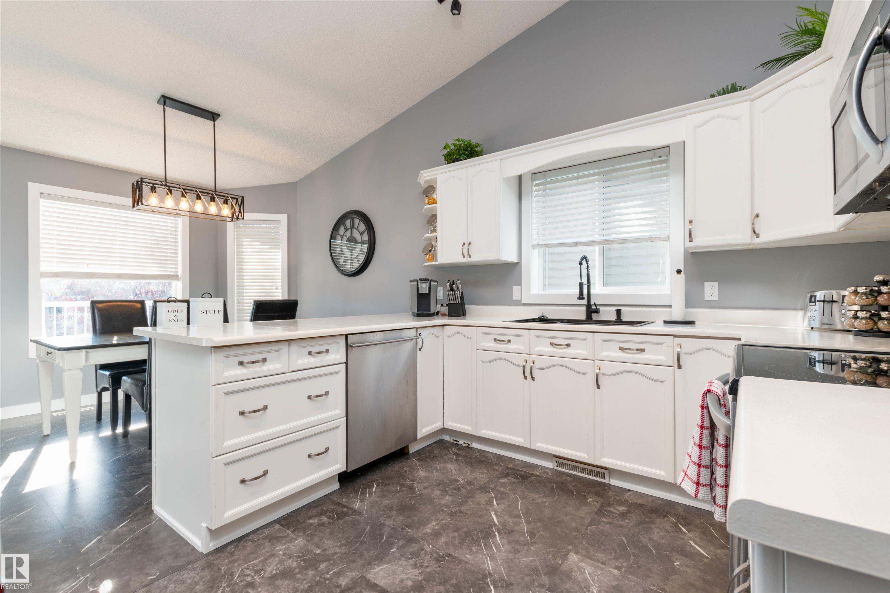 A fabulous well maintained Bi-level home in the desirable area of Forrest Greens - Featuring: Front patio area for morning coffees, Vaulted ceiling, a main floor with 2 good sized Bedrooms with walk-in closets plus a Den which could be used as a bedroom - Living room with cozy electric fireplace - laminated flooring - large kitchen with abundance of cabinets, pantry, SS appliances, large sink and a good space for a dining table with a garden door to 13x10 deck. Primary bedroom fits a King size bed with 3 pc ensuite - Basement is finished with 2 more bedrooms and a full bathroom, huge Family room for movie nites. Oversized 24x24 heated garage - Central Air - great quiet location - Yard is fenced and has a patio - close to all amenities - don't miss it - see it today!