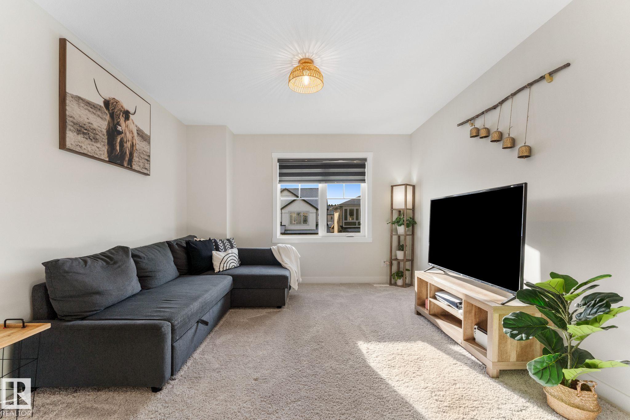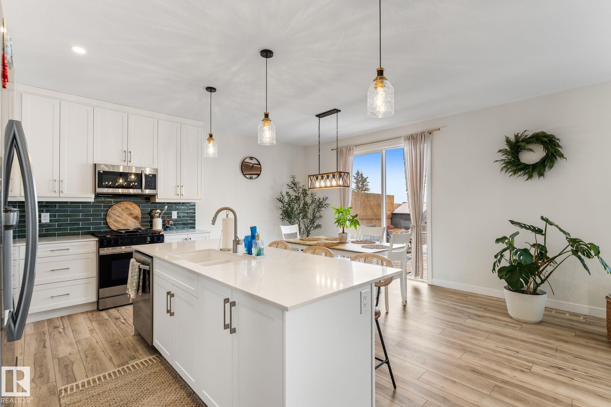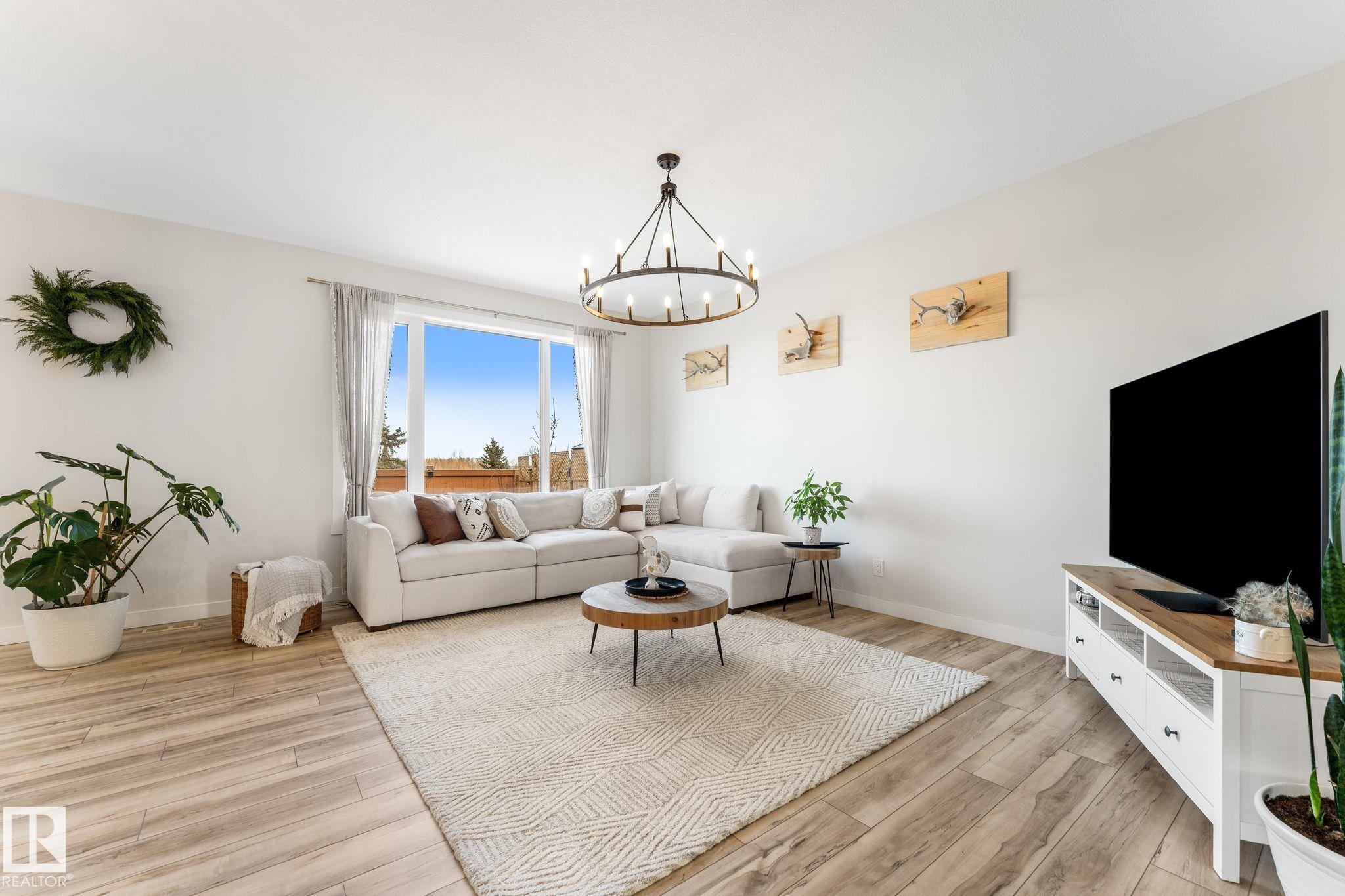 Welcome to this stunning 2024 built 2 storey home offering 2,113 sq ft, 3 beds, 2.5 baths, double attached garage, and perfectly situated on a premium lot backing rolling country hills in Hearthstone - named Edmonton's Best New Community in 2025 by BILD. A newer family home without the stress of final grading, fencing, landscaping, or buying/installing appliances; it's all done! With many builder upgrades, enjoy 9' ceilings, large windows that frame those country views, vinyl plank flooring, upgraded lighting, magazine worthy kitchen with upgraded cabinetry to the ceiling, quartz countertops, and gas range for the chef of the home. Upstairs is a family retreat with bonus room, Jack & Jill bath for the kids' bedrooms (both with walk-in closets), convenient laundry, and primary suite with walk-in closet and upgraded 5 pc ensuite with deep soaker tub, separate tiled shower, and dual sinks. Side separate entrance to the basement and roughed-in bath offer flexibility for a future suite, or the growing family.
