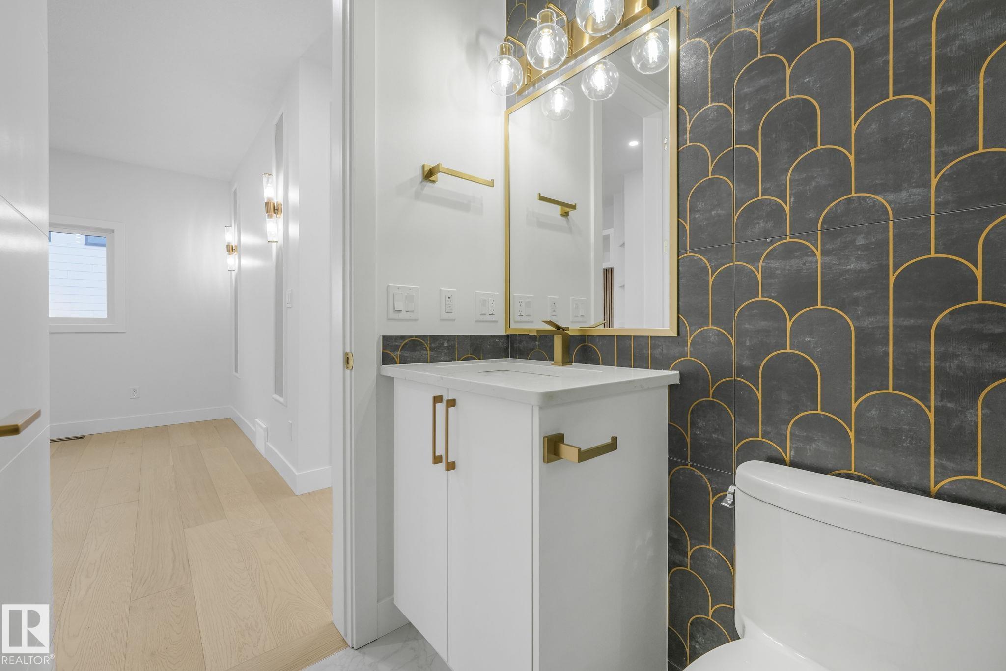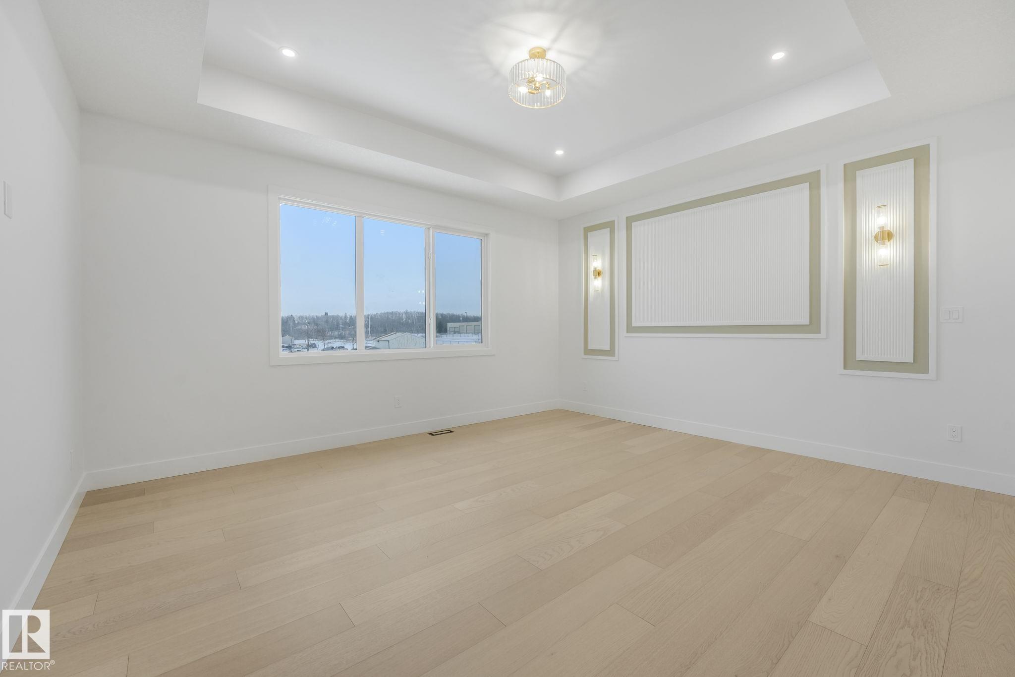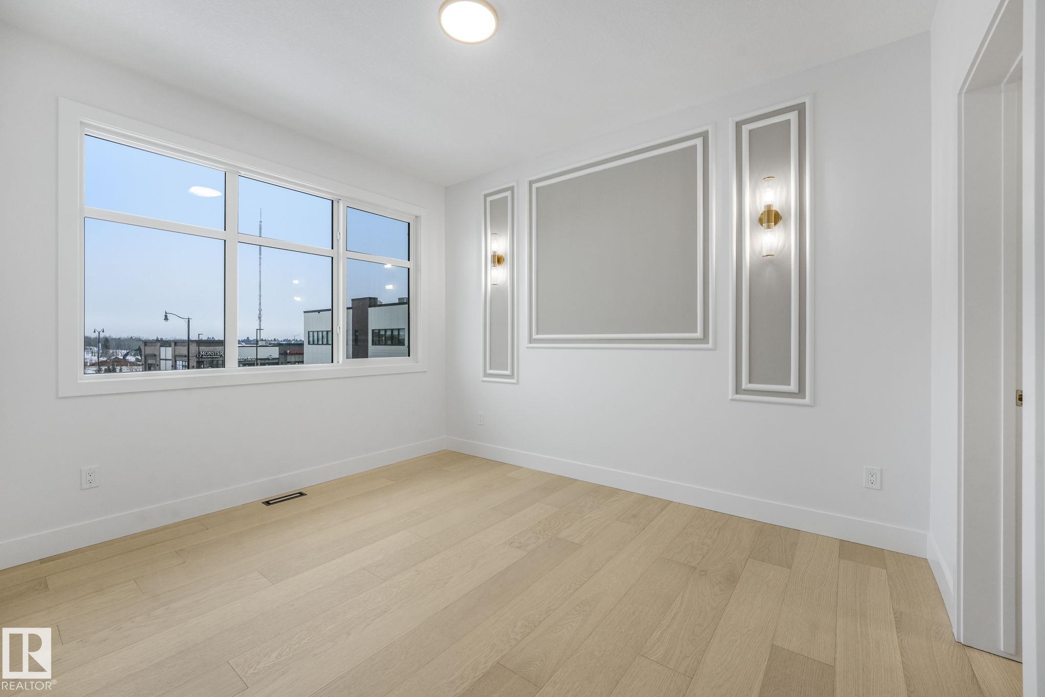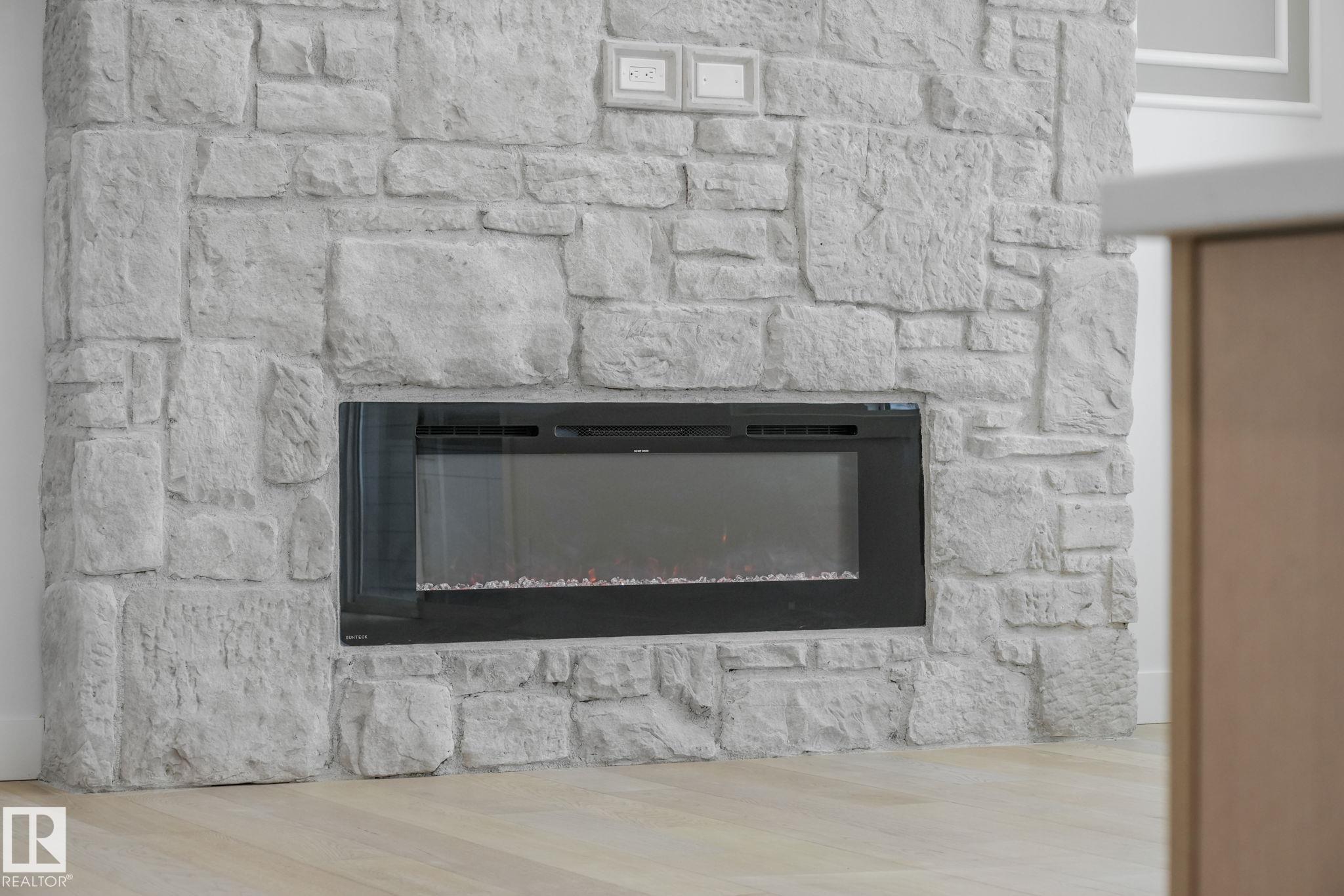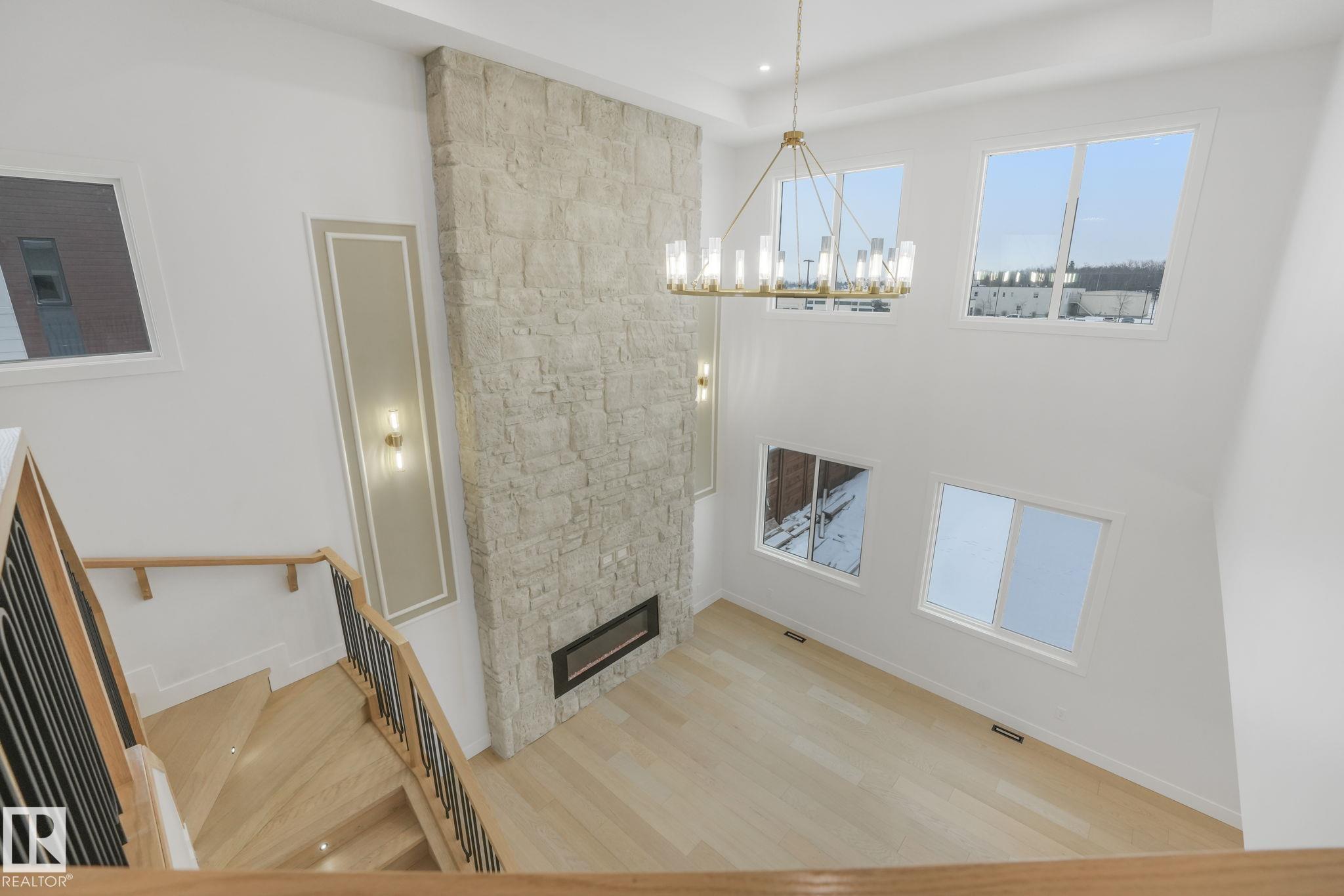 Over 2,600 sqft of thoughtfully designed luxury in Hillshire--one of Sherwood Park's fastest-growing estate communities. This stunning 4-bedroom home features a dramatic open-to-below living space filled with natural light from expansive windows. The chef-inspired kitchen includes a full appliance package and a secondary kitchen, perfect for entertaining and everyday convenience. High-end finishes are showcased throughout, including a custom stone fireplace that anchors the main living area and luxury vinyl flooring throughout both levels. Step outside to enjoy immediate access to walking trails, with schools, shopping, and stormwater ponds just minutes away. Exceptional curb appeal comes from an exposed aggregate driveway and beautiful exterior stonework, creating a striking first impression. A perfect blend of elegance, comfort, and location.