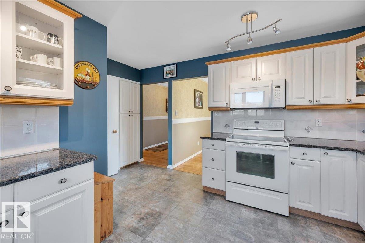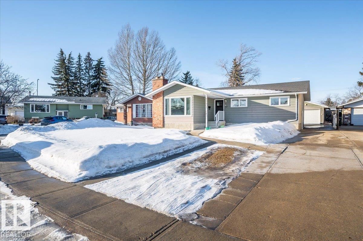 Absolutely lovely 1,206 sq ft 4 bedroom (3 up / 1 down), 2 1/2 bath bungalow nestled in a keyhole crescent in highly sought after Maplewood in Sherwood Park. This wonderfully cared for home has a previously remodelled kitchen complete with granite counter tops, newer appliances, including a Bosch dishwasher and side by side fridge. Recent updates include windows (approx. 7 yrs ago), new roof (approximately 8 yrs ago), garage roof (2025), and new HE furnace (2025) and newer fence. Hardwood flooring throughout much of the main floor including the bedrooms. A large concrete driveway and parking pad leads to the oversized detached garage. Downstairs offers a large rec room , living room, bar, laundry, bedroom and 3 piece bathroom. Close to an abundance of amenities this great family home is sure to impress. Welcome Home!!