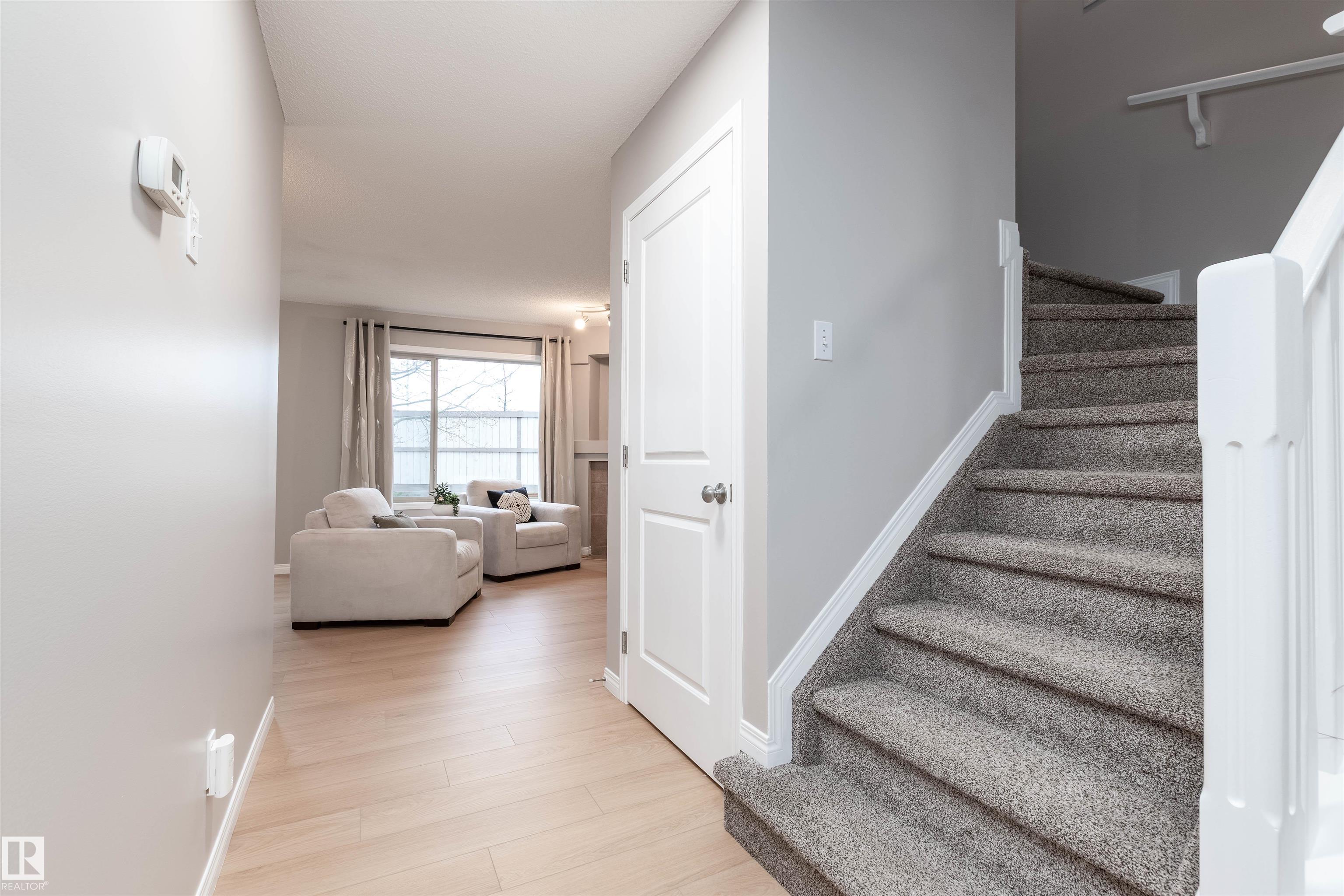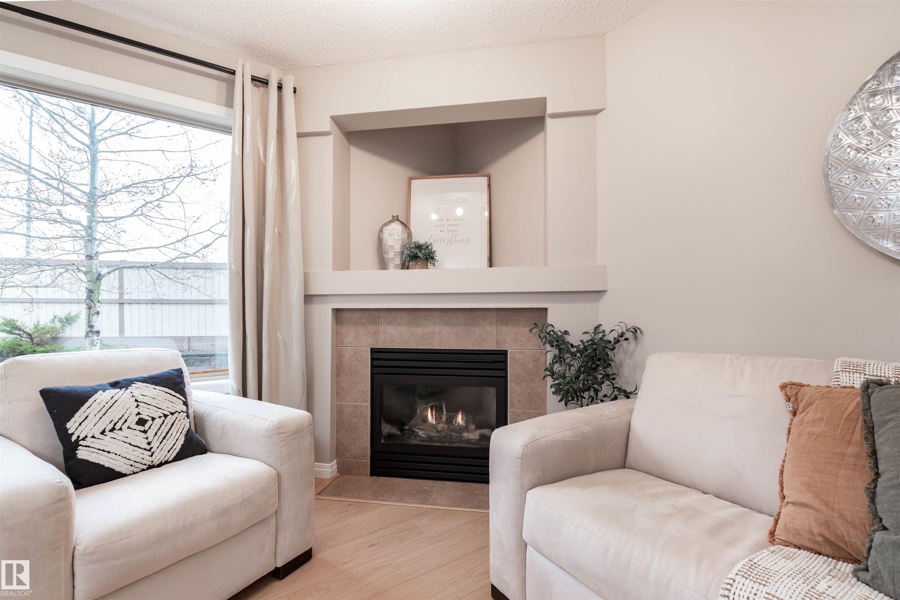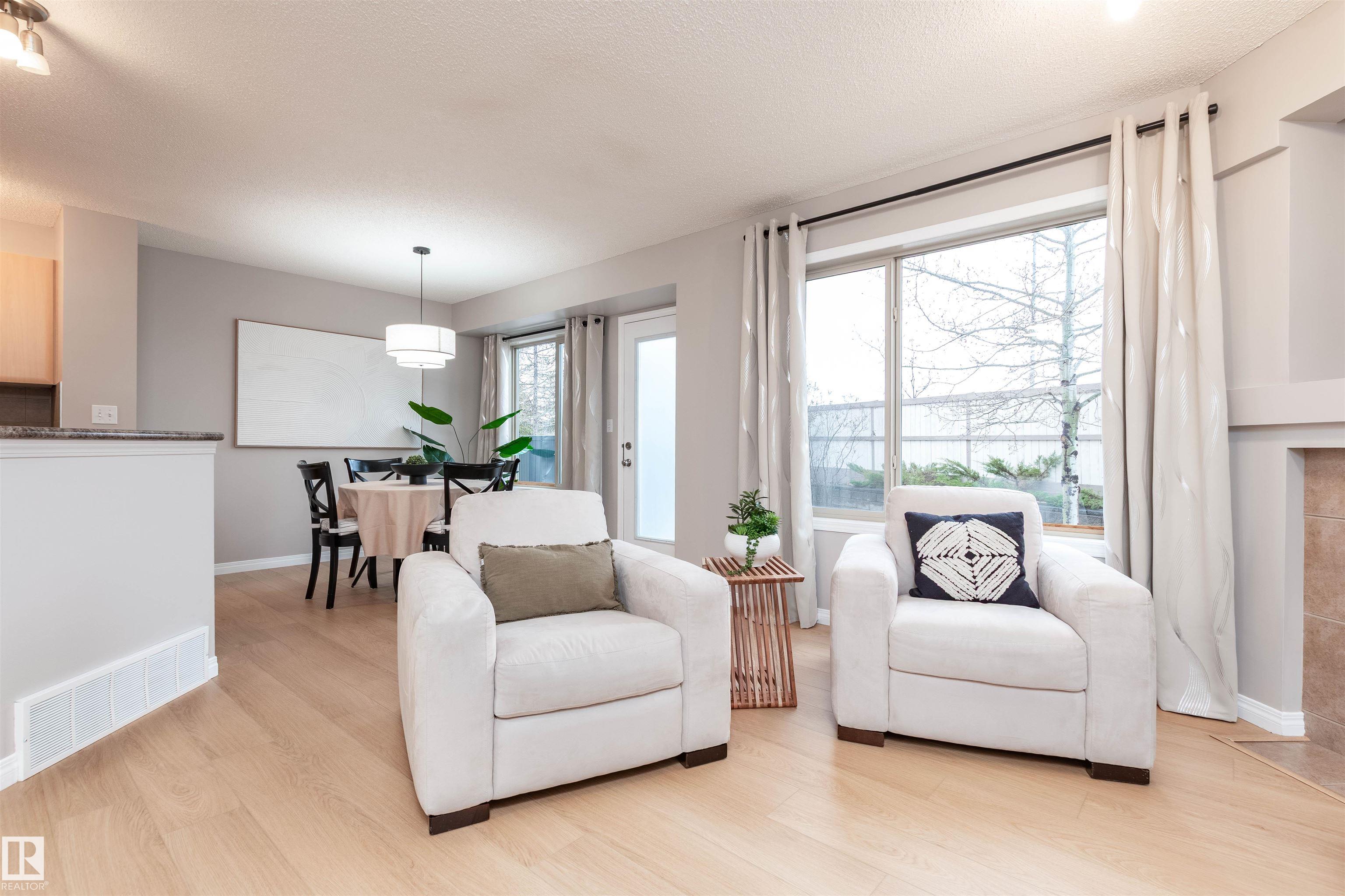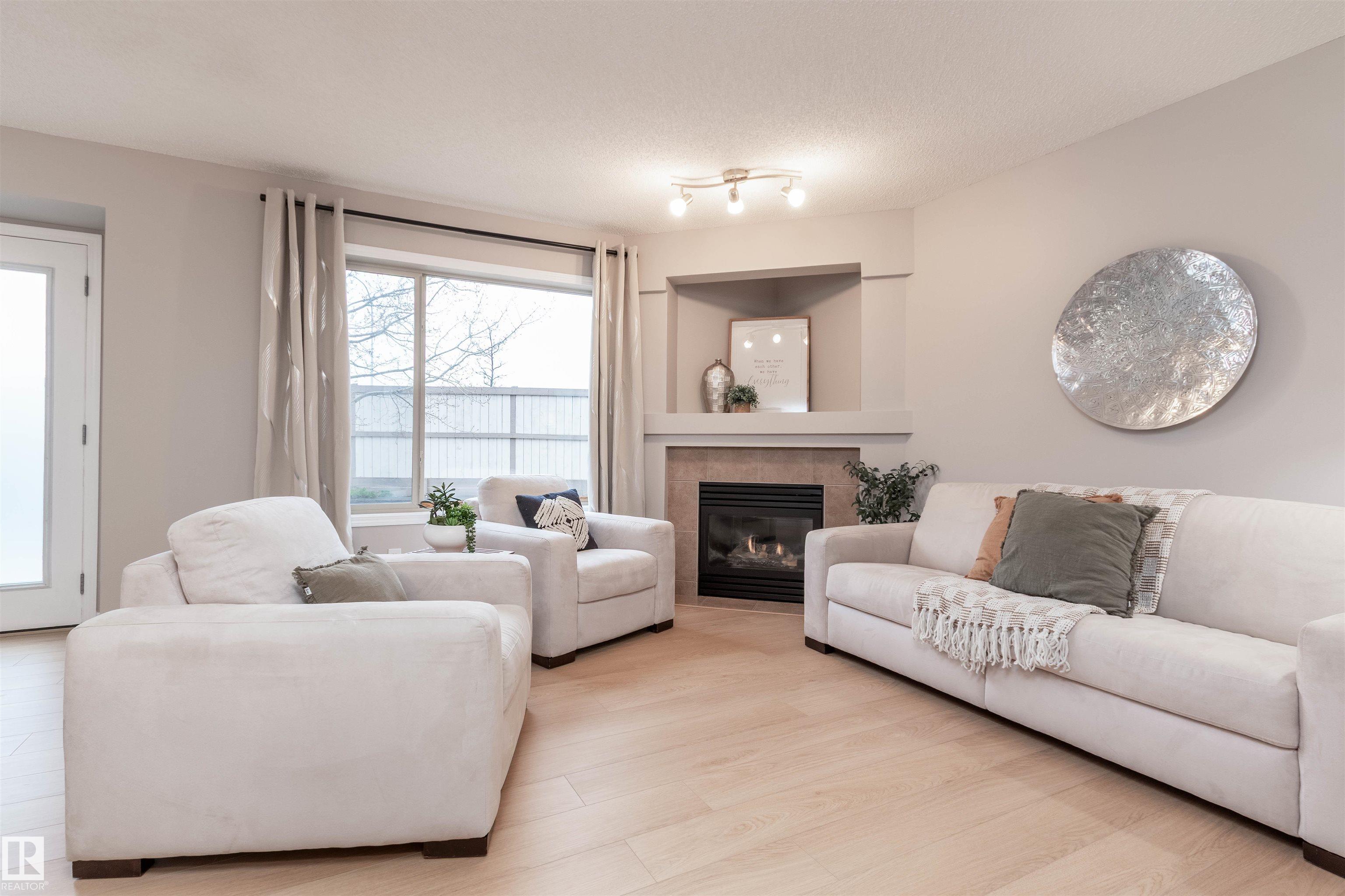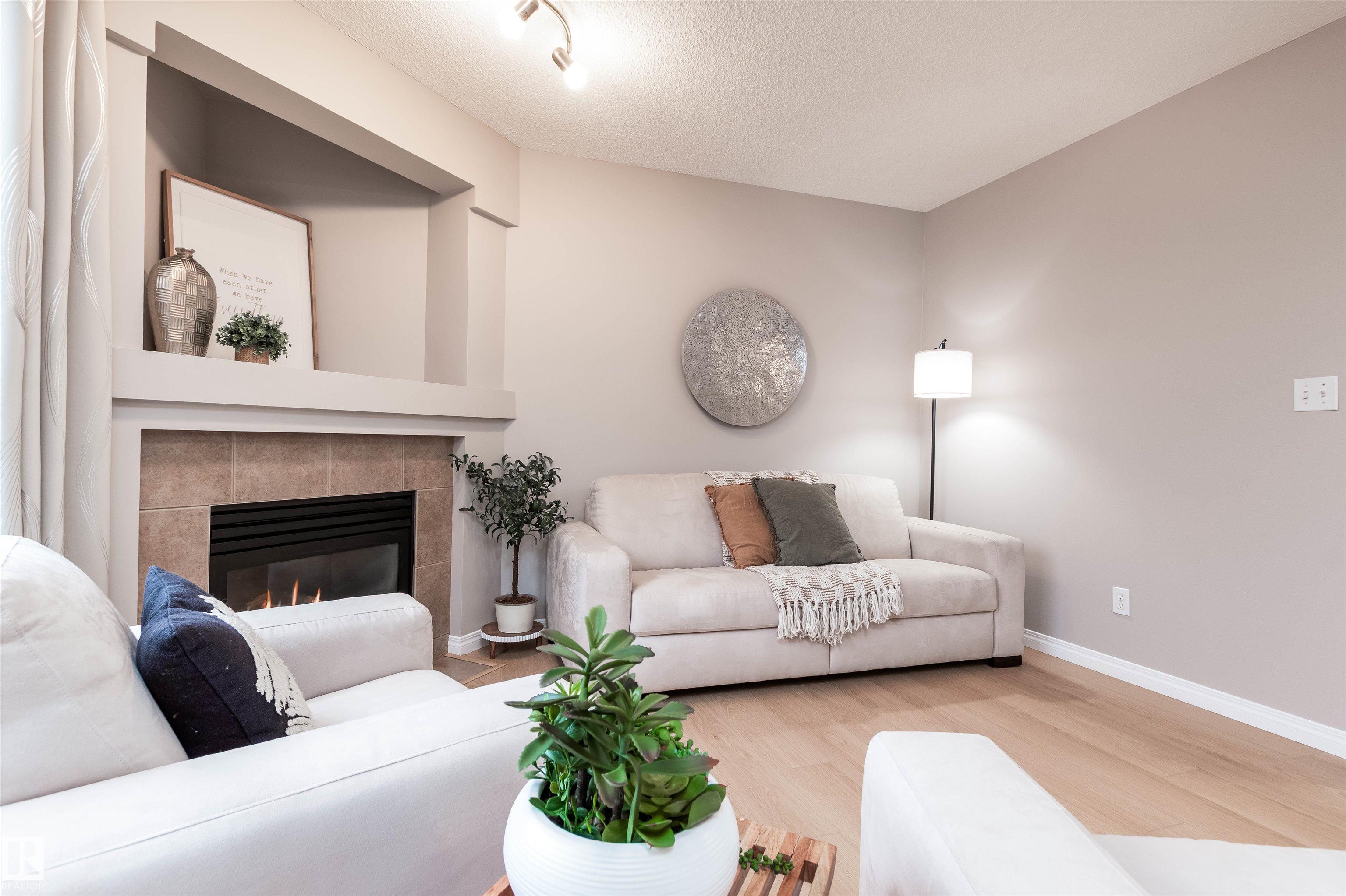 ORIGINAL OWNER:)EXTENSIVELY RENOVATED HALF DUPLEX ..NO SHOVELLING or MOWING.....DOUBLE ATTACHED GARAGE NEW FLOORING/PAINT and LIGHTING...NO NEIGHBORS BEHIND......QUIET COMPLEX...3 BED/3 BATH...~!WELCOME HOME!~This open concept home boasts BRAND NEW DURABLE FLOORING, NEWER CARPET and FRESH PAINT! The cozy living room is cozy with its gas fireplace. The functional kitchen overlooks living/dining, and has lots of cabinetry, eating bar, and spacious corner pantry. Two piece bath on main as well. Upstairs, you will find 3 spacious bedrooms with an additional office/bonus area. Primary bedroom has full ensuite bath and spacious closet. Patio doors lead to private backyard with MATURE TREES. Great location with easy access to Yellowhead Trail, Highway 21, and Emerald Hills shopping centre. Double attached garage! Great place to call HOME!