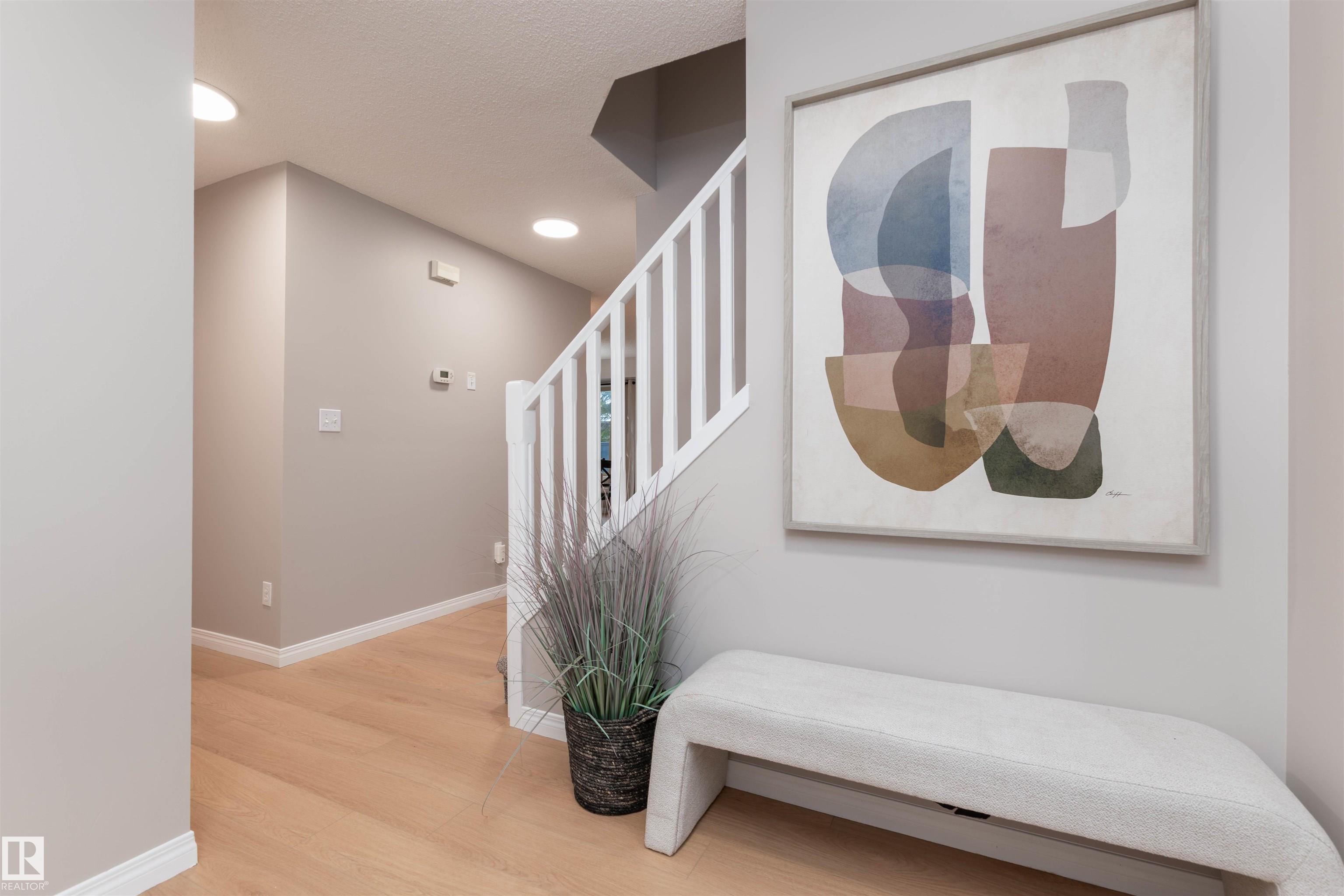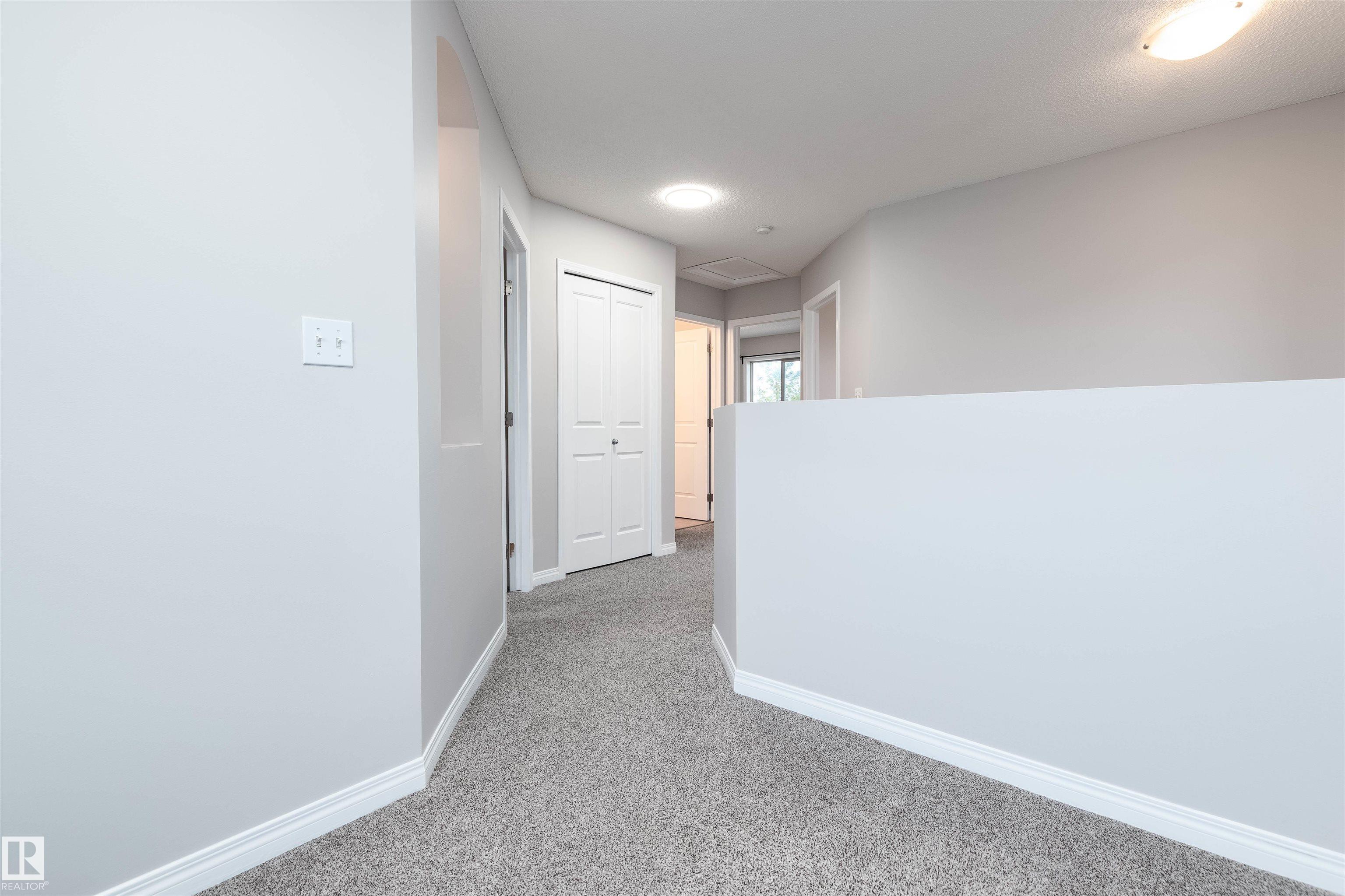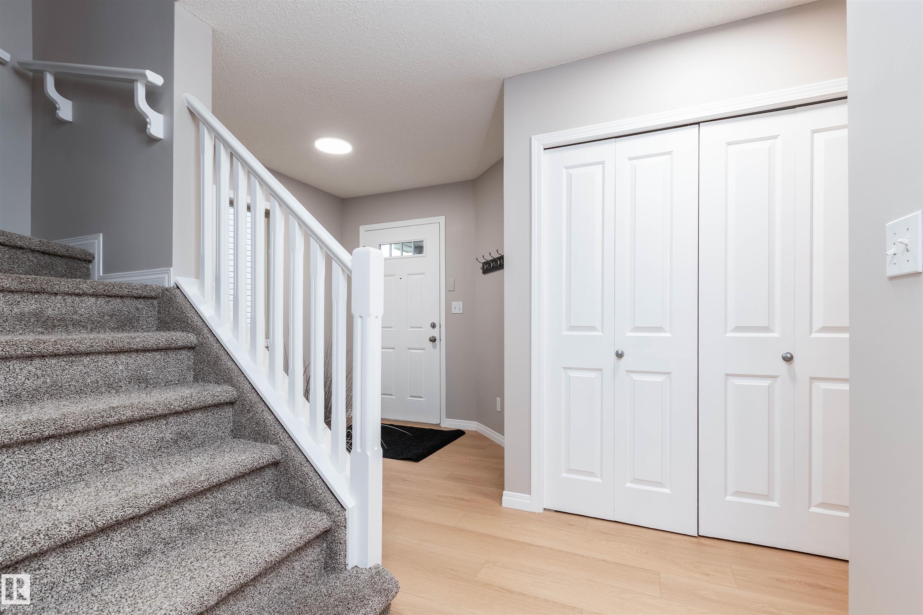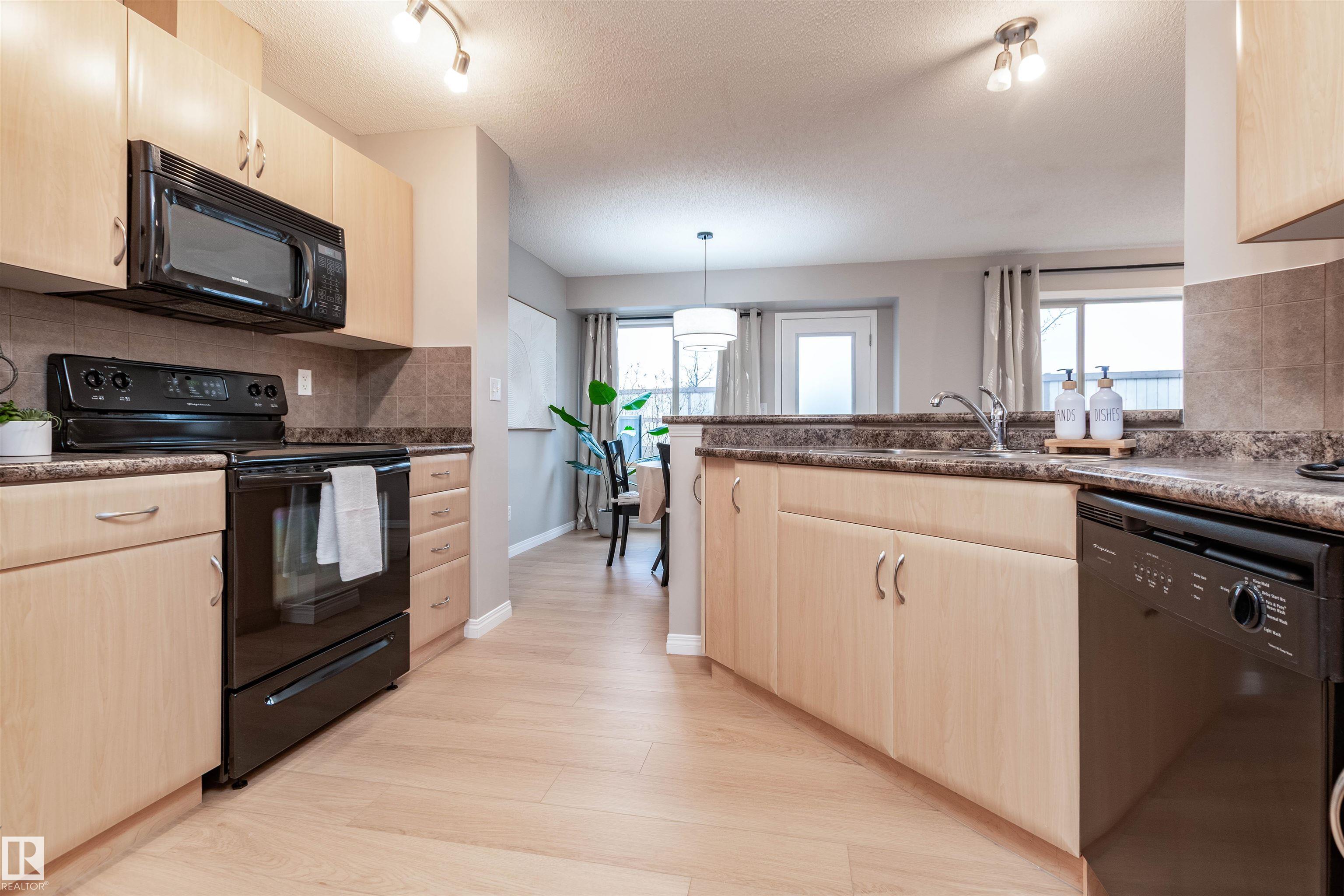 ORIGINAL OWNER:)EXTENSIVELY RENOVATED HALF DUPLEX ..NO SHOVELLING or MOWING.....DOUBLE ATTACHED GARAGE NEW FLOORING/PAINT and LIGHTING...NO NEIGHBORS BEHIND......QUIET COMPLEX...3 BED/3 BATH...~!WELCOME HOME!~This open concept home boasts BRAND NEW DURABLE FLOORING, NEWER CARPET and FRESH PAINT! The cozy living room is cozy with its gas fireplace. The functional kitchen overlooks living/dining, and has lots of cabinetry, eating bar, and spacious corner pantry. Two piece bath on main as well. Upstairs, you will find 3 spacious bedrooms with an additional office/bonus area. Primary bedroom has full ensuite bath and spacious closet. Patio doors lead to private backyard with MATURE TREES. Great location with easy access to Yellowhead Trail, Highway 21, and Emerald Hills shopping centre. Double attached garage! Great place to call HOME!