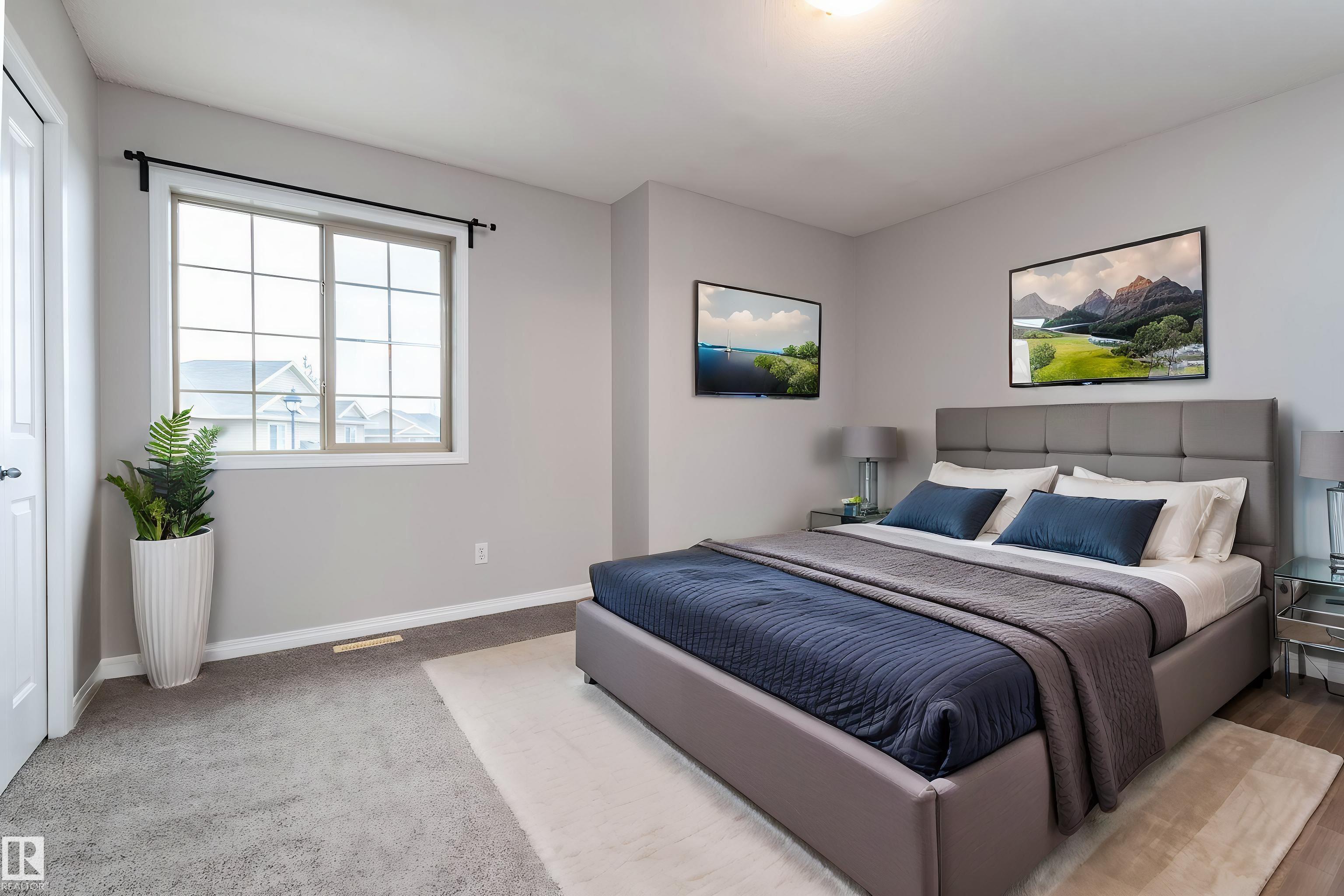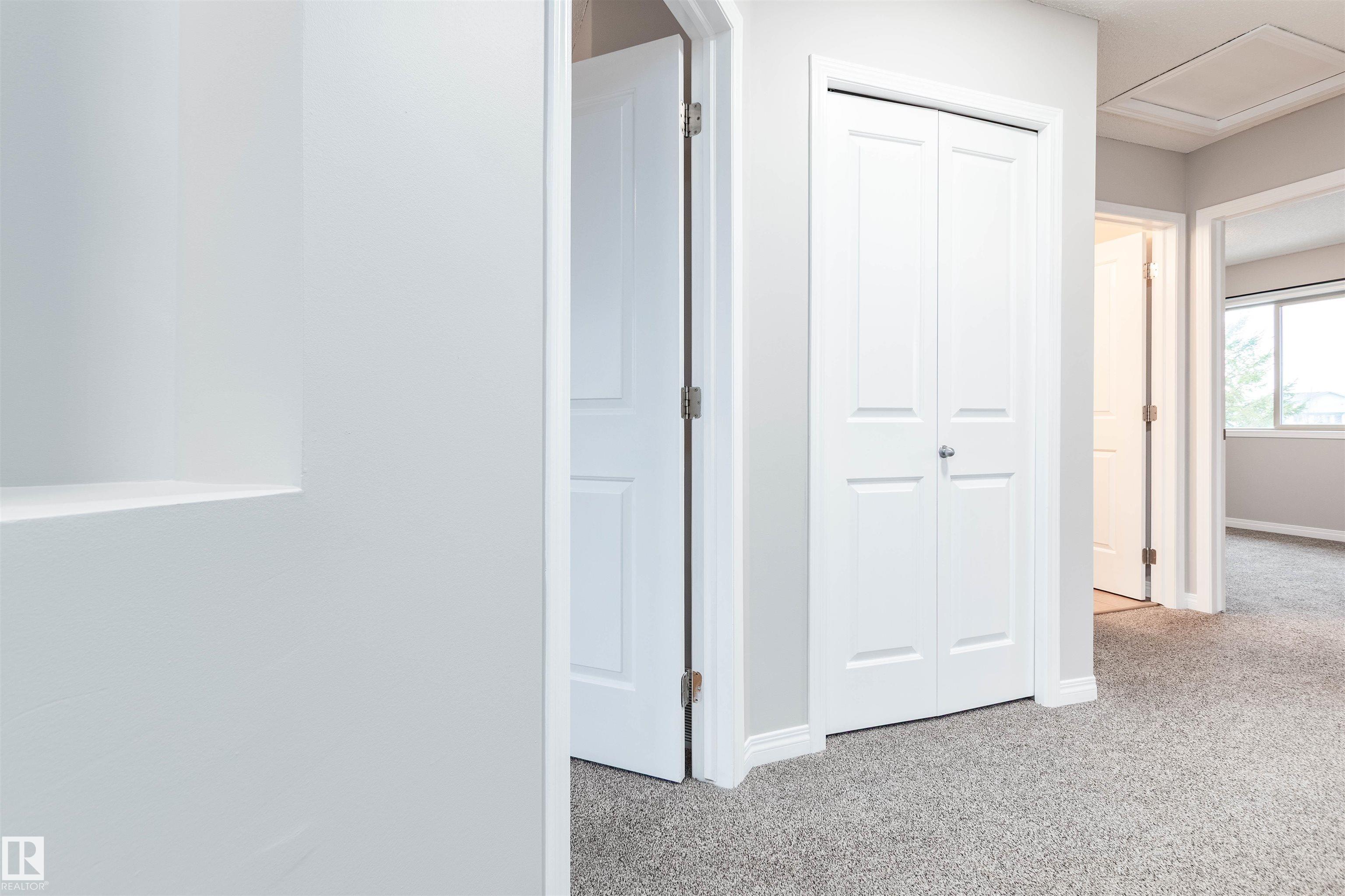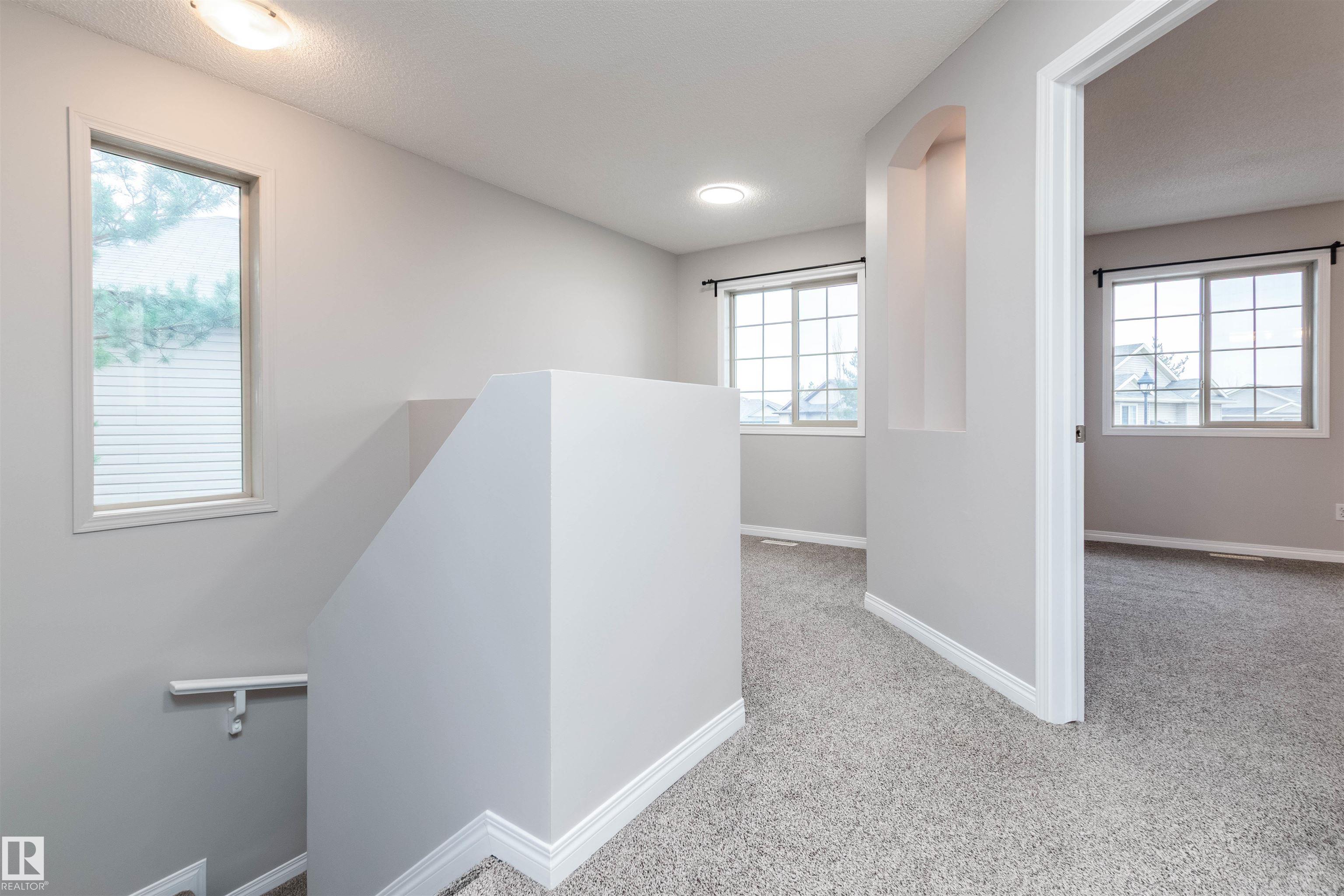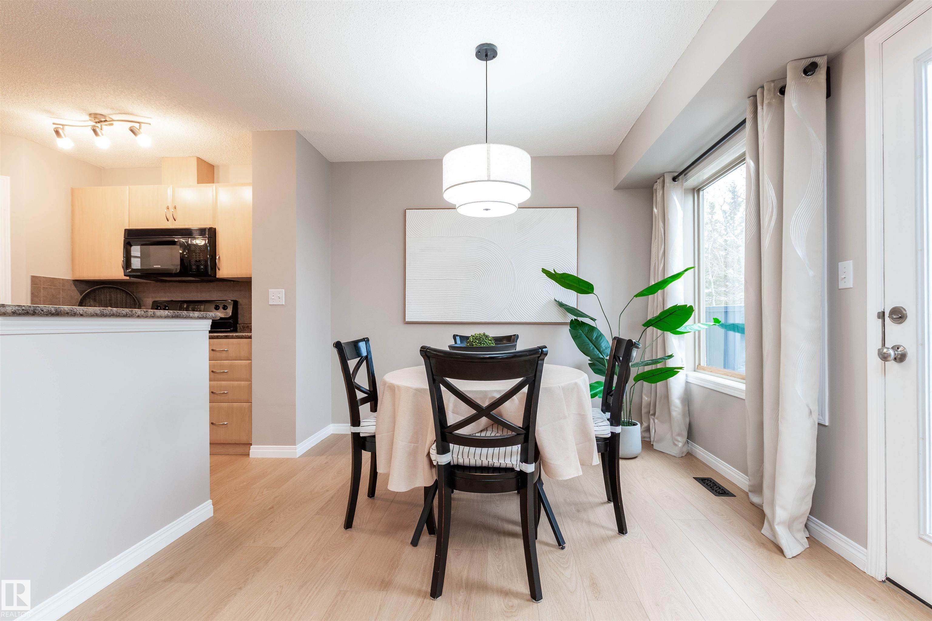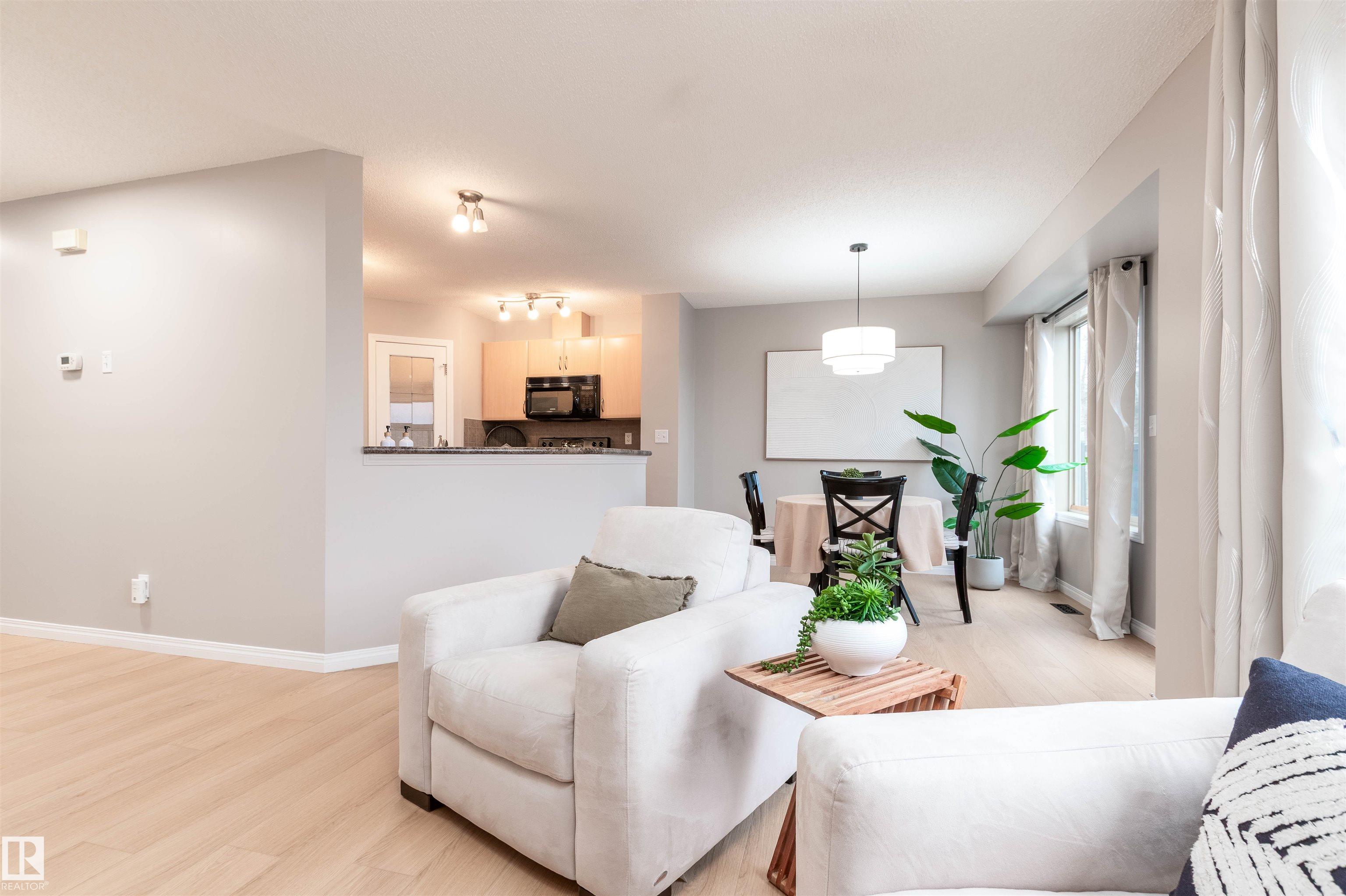 ORIGINAL OWNER:)EXTENSIVELY RENOVATED HALF DUPLEX ..NO SHOVELLING or MOWING.....DOUBLE ATTACHED GARAGE NEW FLOORING/PAINT and LIGHTING...NO NEIGHBORS BEHIND......QUIET COMPLEX...3 BED/3 BATH...~!WELCOME HOME!~This open concept home boasts BRAND NEW DURABLE FLOORING, NEWER CARPET and FRESH PAINT! The cozy living room is cozy with its gas fireplace. The functional kitchen overlooks living/dining, and has lots of cabinetry, eating bar, and spacious corner pantry. Two piece bath on main as well. Upstairs, you will find 3 spacious bedrooms with an additional office/bonus area. Primary bedroom has full ensuite bath and spacious closet. Patio doors lead to private backyard with MATURE TREES. Great location with easy access to Yellowhead Trail, Highway 21, and Emerald Hills shopping centre. Double attached garage! Great place to call HOME!