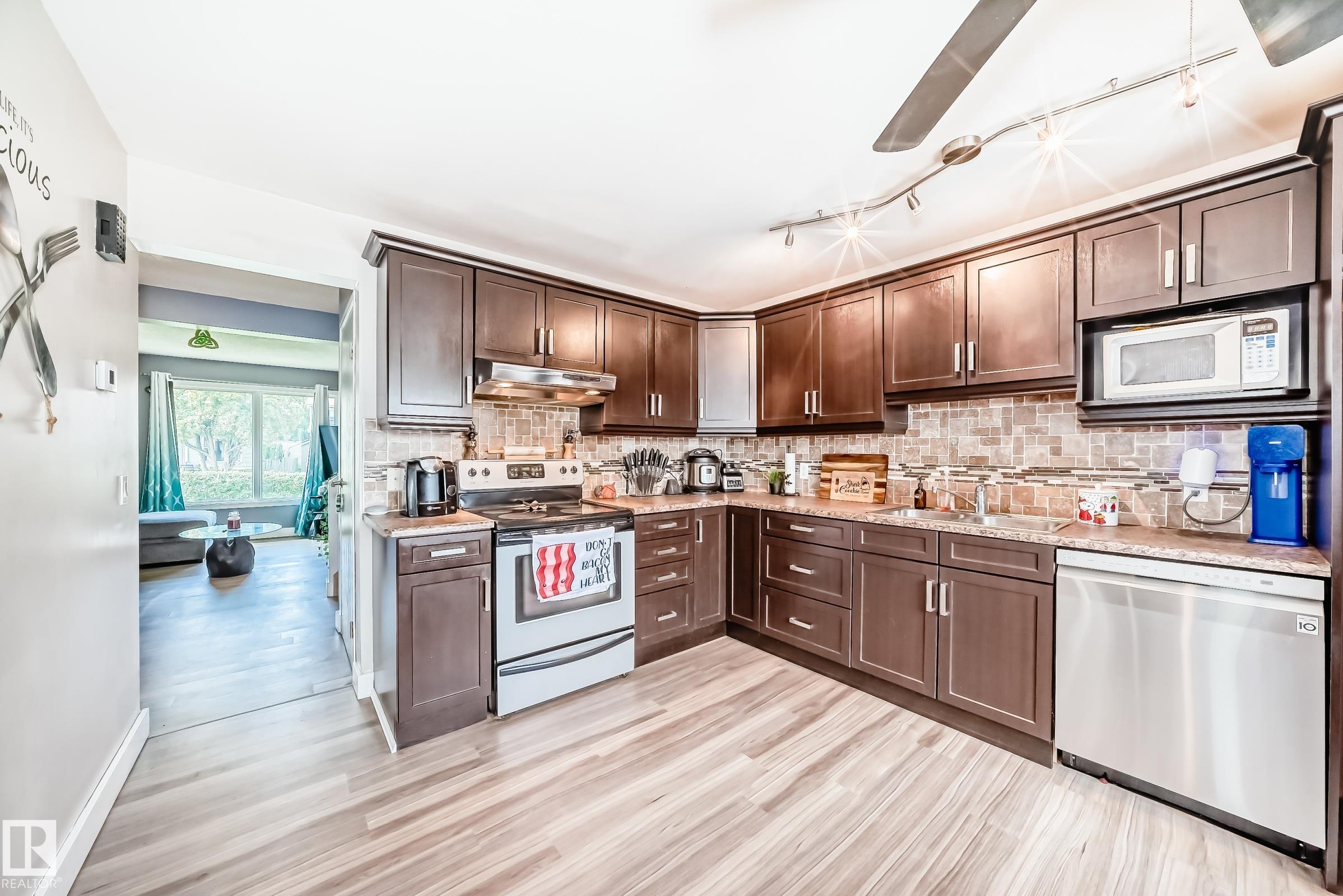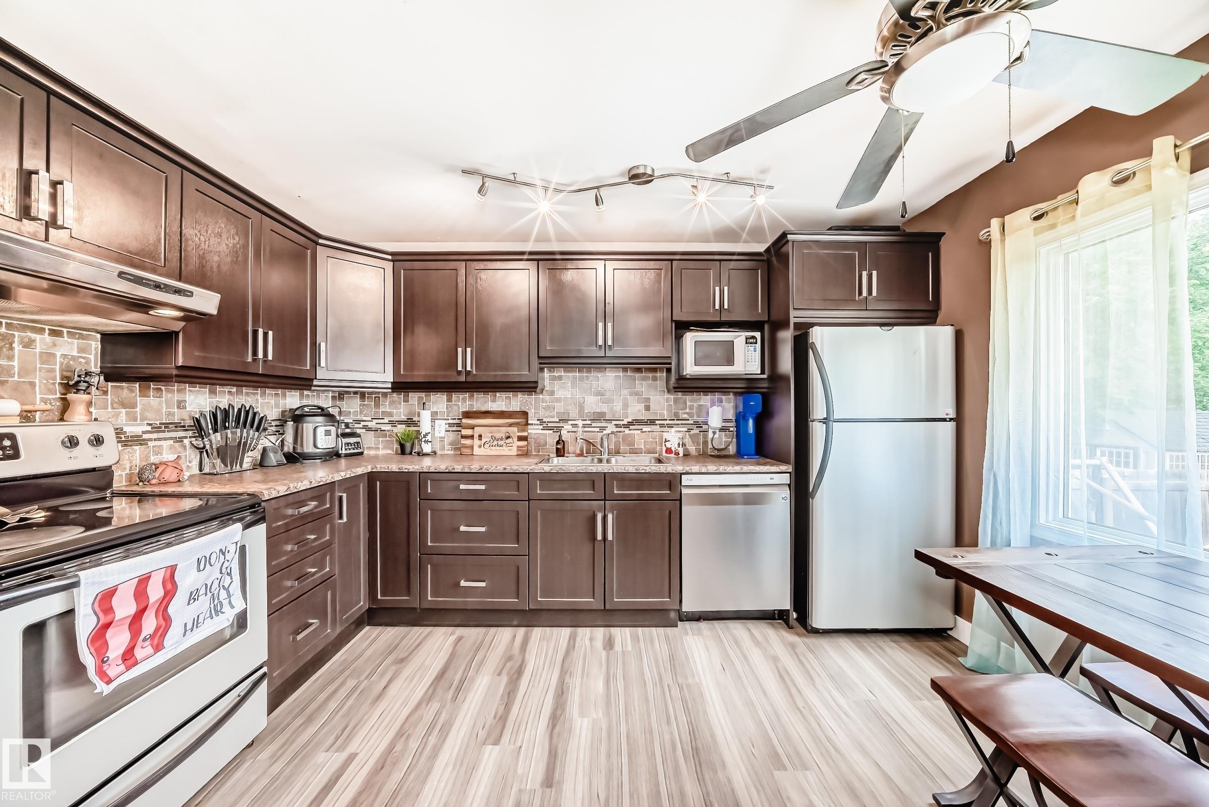 In the heart of Sherwood Park, this beautifully renovated duplex blends comfort, style & function. Enjoy a sleek modern kitchen with newer cabinetry, generous counters, updated bathrooms, energy-efficient windows, & a high-efficiency furnace. Upstairs boasts 3 spacious bedrooms including a king-sized primary suite with ample closet space, plus a full 4-piece bath. The bright main level offers an open living/dining area, large kitchen, & a handy 2-piece bath. The fully finished basement expands your living space with a cozy rec room, versatile den, laundry & storage. Outside, a free-standing deck with a charming gazebo lets you enjoy the outdoors--even when it rains. Ideal for first-time buyers or savvy investors, this home delivers lasting value in a sought-after location.