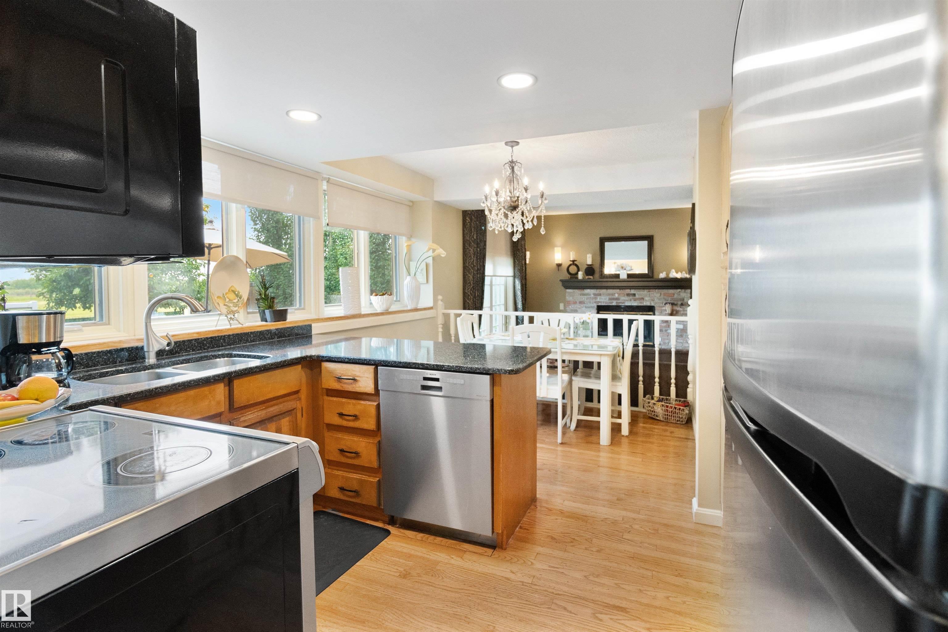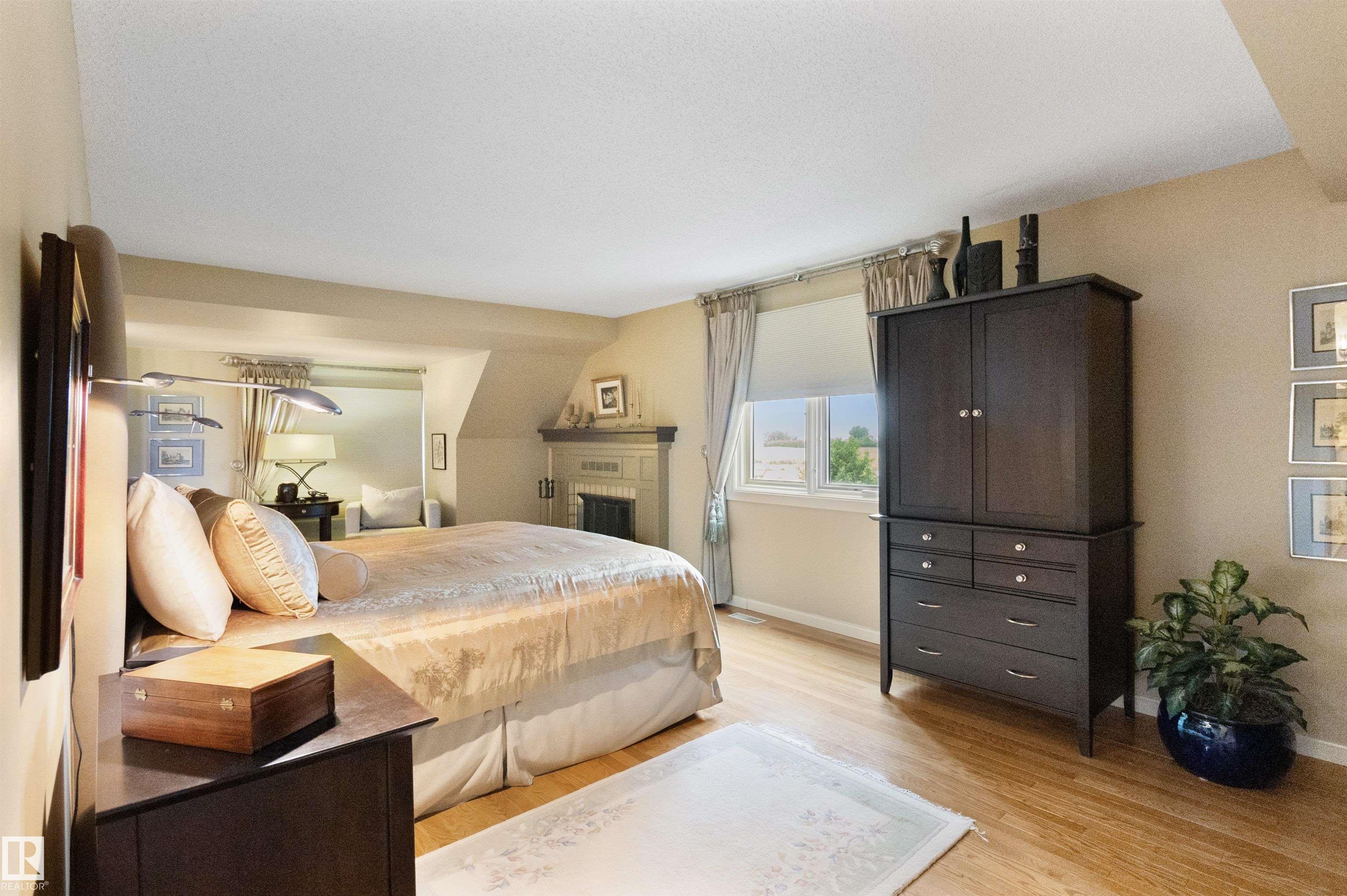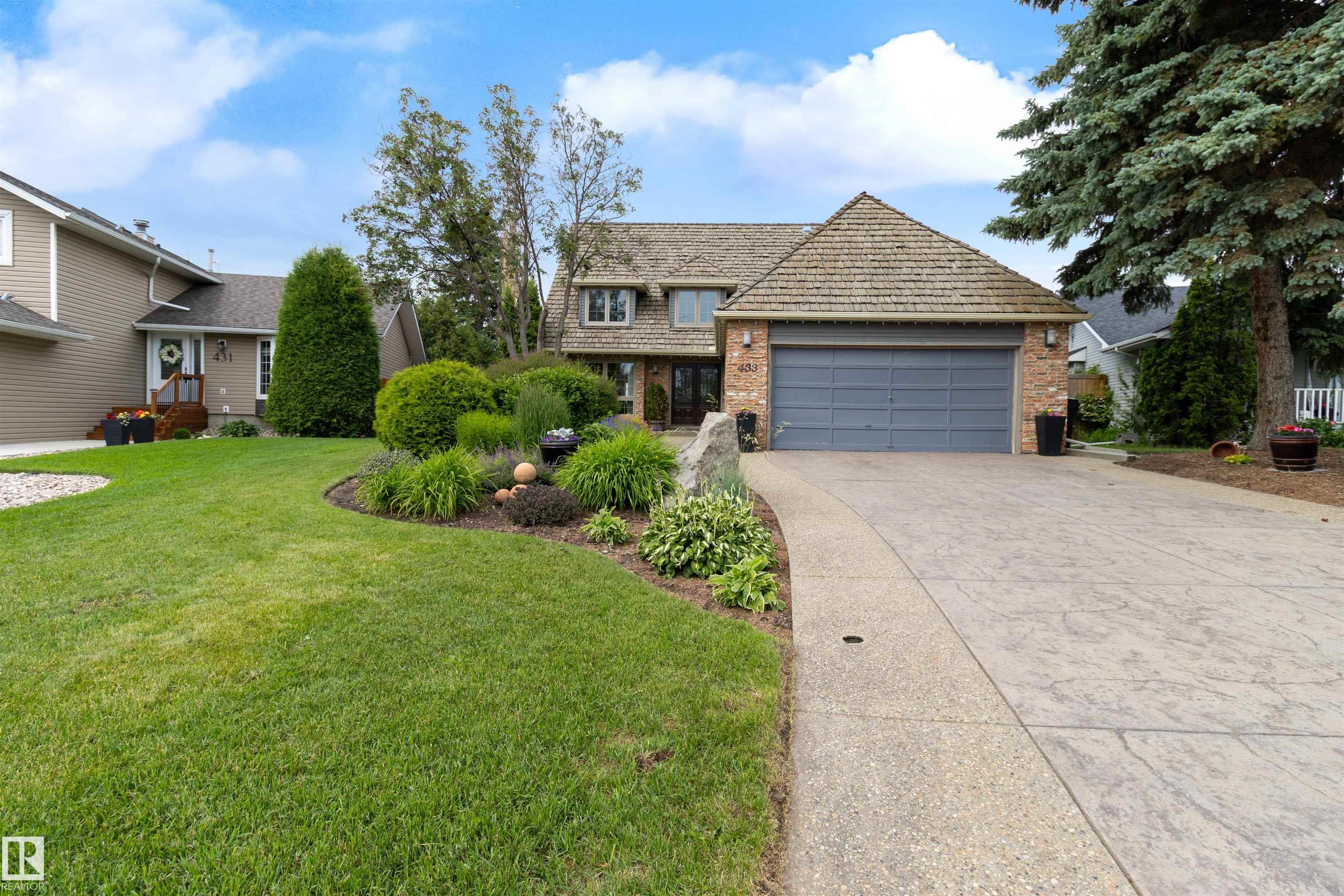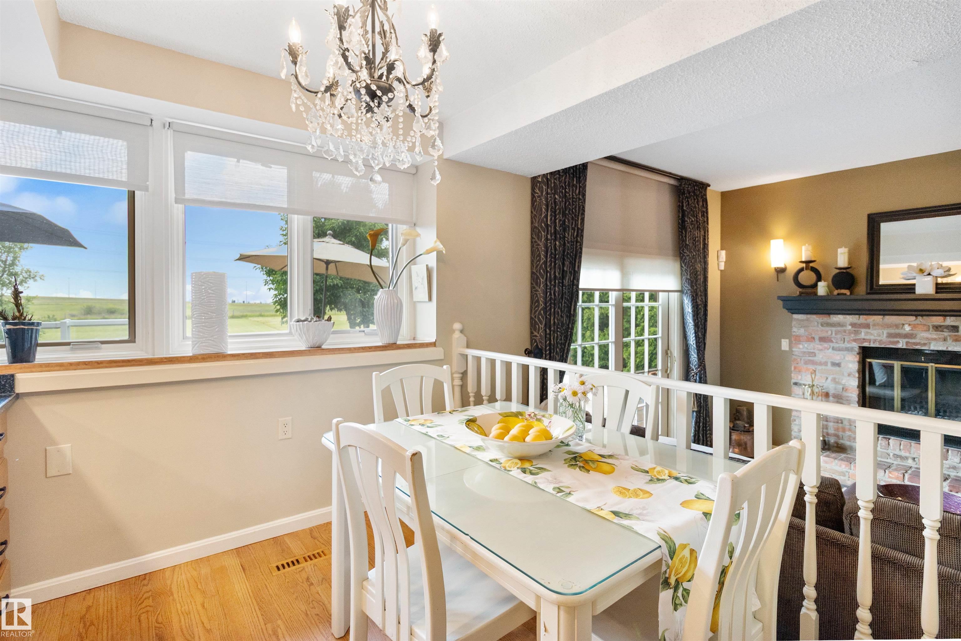Prepare to fall in love with this stunning 2,700 sq ft gem, boasting incredible curb appeal with its striking brick fa‡ade and high-peak roofline. Nestled on a large west-facing lot backing green space, this upgraded beauty offers both elegance and comfort. Inside, gleaming hardwood floors grace most of the main and upper levels, complemented by stylish tile in the foyer and bathrooms. The chef's kitchen is a showstopper, featuring quartz counters and abundant natural light streaming through expansive windows at the rear of the home. Cozy wood-burning fireplaces warm both the inviting family room and the spacious master retreat, which impresses further with a massive double walk-in closet. Entertain with ease in the fully finished basement, complete with a wet bar and inground safe, or step outside to a newer 40x16 deck with hot tub to soak up serene west sunsets. Practical upgrades include triple-pane windows, newer doors, two furnaces, and a stamped driveway. A rare find!