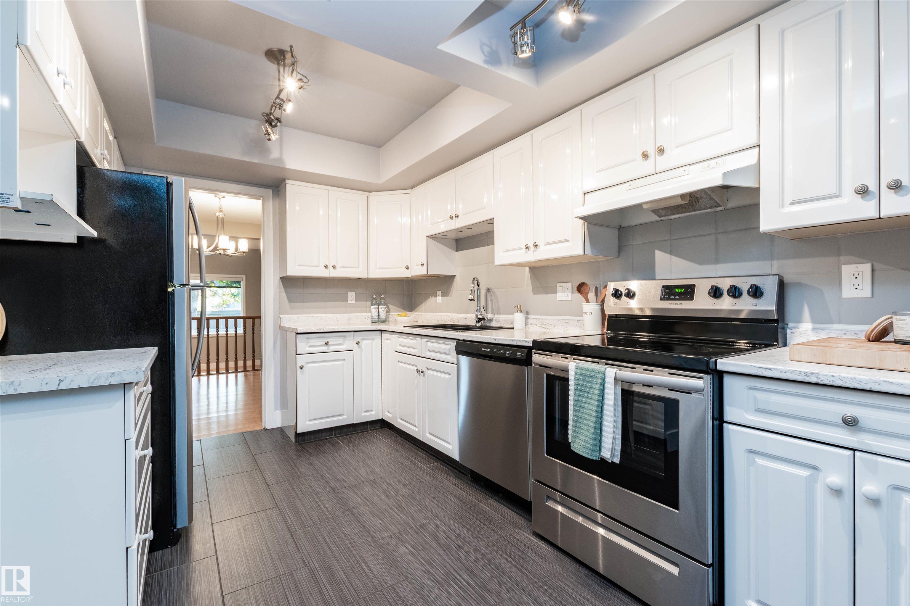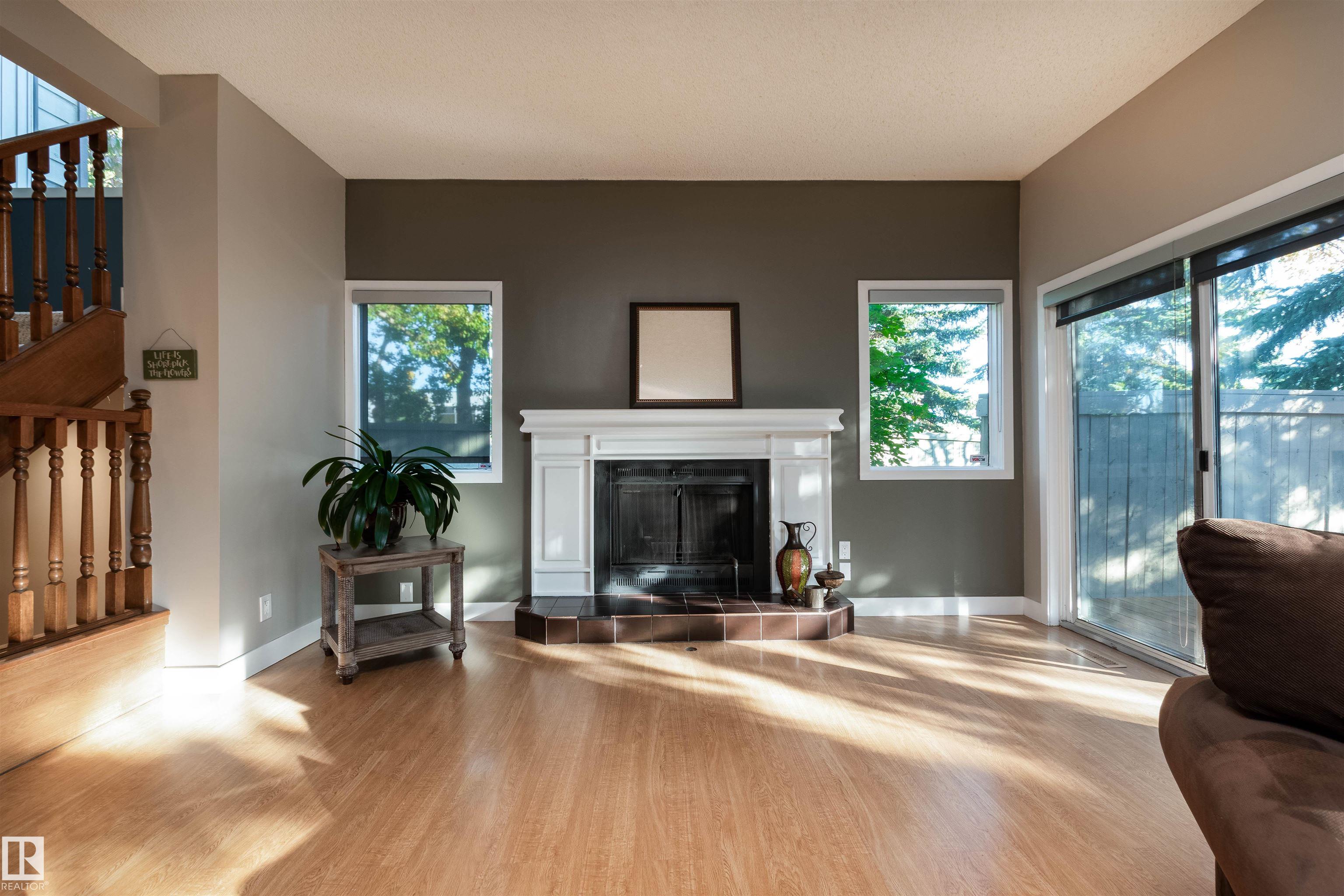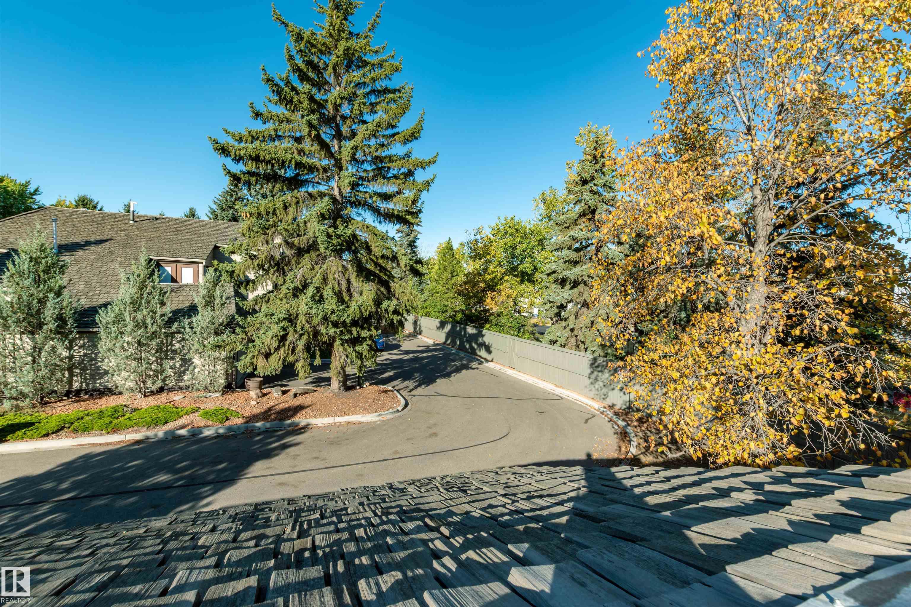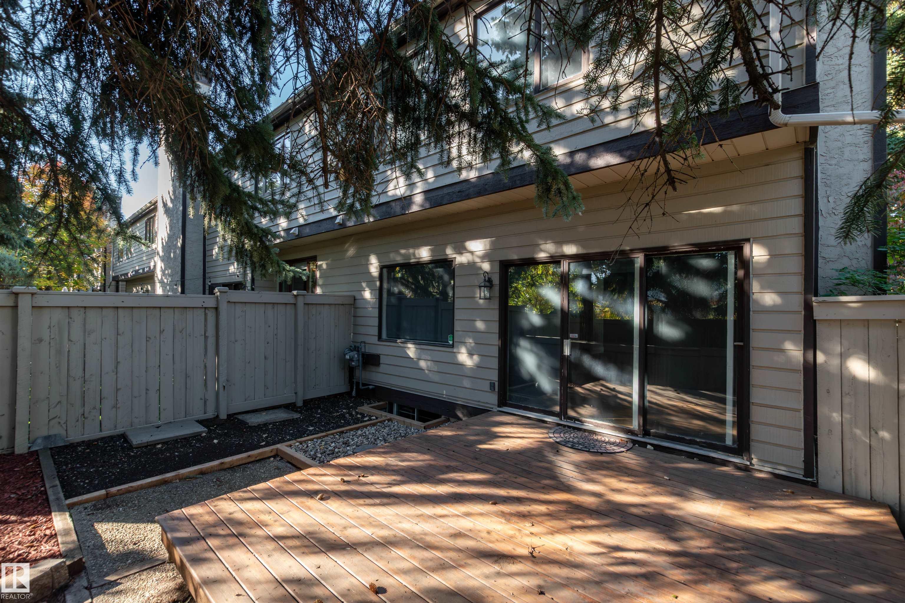 Welcome home to this Woodbridge Farms established executive lifestyle townhome. This tastefully upgraded end unit is spacious, bright and super convenient in the heart of the Park close to shopping, schools and transportation, trails and greenspace. Large eat-in kitchen with tons of storage, dining area with sunken family room (9ft ceilings). Windows galore! Primary bedroom has a double closet, private 4 piece bathroom and patio with west facing exposure. Two additional HUGE bedrooms plus 4 piece bathroom with jetted tub. Ample storage in the basement with fully finished flex room plus laundry. Single attached garage with new insulated door. Private outside living area with natural gas hookup and freshly painted deck. Private pickleball/tennis courts for these summer days! Additional parking stall assigned to unit in visitor parking block for convenience. Water, sewer and exterior maintenance included in condo fee.