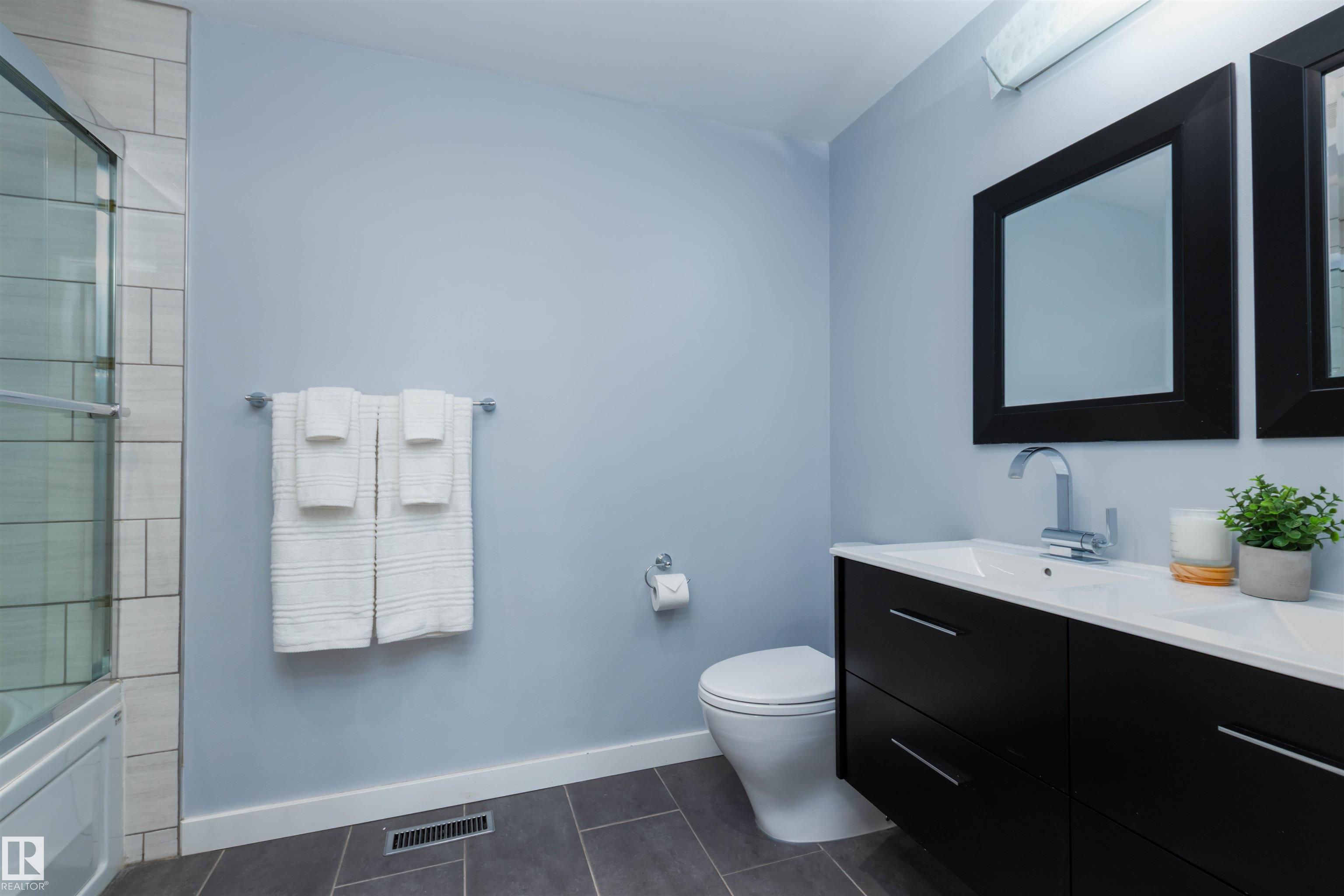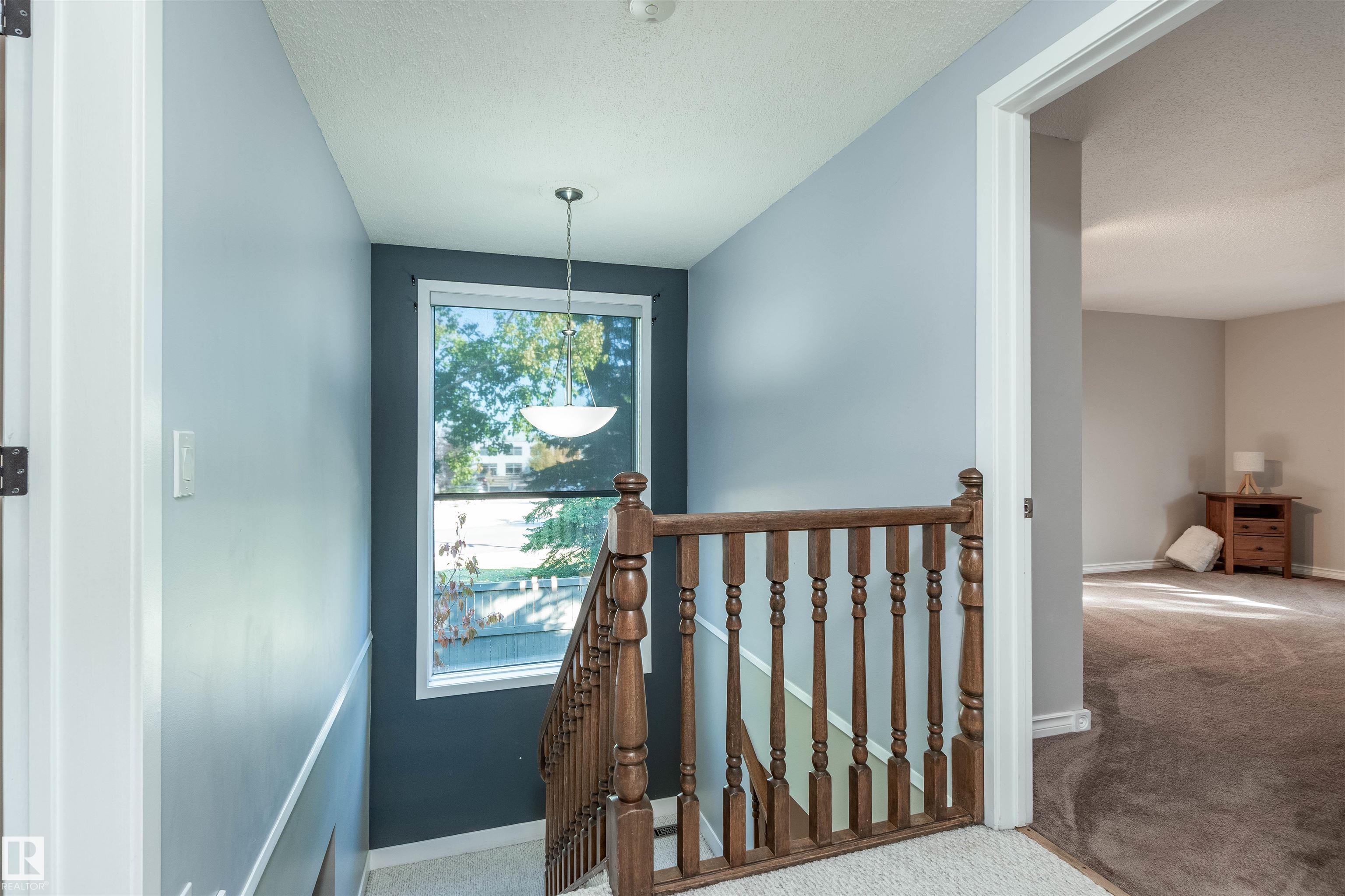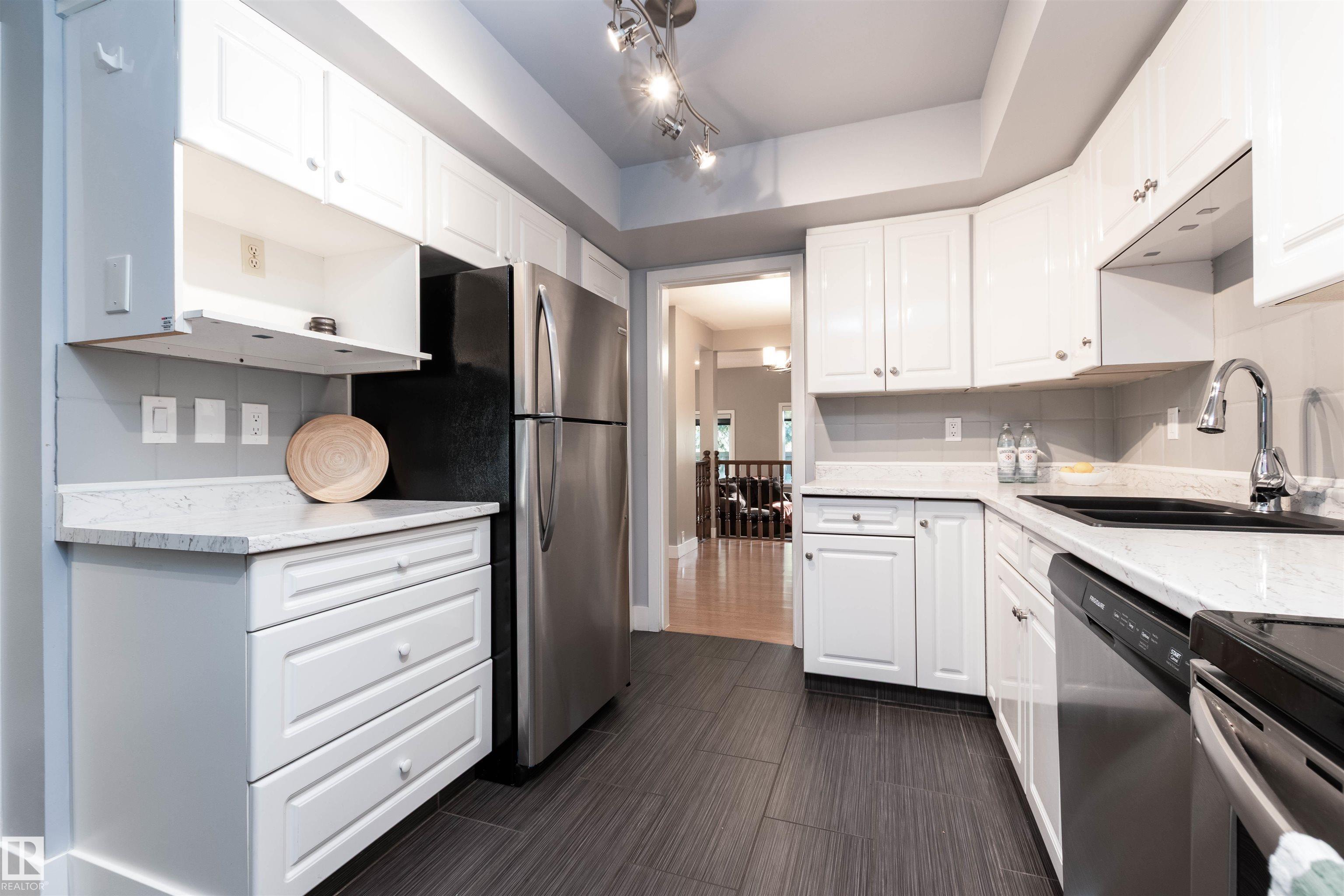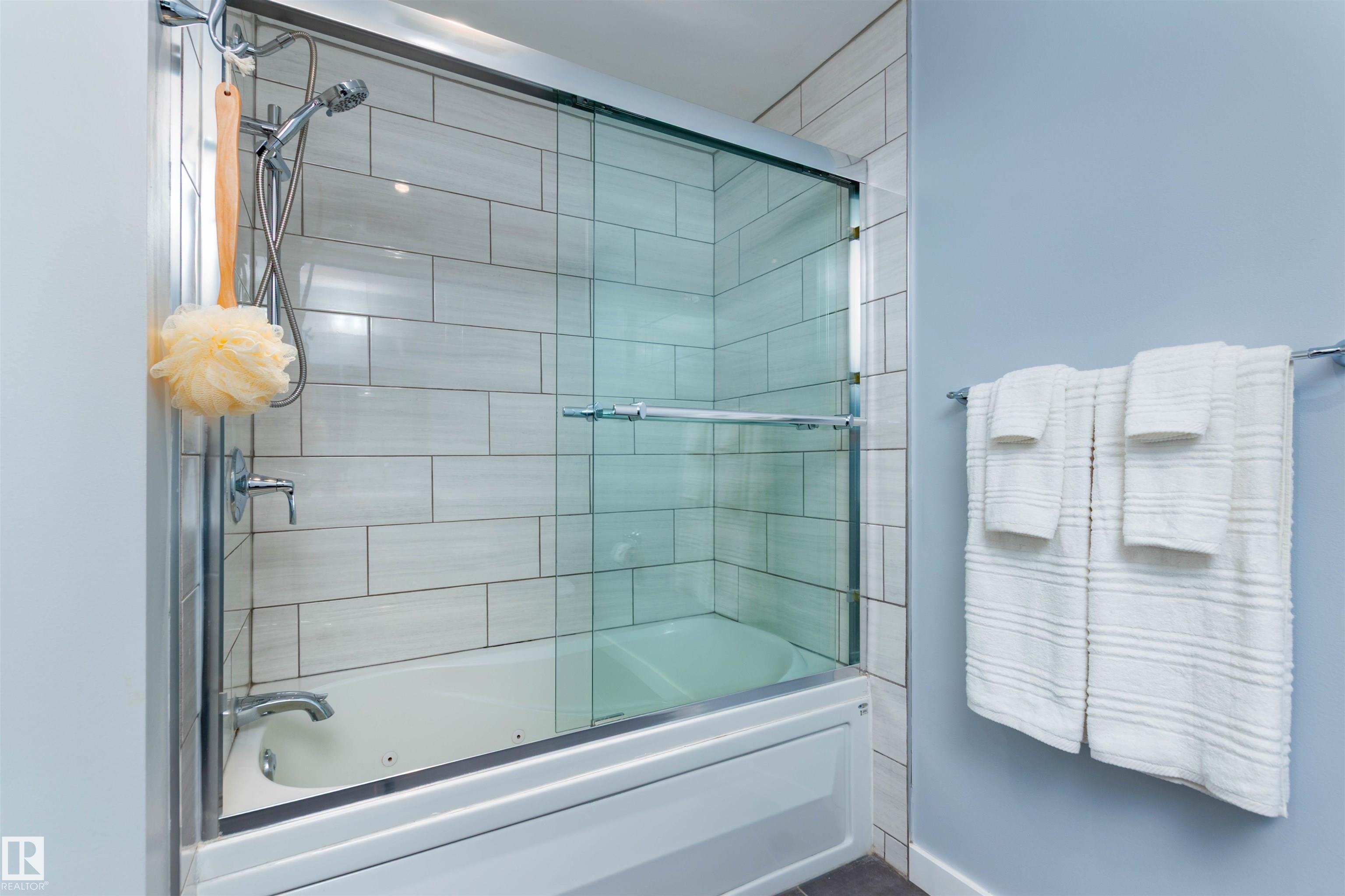 Welcome home to this Woodbridge Farms established executive lifestyle townhome. This tastefully upgraded end unit is spacious, bright and super convenient in the heart of the Park close to shopping, schools and transportation, trails and greenspace. Large eat-in kitchen with tons of storage, dining area with sunken family room (9ft ceilings). Windows galore! Primary bedroom has a double closet, private 4 piece bathroom and patio with west facing exposure. Two additional HUGE bedrooms plus 4 piece bathroom with jetted tub. Ample storage in the basement with fully finished flex room plus laundry. Single attached garage with new insulated door. Private outside living area with natural gas hookup and freshly painted deck. Private pickleball/tennis courts for these summer days! Additional parking stall assigned to unit in visitor parking block for convenience. Water, sewer and exterior maintenance included in condo fee.