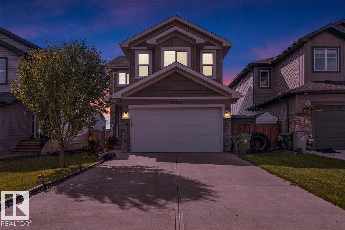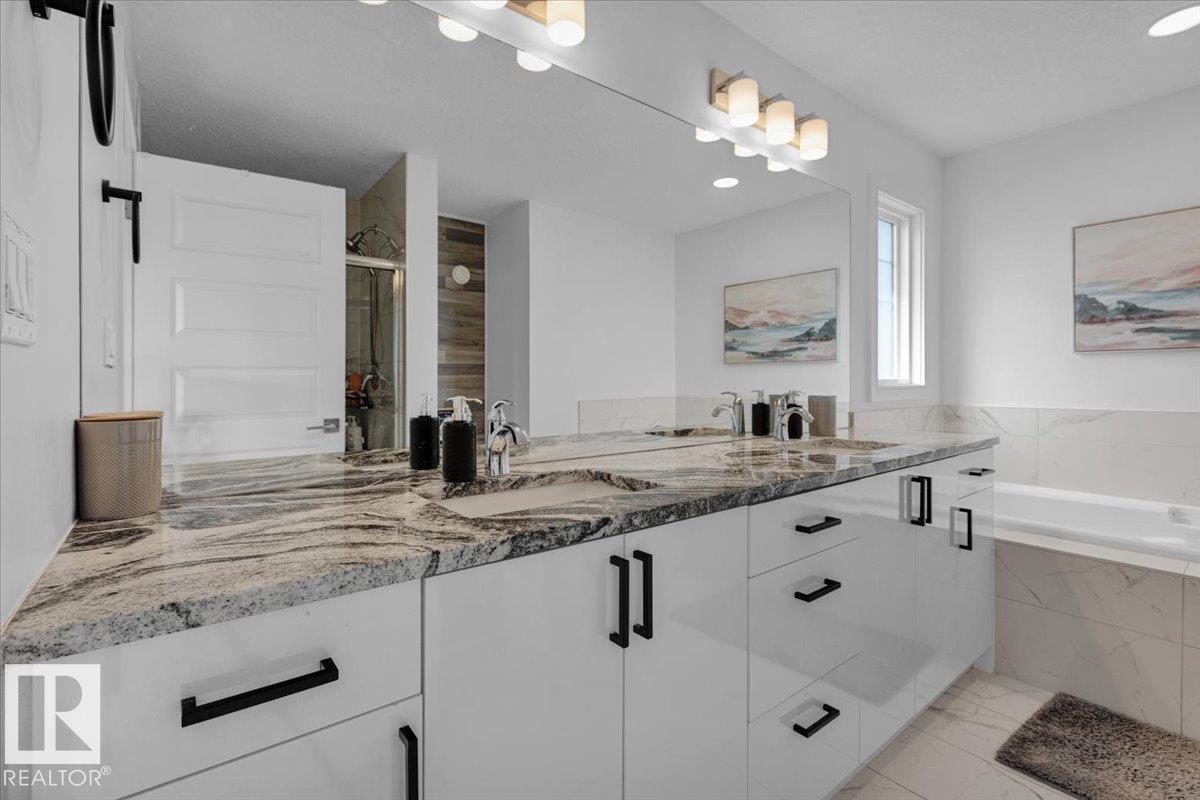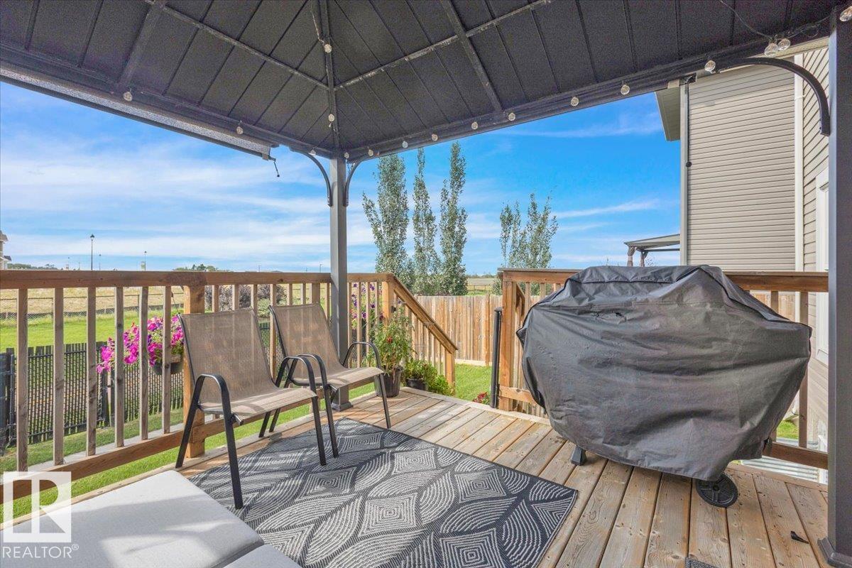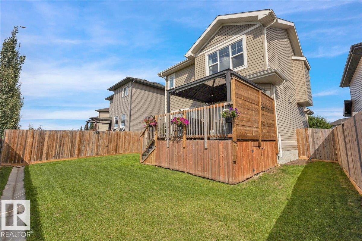Welcome to this Beautiful 2 Storey home tucked away in a quiet CUL DE SAC in the highly desirable Lakes Subdivision. Thoughtfully designed and impeccably maintained, this spacious home offers 3+1 Bedrooms, 4 Baths, AIR CONDITIONING, and 9ft ceilings! On the main floor you will find a bright and welcoming kitchen with UPGRADED STAINLESS STEEL APPLIANCES, new microwave and dishwasher!! Large island, GRANITE COUNTERTOPS, Pantry with lots of storage! Huge living room with cozy gas FIREPLACE, Dining area with Patio door to deck. Upstairs is a MASSIVE FAMILY ROOM, 2 bedrooms, 4 pce bath, and Laundry. Large Primary Retreat with luxurious 5pce ensuite and Huge Walk in Closet! FINISHED BASEMENT with additional bedroom with walk in closet, 4 pce bath, rec area and additional storage. Outside is a NEW GAZEBO to enjoy those warm summer days! Shed for extra storage and fenced backyard that backs onto walking path that leads to dog park, fishing ponds, and park! Only 10 Minutes to St Albert!